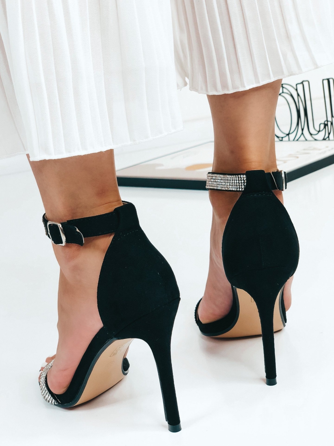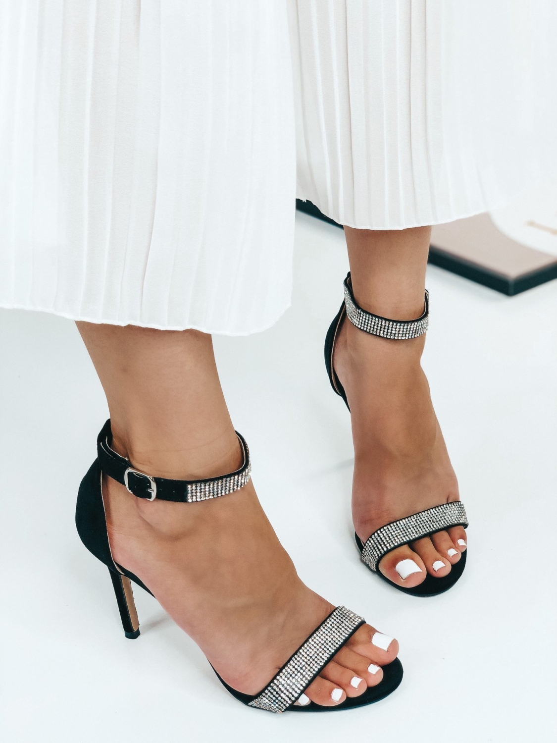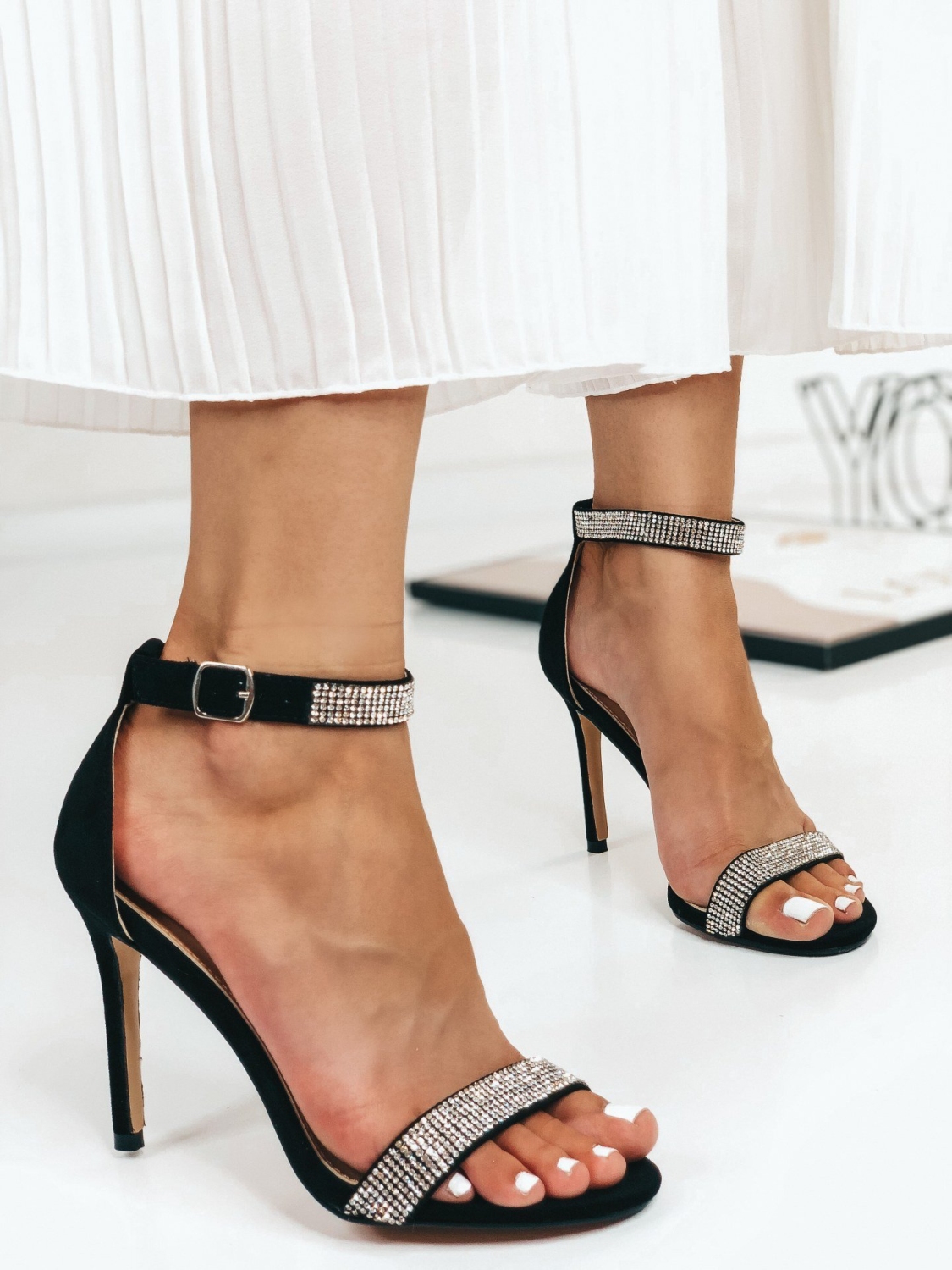 Dámske sandálky na tenkom opätku, ktoré sú doplnené kamienkami a v čiernej farbe si okamžite zamilujete. Vďaka svojmu vysokému opätku budete vyzerať veľmi elegantne a určite neostanete bez povšimnutia. Sú veľmi pohodlné a zapínanie je okolo členku. Zladíte k šatám. Môžete si ich obliecť do mesta na kávu, alebo aj na spoločenskú udalosť. Tieto sandálky si určite obľúbite a stanu sa neodmysliteľnou súčasťou Vaších outfitov. Veľkosti sedia presne.