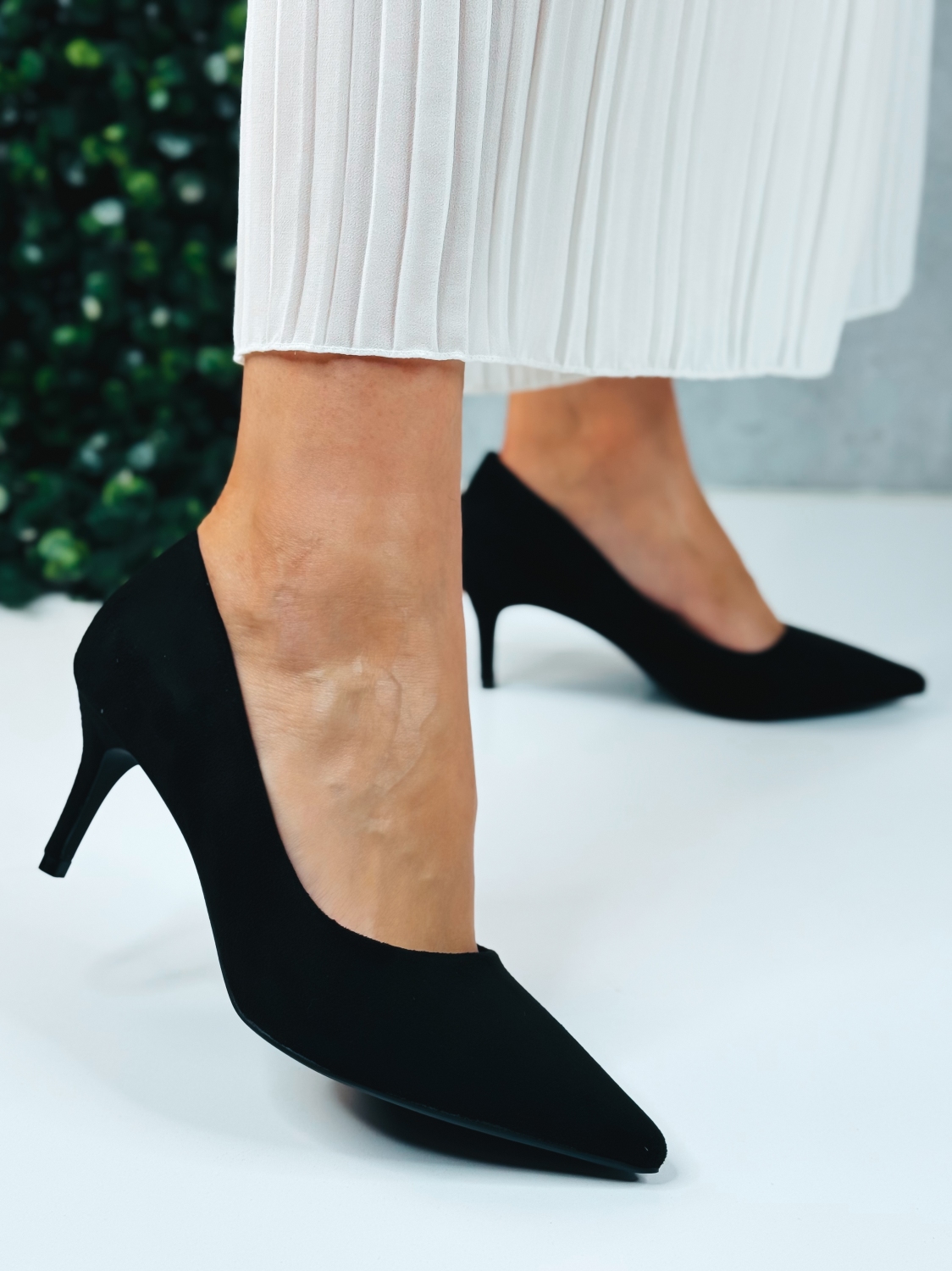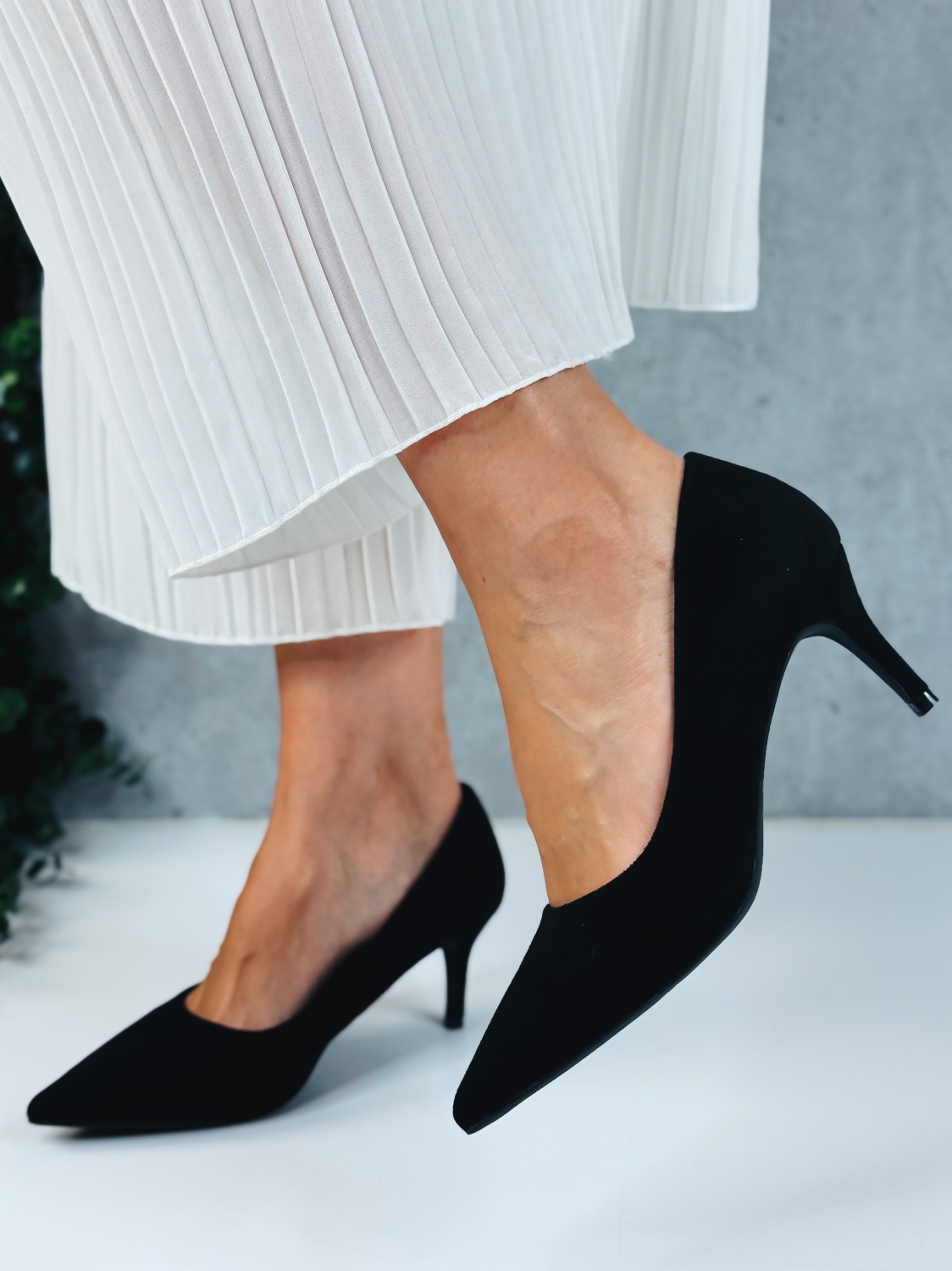Tieto dámske čierne semišové lodičky sú dokonalou voľbou pre ženy, ktoré milujú nadčasový štýl a pohodlie v jednom. Ich jemný semišový povrch pôsobí luxusne a veľmi vkusne, vďaka čomu sa stanú ideálnym doplnkom nielen na spoločenské udalosti, ale aj do práce či na bežné nosenie. Neutrálna béžová farba krásne ladí s akýmkoľvek outfitom a opticky predlžuje nohy, čím vytvára elegantnú a ženskú siluetu. Opätok s výškou 7 cm je ideálny kompromis medzi štýlom a komfortom – dodá ti výšku a sebavedomie, no zároveň zabezpečí pohodlie aj počas celodenného nosenia. Klasický strih a precízne spracovanie robia z týchto lodičiek univerzálny kúsok, ktorý nikdy nevyjde z módy a vždy dodá tvojmu looku ten správny šmrnc.