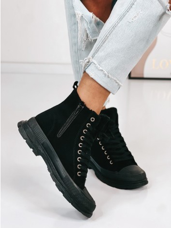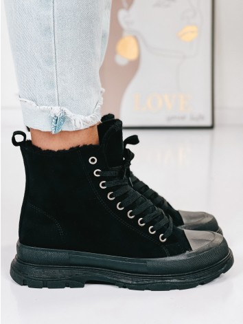 Dámske zateplené zimné topánky so semišovým hrubým povrchom v čiernej farbe Vás v zime príjemne zahrejú. Športový kúsok dámskych topánok, ktoré sú zvnútra hrubo zateplené a preto sú vhodné aj do chladného zimného počasia. Či do práce, školy alebo len tak do mesta na kávu, obujete si ich všade. Jednoznačne #musthave kúsok na túto sezónu. Čižmy, ktoré Vám zabezpečia úplne pohodlie a teplo kamkoľvek sa vyberiete. Jednoduché zapínanie zboku na zips. Vyššia platforma - 3,5 cm Vás ochráni pred mrazom. Ak zháňate teplé čižmičky, ktoré si rýchlo obujete a vyrazíte, ste na správnej adrese! Veľkostne sedia presne.