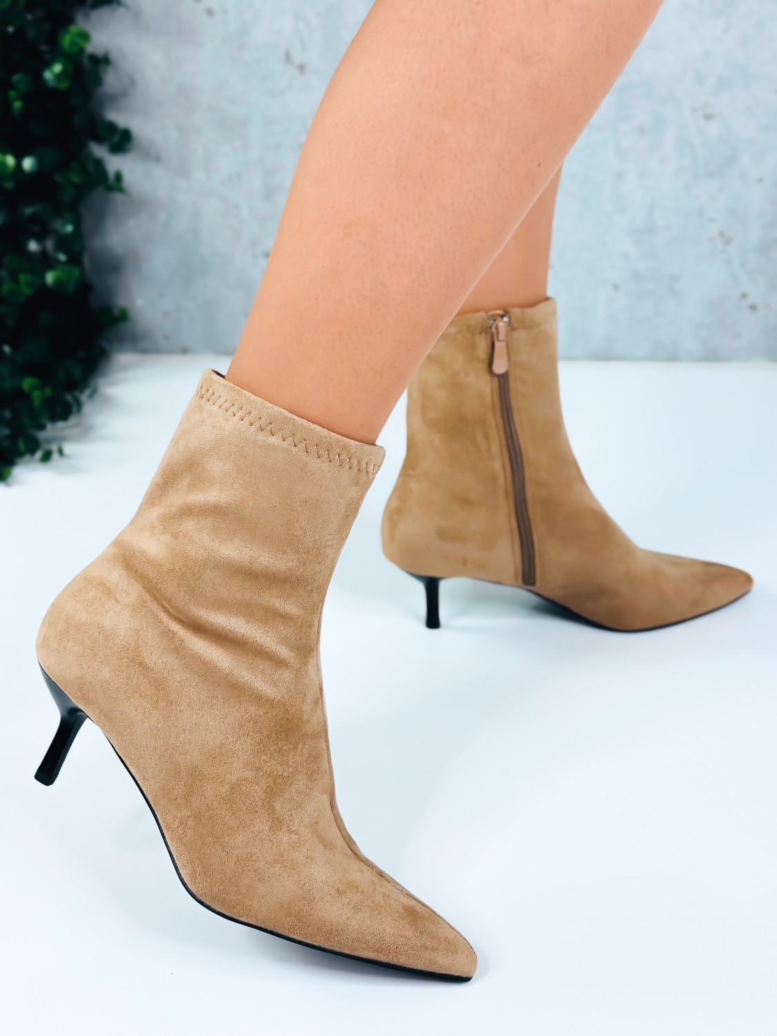 Vychutnajte si spojenie pohodlia, elegancie a nadčasového dizajnu s našimi dámskymi členkovými semišovými čižmami v krásnej béžovej farbe. Tento model je ideálnou voľbou na jesenné aj zimné mesiace – ľahko ho skombinujete s kabátom, džínsami, pletenými šatami aj elegantnou sukňou. Čižmy sú vyrobené z kvalitného, na dotyk príjemného semišu, ktorý pôsobí luxusne a zároveň je odolný pri každodennom nosení. Stabilný nízky opätok poskytuje celodenný komfort, takže ich môžete nosiť nielen do práce, ale aj na prechádzky či bežné každodenné aktivity. Detailné prešívanie a jemné línie dodávajú modelu štýl, ktorý nikdy nevyjde z módy. Béžový odtieň je univerzálny, ľahko kombinovateľný a krásne oživí každý outfit. Ak hľadáte čižmy, ktoré sú pohodlné, štýlové a pripravené pre každodenné nosenie, tieto semišové členkové čižmy budú tou správnou voľbou. Sú skvelé aj ako darček pre milovníčky jednoduchosti, elegancie a kvalitných materiálov.