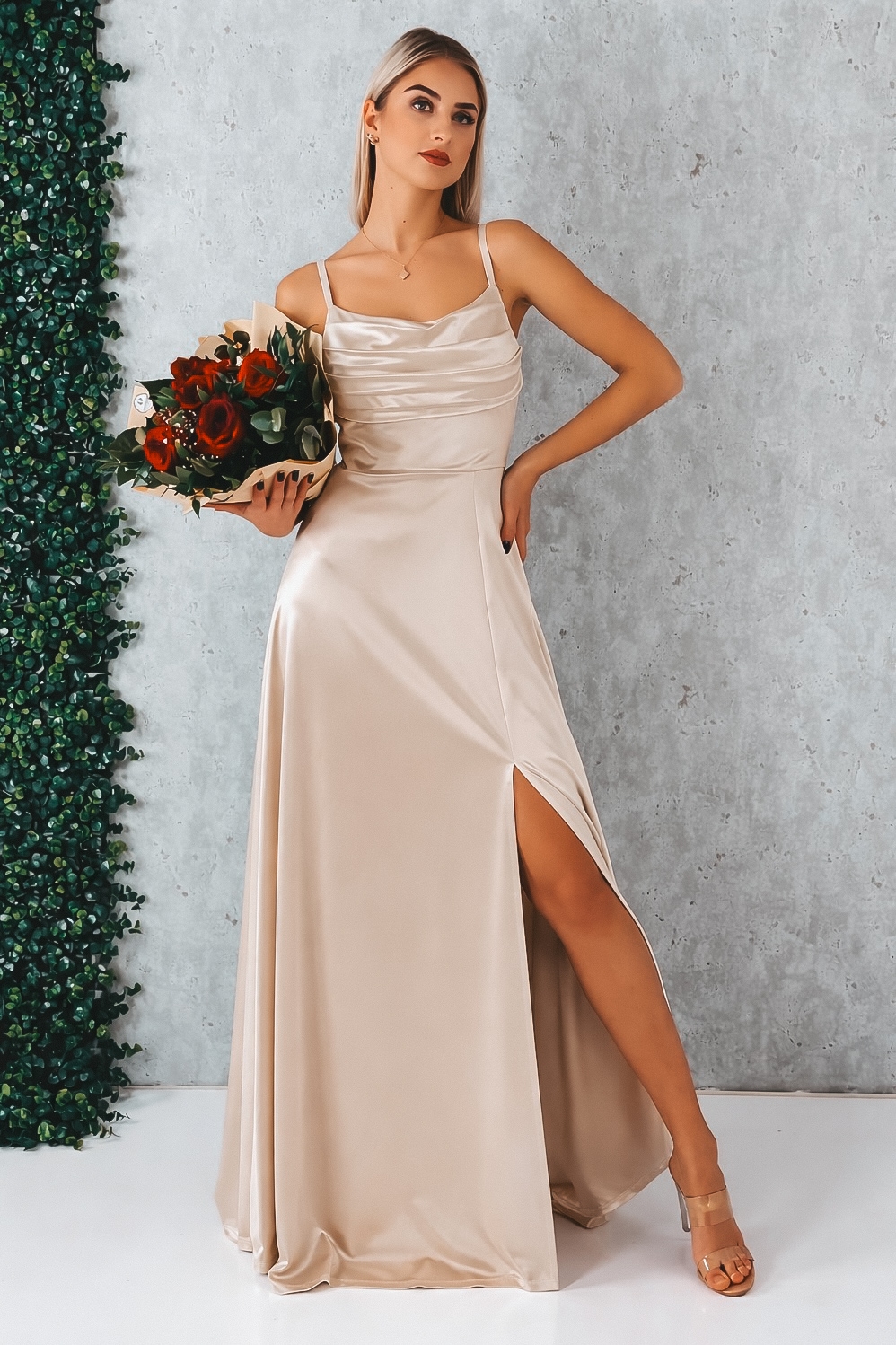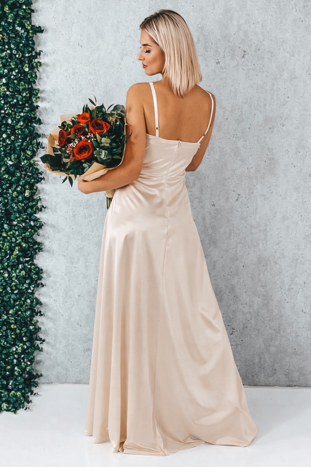 Dámske dlhé spoločenské šaty na ramienka s výrazným rázporkom predstavujú dokonalé spojenie elegancie, ženskosti a jemnej zvodnosti. Ich strih je navrhnutý tak, aby lichotil postave, zvýraznil siluetu a zároveň poskytol pohodlie počas celého večera. Úzke ramienka pôsobia jemne a sofistikovane, krásne zvýraznia líniu ramien a krku a dodávajú modelu ľahkosť. Vrchná časť šiat je priliehavá čím vytvára harmonické proporcie. Dĺžka až po zem opticky predlžuje postavu a dodáva šatám noblesný charakter vhodný na plesy, svadby, stužkové, galavečery či iné výnimočné spoločenské udalosti. Dominantným prvkom je elegantný rázporok, ktorý decentne odhaľuje nohu pri chôdzi a dodáva celkovému vzhľadu dynamiku a sebavedomie. Rázporok zároveň zabezpečuje komfort pri pohybe a tanci. Tento model je ideálnou voľbou pre ženu, ktorá chce pôsobiť elegantne, sebavedomo a zároveň žensky. Správne zvolené doplnky ako lodičky na vysokom podpätku, jemné šperky a malá spoločenská kabelka podčiarknu celkový dojem a vytvoria nezabudnuteľný outfit vhodný na výnimočnú príležitosť.