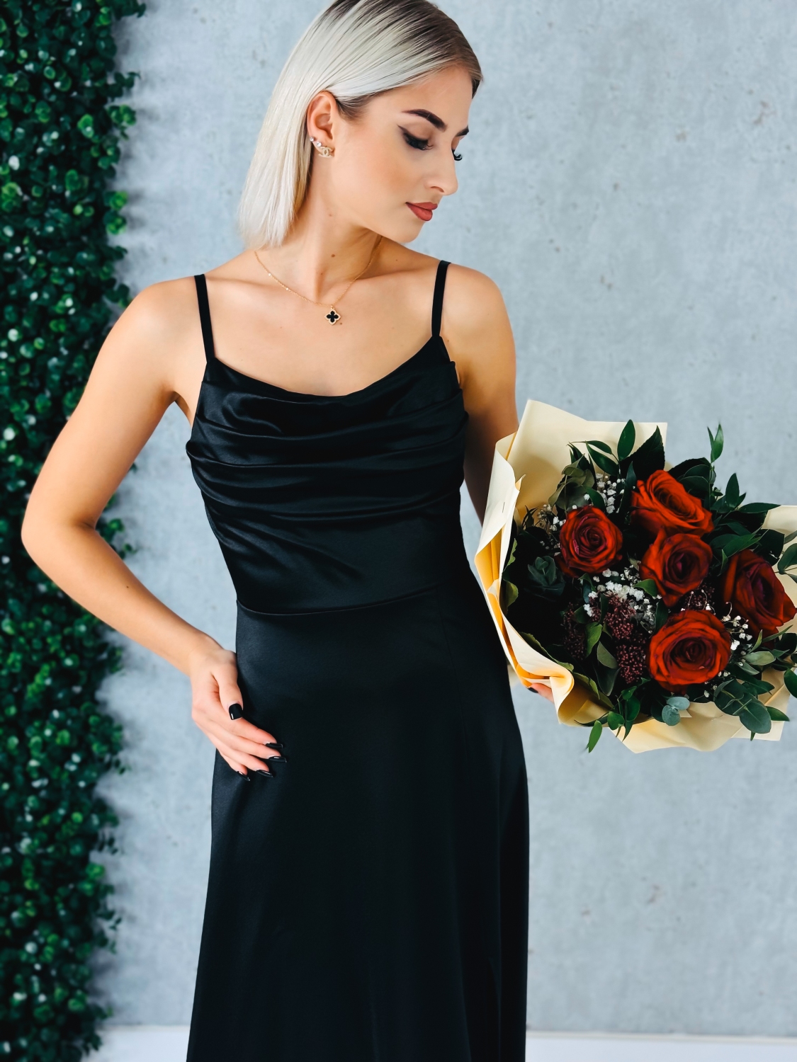 Dámske dlhé spoločenské šaty na ramienka s výrazným rázporkom predstavujú dokonalé spojenie elegancie, ženskosti a jemnej zvodnosti. Ich strih je navrhnutý tak, aby lichotil postave, zvýraznil siluetu a zároveň poskytol pohodlie počas celého večera. Úzke ramienka pôsobia jemne a sofistikovane, krásne zvýraznia líniu ramien a krku a dodávajú modelu ľahkosť. Vrchná časť šiat je priliehavá čím vytvára harmonické proporcie. Dĺžka až po zem opticky predlžuje postavu a dodáva šatám noblesný charakter vhodný na plesy, svadby, stužkové, galavečery či iné výnimočné spoločenské udalosti. Dominantným prvkom je elegantný rázporok, ktorý decentne odhaľuje nohu pri chôdzi a dodáva celkovému vzhľadu dynamiku a sebavedomie. Rázporok zároveň zabezpečuje komfort pri pohybe a tanci. Tento model je ideálnou voľbou pre ženu, ktorá chce pôsobiť elegantne, sebavedomo a zároveň žensky. Správne zvolené doplnky ako lodičky na vysokom podpätku, jemné šperky a malá spoločenská kabelka podčiarknu celkový dojem a vytvoria nezabudnuteľný outfit vhodný na výnimočnú príležitosť.
