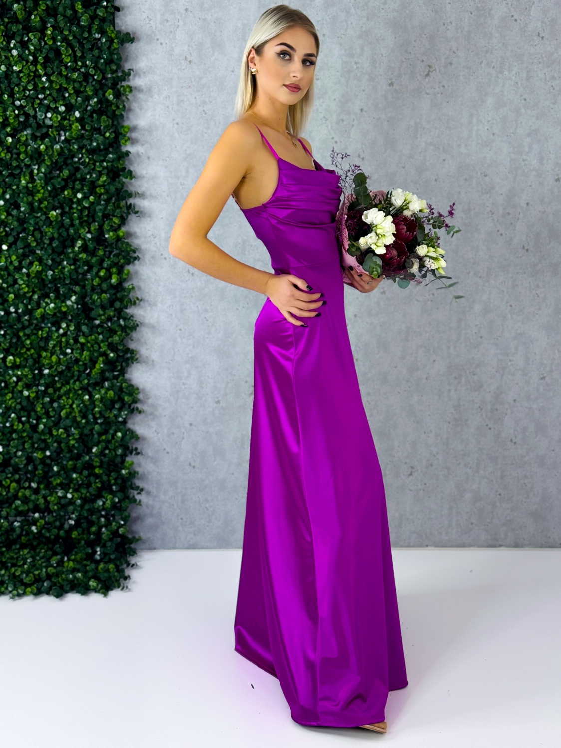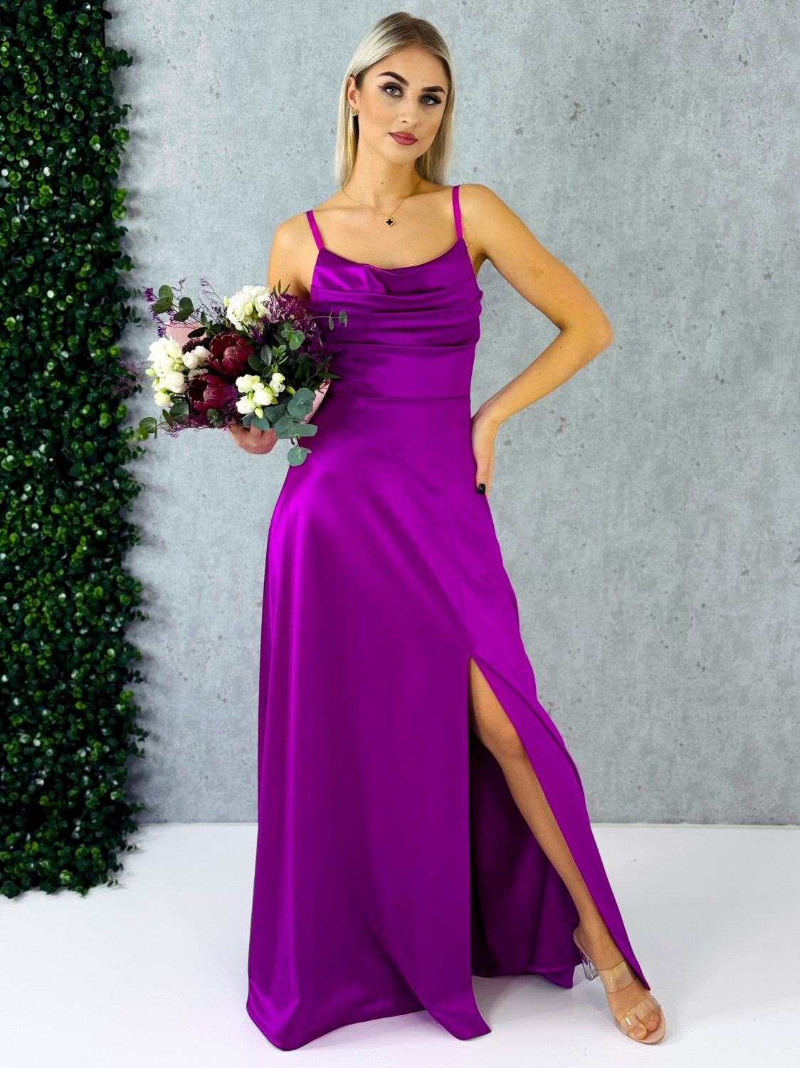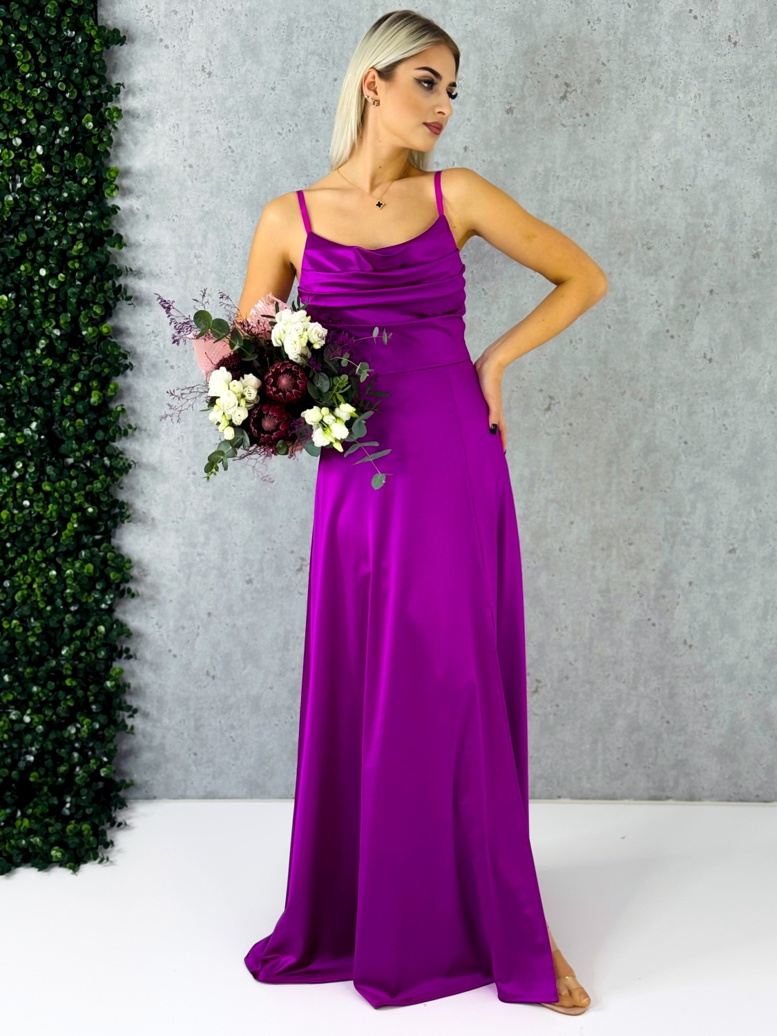 Dámske dlhé spoločenské šaty na ramienka s výrazným rázporkom predstavujú dokonalé spojenie elegancie, ženskosti a jemnej zvodnosti. Ich strih je navrhnutý tak, aby lichotil postave, zvýraznil siluetu a zároveň poskytol pohodlie počas celého večera. Úzke ramienka pôsobia jemne a sofistikovane, krásne zvýraznia líniu ramien a krku a dodávajú modelu ľahkosť. Vrchná časť šiat je priliehavá čím vytvára harmonické proporcie. Dĺžka až po zem opticky predlžuje postavu a dodáva šatám noblesný charakter vhodný na plesy, svadby, stužkové, galavečery či iné výnimočné spoločenské udalosti. Dominantným prvkom je elegantný rázporok, ktorý decentne odhaľuje nohu pri chôdzi a dodáva celkovému vzhľadu dynamiku a sebavedomie. Rázporok zároveň zabezpečuje komfort pri pohybe a tanci. Tento model je ideálnou voľbou pre ženu, ktorá chce pôsobiť elegantne, sebavedomo a zároveň žensky. Správne zvolené doplnky ako lodičky na vysokom podpätku, jemné šperky a malá spoločenská kabelka podčiarknu celkový dojem a vytvoria nezabudnuteľný outfit vhodný na výnimočnú príležitosť.