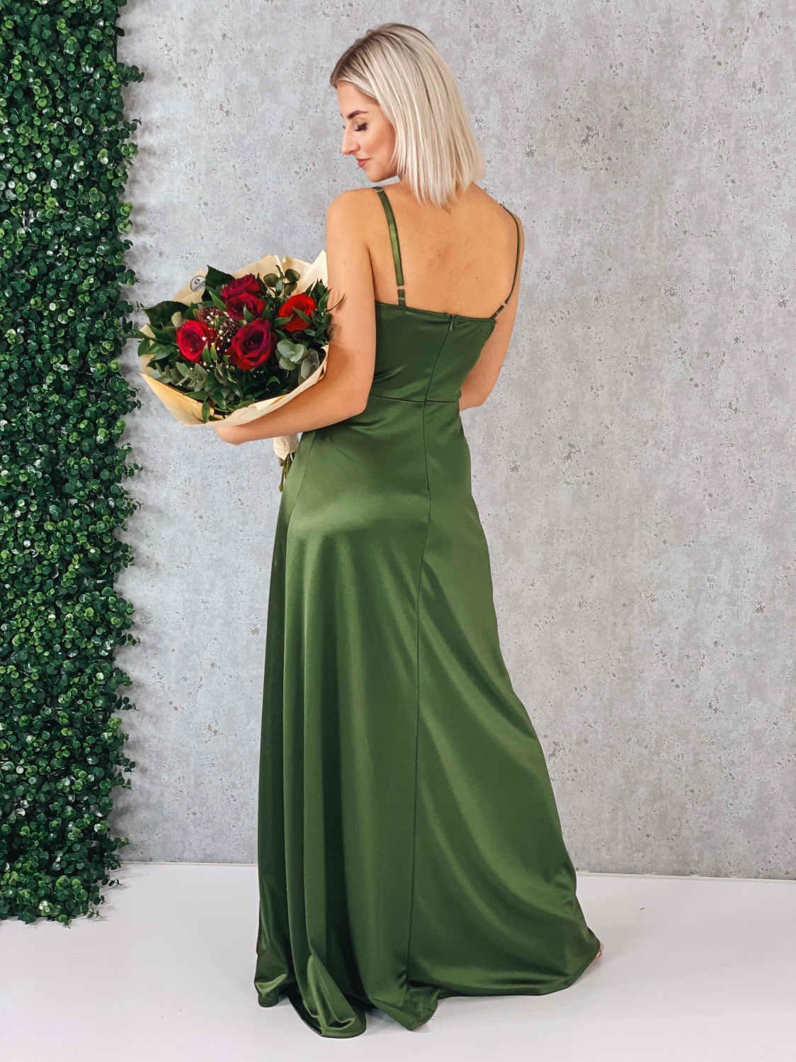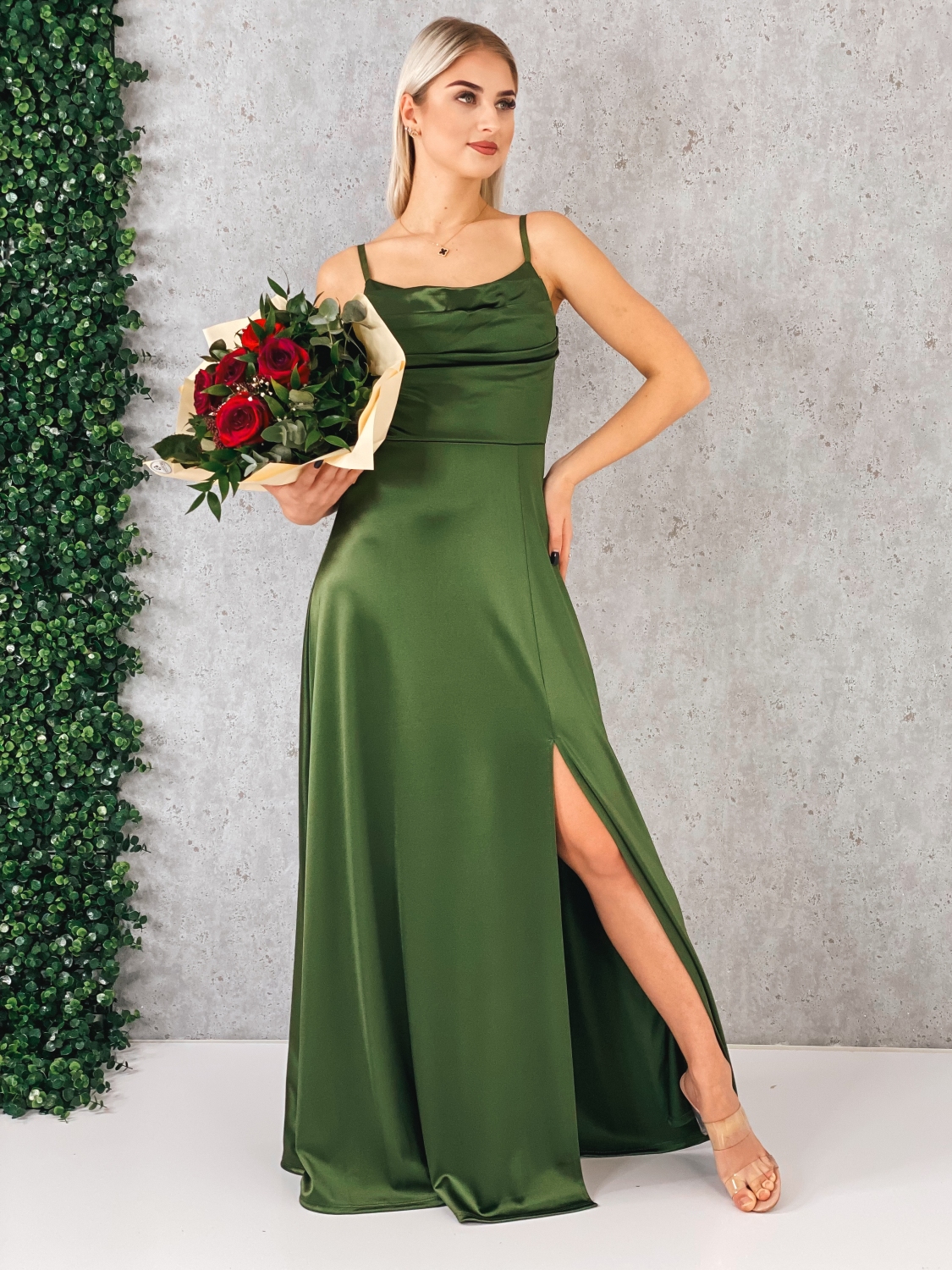 Dámske dlhé spoločenské šaty na ramienka s výrazným rázporkom predstavujú dokonalé spojenie elegancie, ženskosti a jemnej zvodnosti. Ich strih je navrhnutý tak, aby lichotil postave, zvýraznil siluetu a zároveň poskytol pohodlie počas celého večera. Úzke ramienka pôsobia jemne a sofistikovane, krásne zvýraznia líniu ramien a krku a dodávajú modelu ľahkosť. Vrchná časť šiat je priliehavá čím vytvára harmonické proporcie. Dĺžka až po zem opticky predlžuje postavu a dodáva šatám noblesný charakter vhodný na plesy, svadby, stužkové, galavečery či iné výnimočné spoločenské udalosti. Dominantným prvkom je elegantný rázporok, ktorý decentne odhaľuje nohu pri chôdzi a dodáva celkovému vzhľadu dynamiku a sebavedomie. Rázporok zároveň zabezpečuje komfort pri pohybe a tanci. Tento model je ideálnou voľbou pre ženu, ktorá chce pôsobiť elegantne, sebavedomo a zároveň žensky. Správne zvolené doplnky ako lodičky na vysokom podpätku, jemné šperky a malá spoločenská kabelka podčiarknu celkový dojem a vytvoria nezabudnuteľný outfit vhodný na výnimočnú príležitosť.
