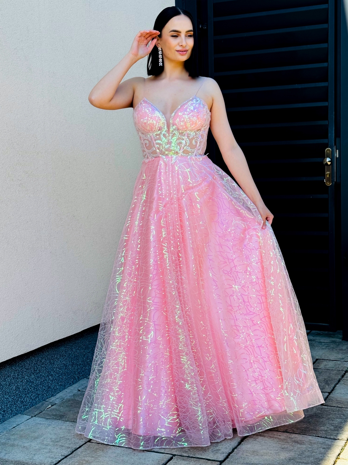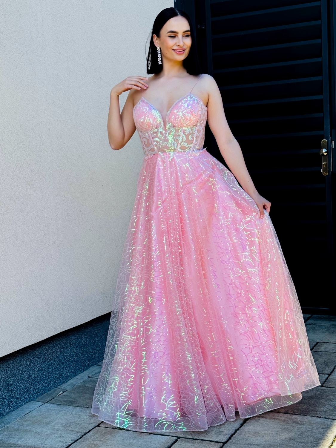 Dámske dlhé ružové trblietavé spoločenské šaty, v ktorých rozhodne zažiari každá dáma. Vitajte v svete dámskych spoločenských šiat, kde elegancia a štýl sa stretávajú. Ak hľadáte dokonalé oblečenie pre ples, svadbu alebo inú spoločenskú udalosť, ste na správnom mieste. Naša kolekcia dámskych spoločenských šiat prináša najnovšie trendy a novinky vo svete módy. Bez ohľadu na to, či preferujete tradičný štýl alebo odvážne moderné dizajny, u nás nájdete niečo pre každú osobnosť a príležitosť. Naše dámske spoločenské šaty sú vyrobené z kvalitných materiálov a s dôrazom na detaily. Každý kúsok je starostlivo navrhnutý tak, aby vám poskytol pohodlie a sebavedomie po celú noc. Prejdite si našu kolekciu dnes a nenechajte si ujsť žiadnu príležitosť byť krásna a štýlová. S našimi dámskymi spoločenskými šatami budete vždy stredobodom pozornosti. Exkluzívny kúsok šiat, ktorý má romantický strih a nadčasový pohodlný materiál. Tento model očarí každú z Vás a samozrejme aj ostatných okolo Vás. Vhodné sú na rôzne spoločenské udalosti ako je svadba, stužková slávnosť, či ples. Modelka je vysoká 175 cm a má oblečenú veľkosť S.
