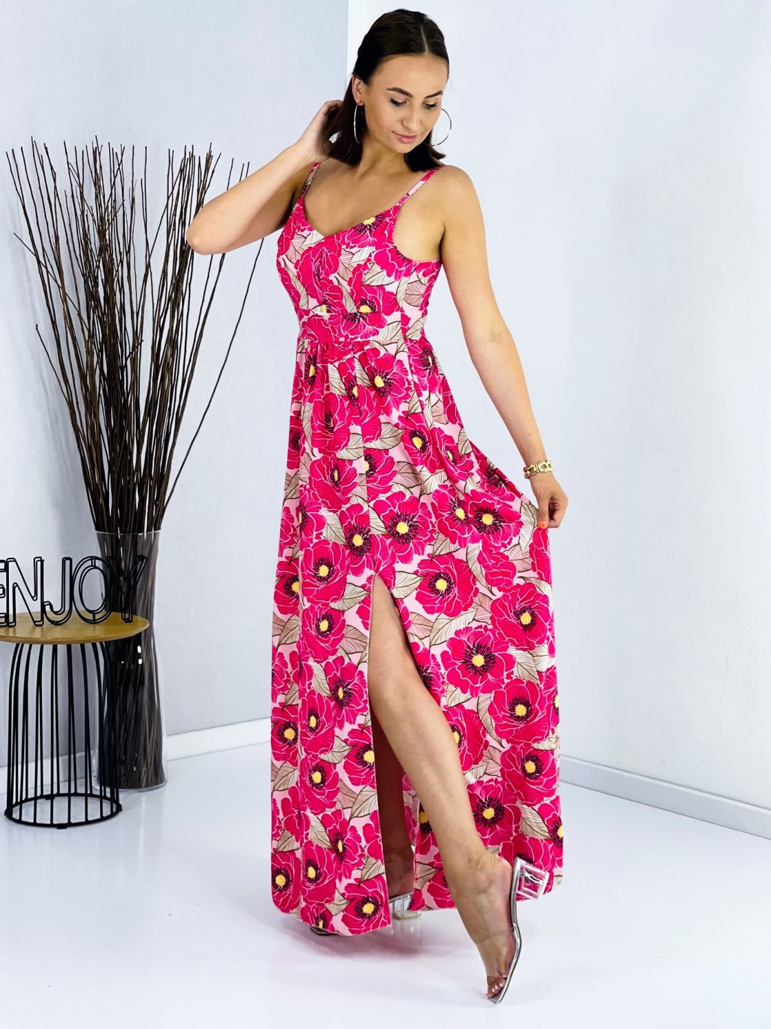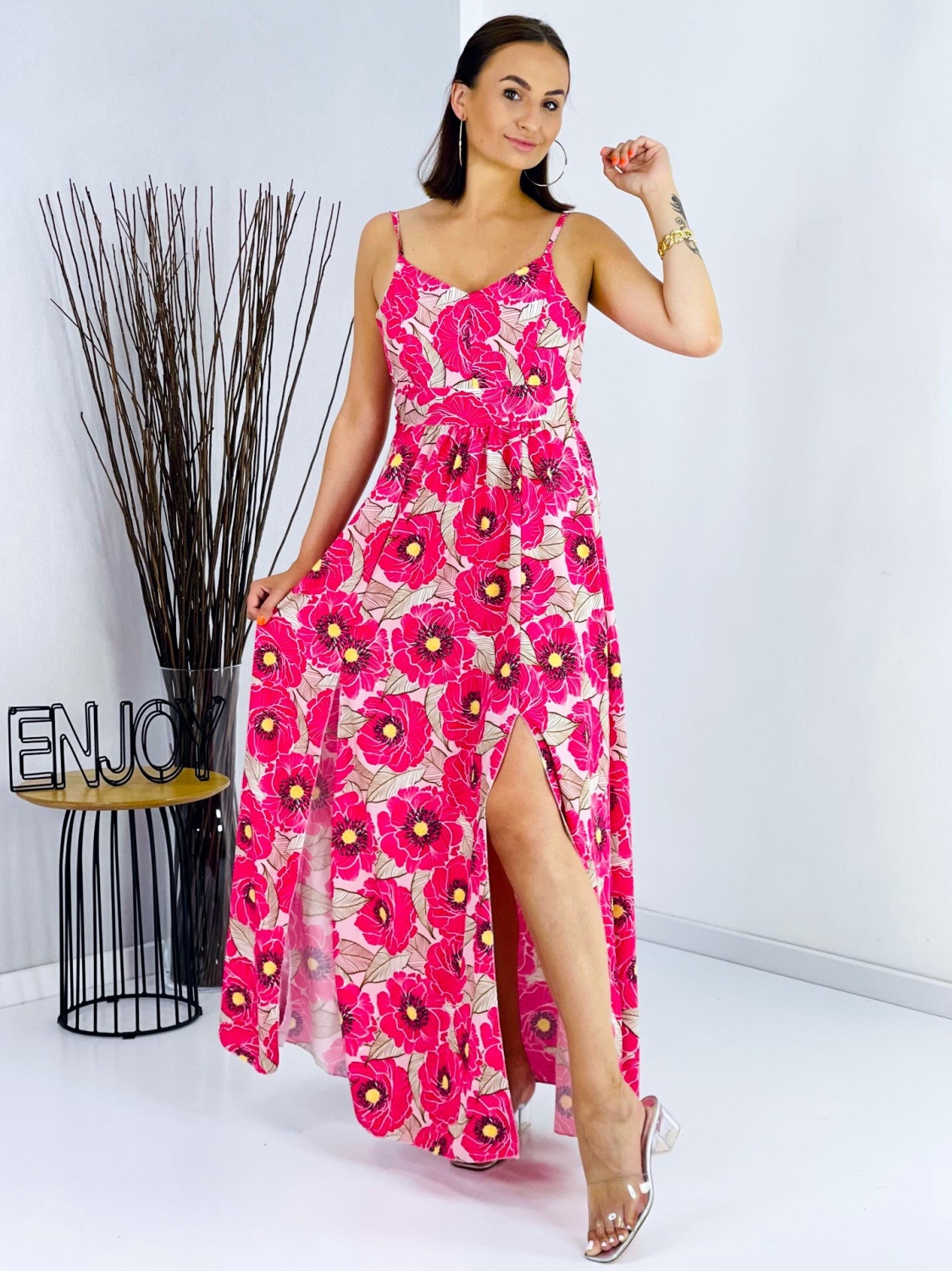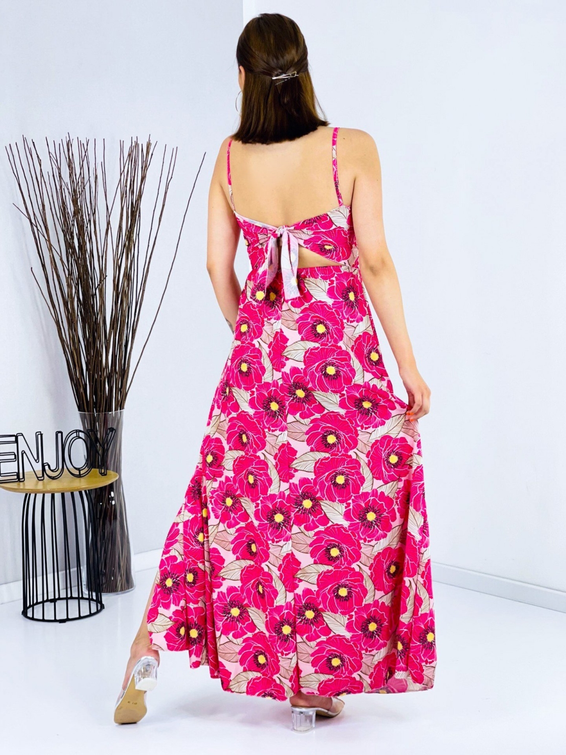 Dámske dlhé šaty s viazaním na chrbte a rázporkami na oboch stranách. Šaty sú vyrobené z príjemného a padavého materiálu. Tento model využijete na spoločenské príležitosti ako svadby a oslavy, ale aj na dlhé, letné, večerné prechádzky. Môžete ich doplniť spoločenskou kabelkou a lodičkami, alebo bundičkou a sandálkami. Využijete ich na akúkoľvek príležitosť a neostanú Vám visieť v skrini po jednej akcii, to Vám sľubujeme:). Tieto neodolateľné a naozaj široko využuitelné šaty majú vystužené prsia. Prispôsobia sa viacerým typom postáv a veľkostiam od XS po XL. Ramienka nie sú nastaviteľné. Modelka je vysoká 175 cm a má oblečenú veľkosť UNI. Doručenie ihneď.