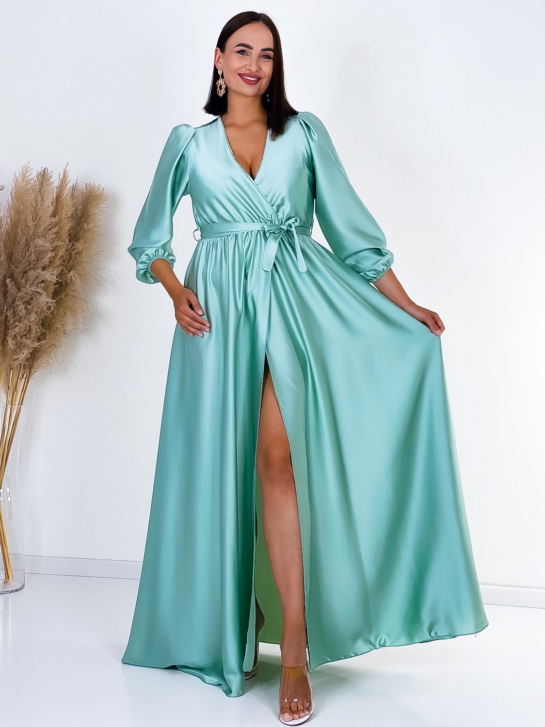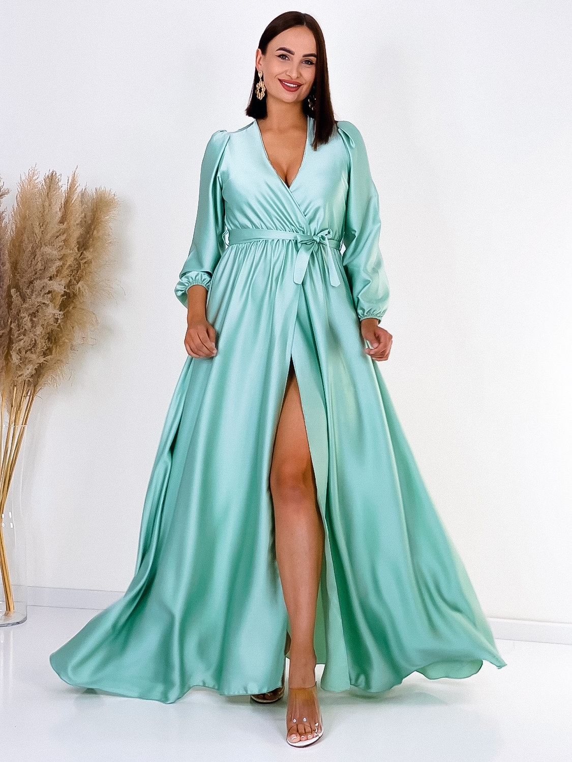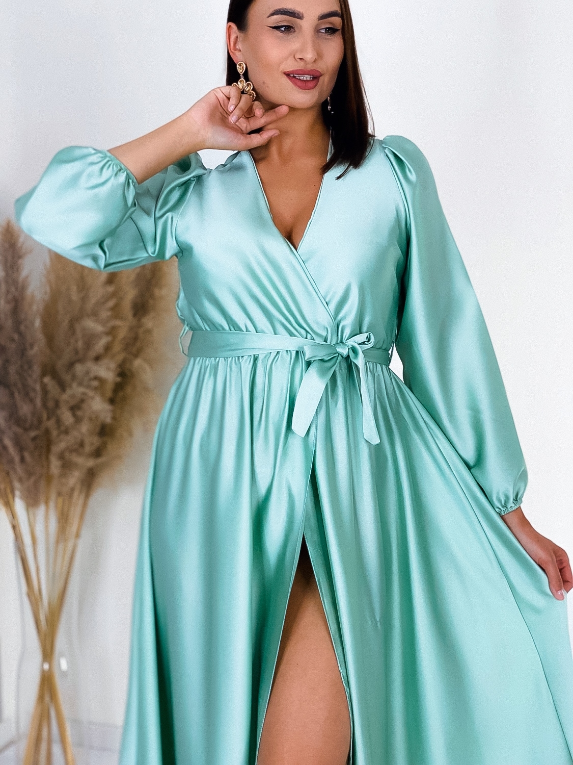 Dámske spoločenské šaty v skvelom pohodlnom saténovom prevedení. Univerzalný kúsok šiat, ktorý si môžete prispôsobiť podľa seba a šaty si uviazať podľa vlastného vkusu. Šaty sa vďaka materiálu prispôsobia ihneď Vašej postave. Veľmi luxusný kúsok z našej ponuky, ktorý očarí každú z Vás a samozrejme aj ostatných okolo Vás. Materiál, ktorý Vám dodá šmrnc. Bez zapínania s gumičkou v páse. Vhodné sú na rôzne spoločenské udalosti ako je svadba, stužková slávnosť či ples. Doplnené razporkom v prednej časti. Dlhý 62 cm rukáv. Modelka je vysoká 175 cm a má oblečenú veľkosť UNI.