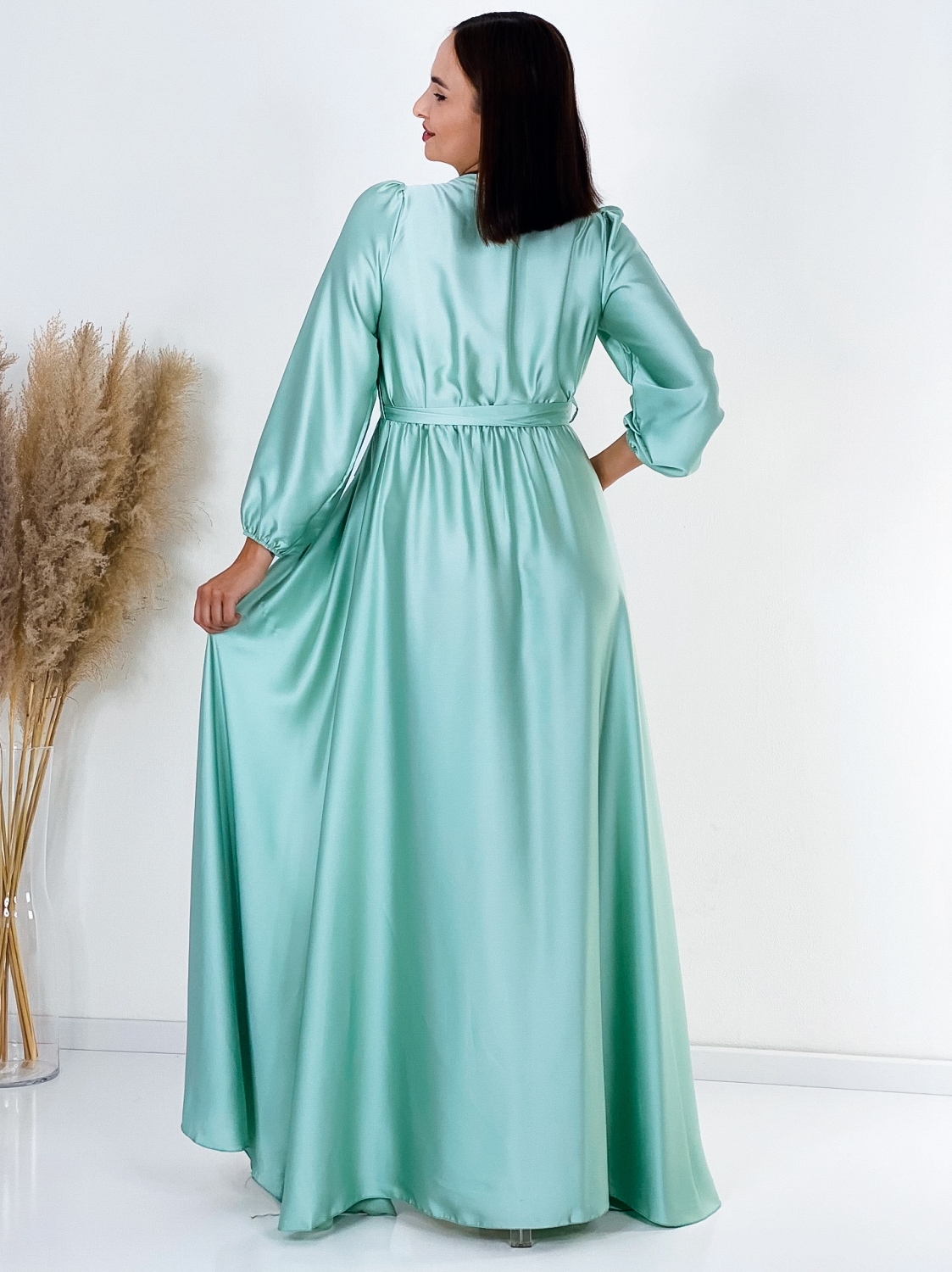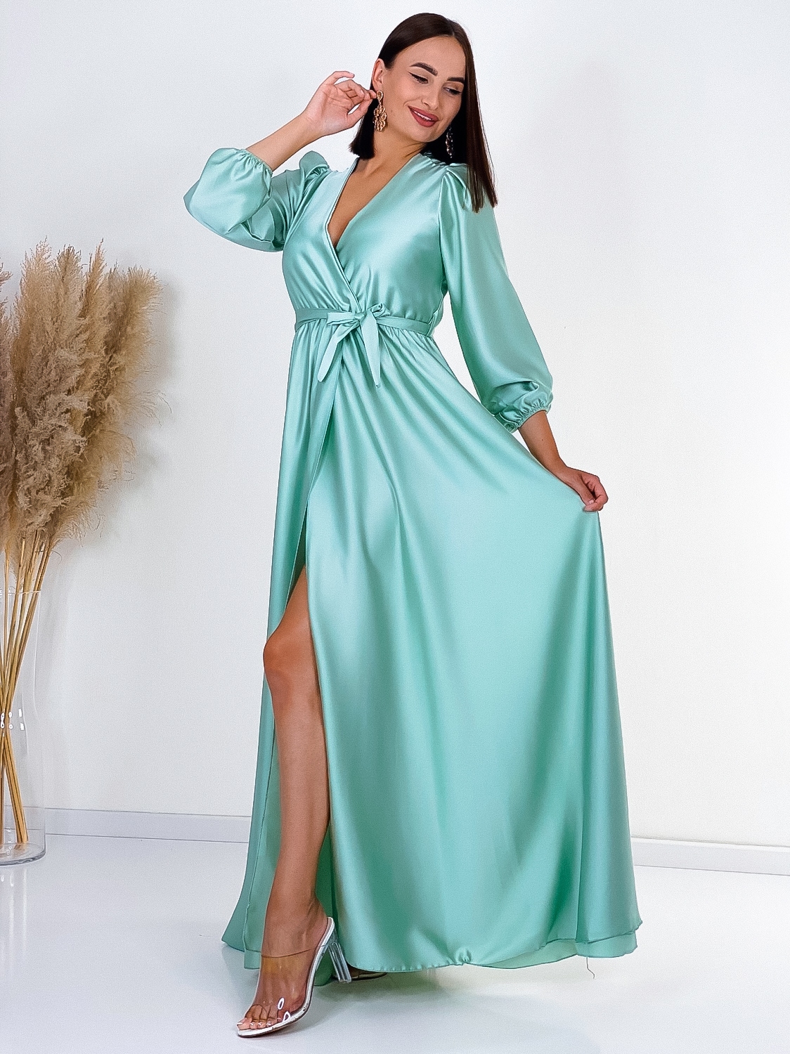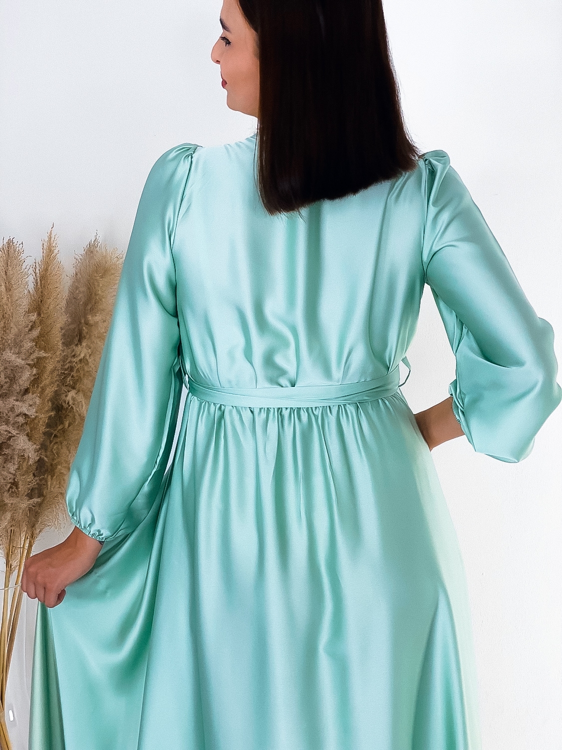 Dámske spoločenské šaty v skvelom pohodlnom saténovom prevedení. Univerzalný kúsok šiat, ktorý si môžete prispôsobiť podľa seba a šaty si uviazať podľa vlastného vkusu. Šaty sa vďaka materiálu prispôsobia ihneď Vašej postave. Veľmi luxusný kúsok z našej ponuky, ktorý očarí každú z Vás a samozrejme aj ostatných okolo Vás. Materiál, ktorý Vám dodá šmrnc. Bez zapínania s gumičkou v páse. Vhodné sú na rôzne spoločenské udalosti ako je svadba, stužková slávnosť či ples. Doplnené razporkom v prednej časti. Dlhý 62 cm rukáv. Modelka je vysoká 175 cm a má oblečenú veľkosť UNI.