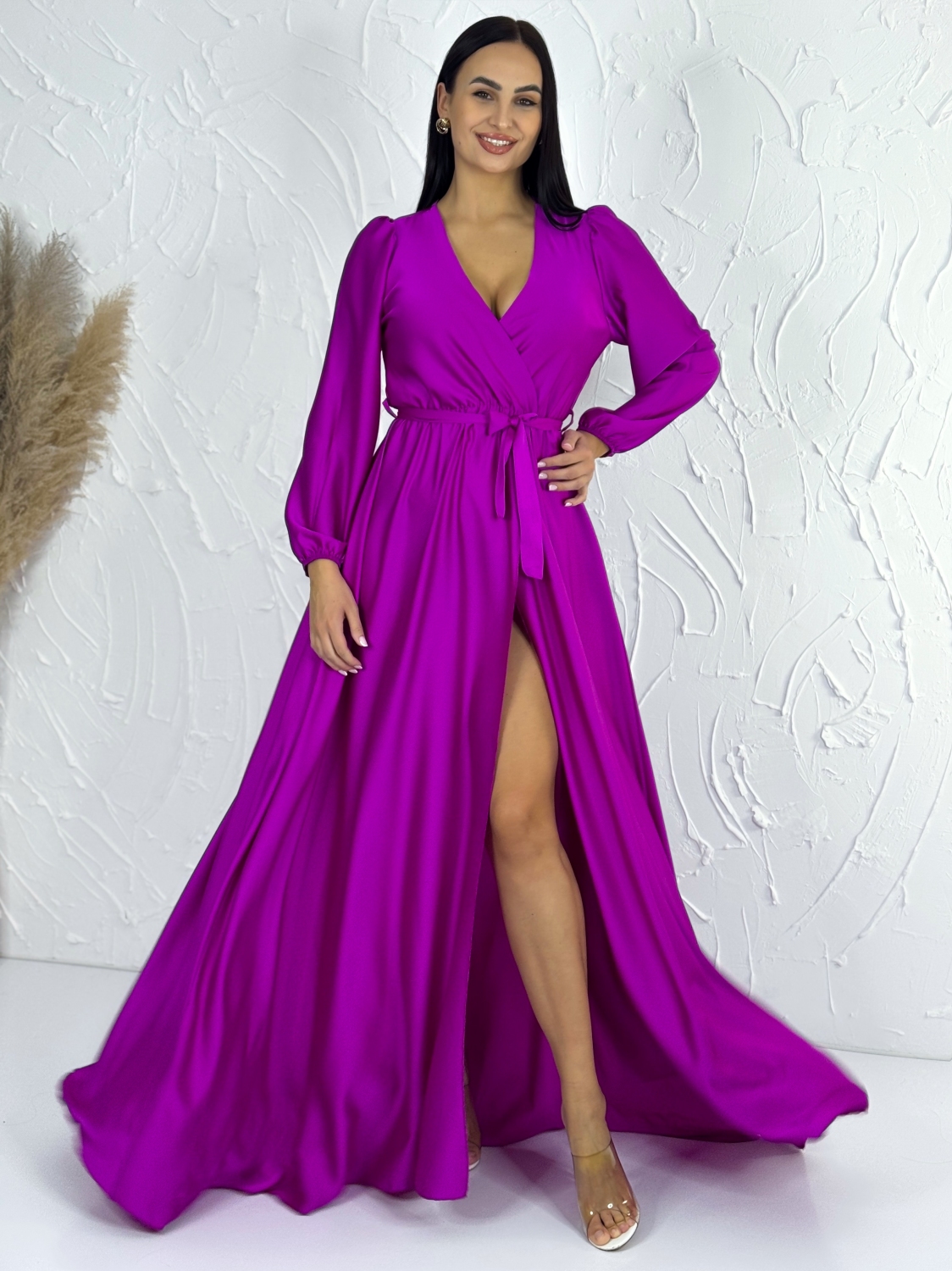 Dámske spoločenské šaty v skvelom pohodlnom saténovom prevedení. Univerzalný kúsok šiat, ktorý si môžete prispôsobiť podľa seba a šaty si uviazať podľa vlastného vkusu. Šaty sa vďaka materiálu prispôsobia ihneď Vašej postave. Veľmi luxusný kúsok z našej ponuky, ktorý očarí každú z Vás a samozrejme aj ostatných okolo Vás. Materiál, ktorý Vám dodá šmrnc. Bez zapínania s gumičkou v páse. Vhodné sú na rôzne spoločenské udalosti ako je svadba, stužková slávnosť či ples. Doplnené razporkom v prednej časti. Dlhý 62 cm rukáv. Modelka je vysoká 175 cm a má oblečenú veľkosť UNI.