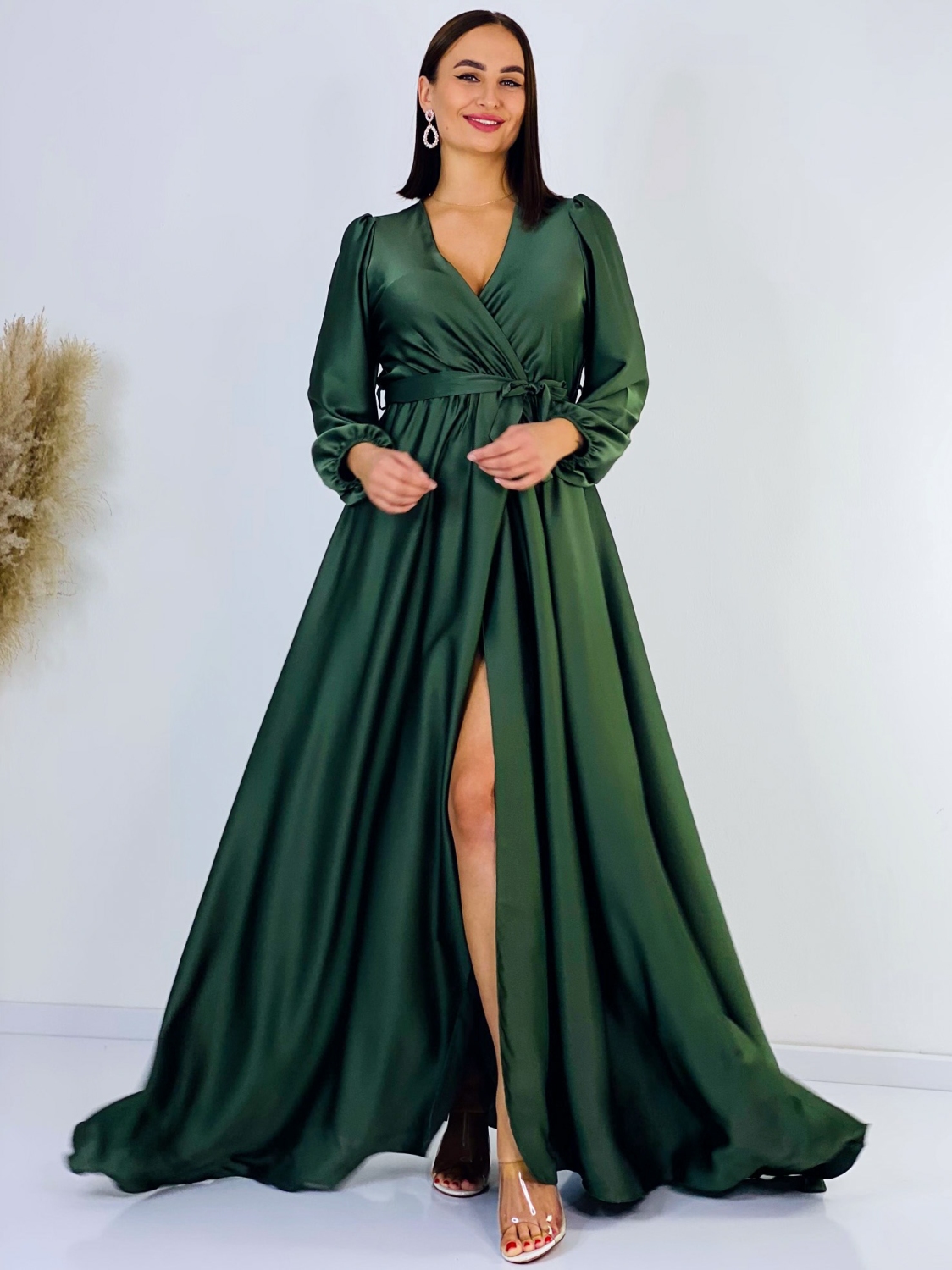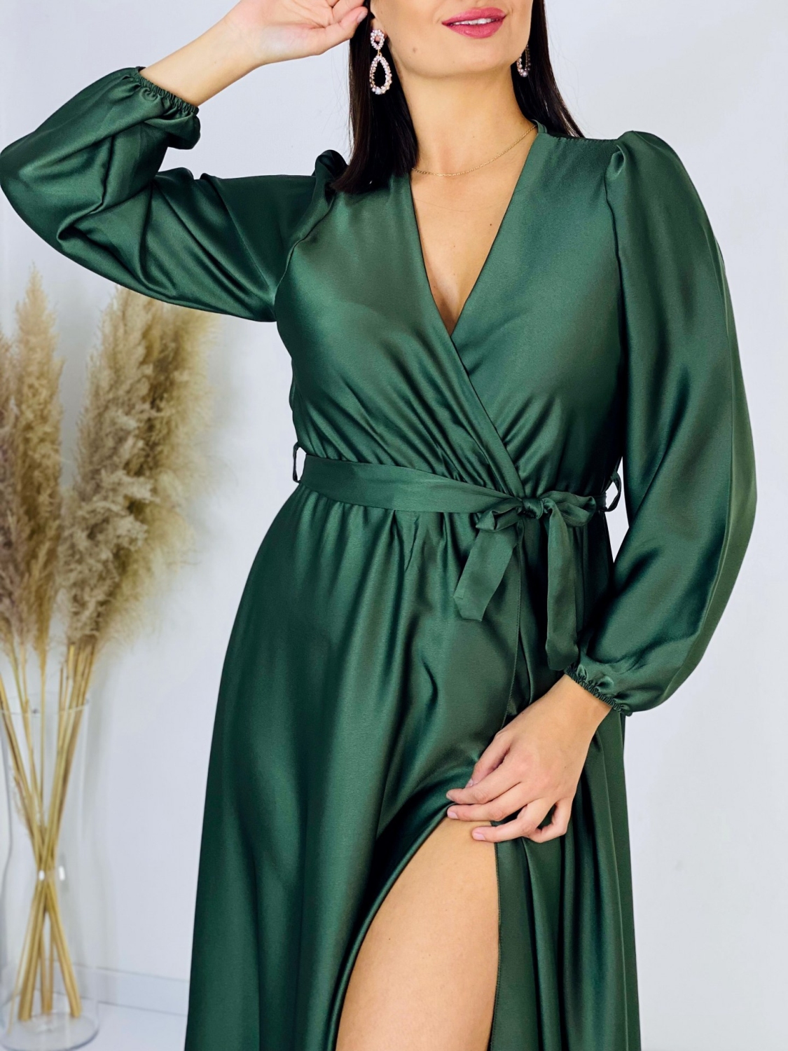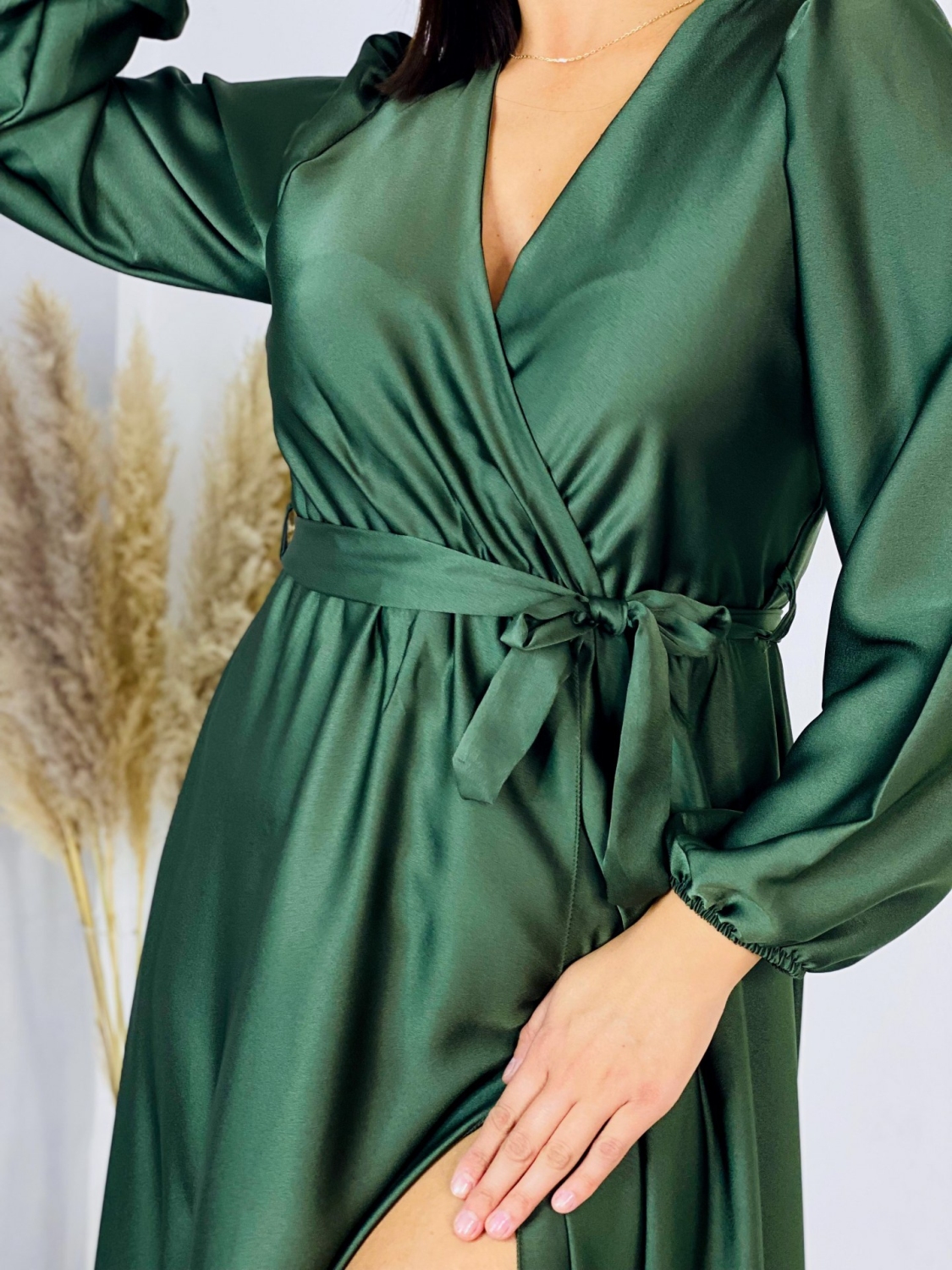 Dámske spoločenské šaty v skvelom pohodlnom saténovom prevedení. Univerzalný kúsok šiat, ktorý si môžete prispôsobiť podľa seba a šaty si uviazať podľa vlastného vkusu. Šaty sa vďaka materiálu prispôsobia ihneď Vašej postave. Veľmi luxusný kúsok z našej ponuky, ktorý očarí každú z Vás a samozrejme aj ostatných okolo Vás. Materiál, ktorý Vám dodá šmrnc. Bez zapínania s gumičkou v páse. Vhodné sú na rôzne spoločenské udalosti ako je svadba, stužková slávnosť či ples. Doplnené razporkom v prednej časti. Dlhý 62 cm rukáv. Modelka je vysoká 175 cm a má oblečenú veľkosť UNI.
