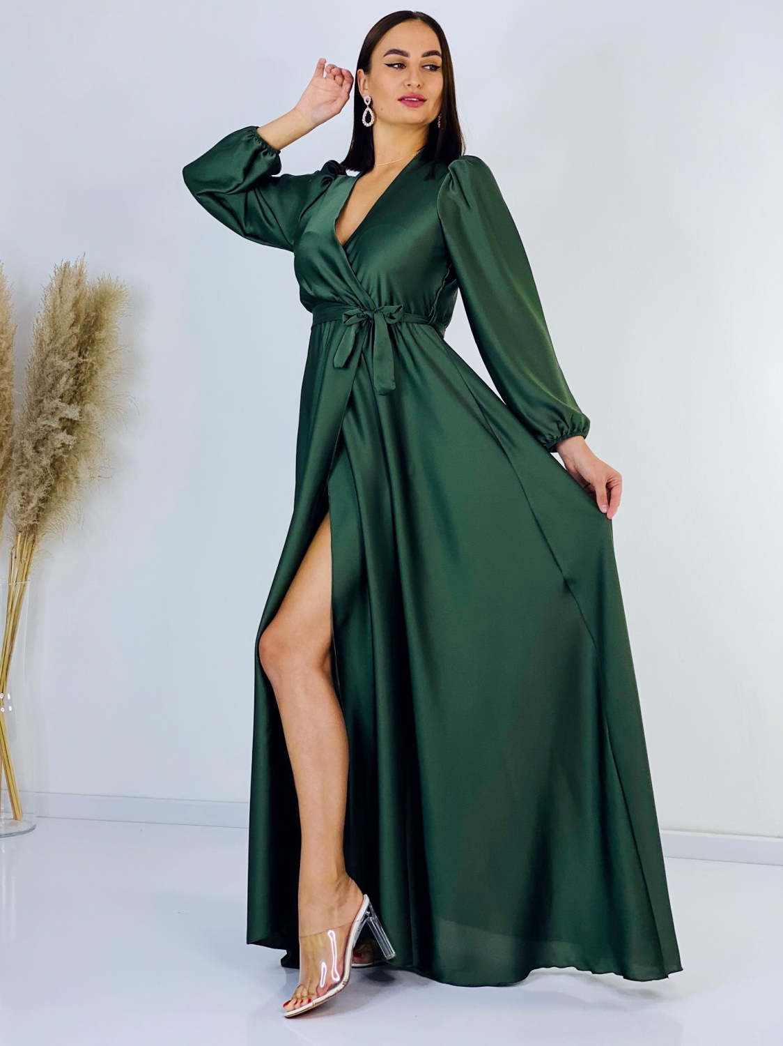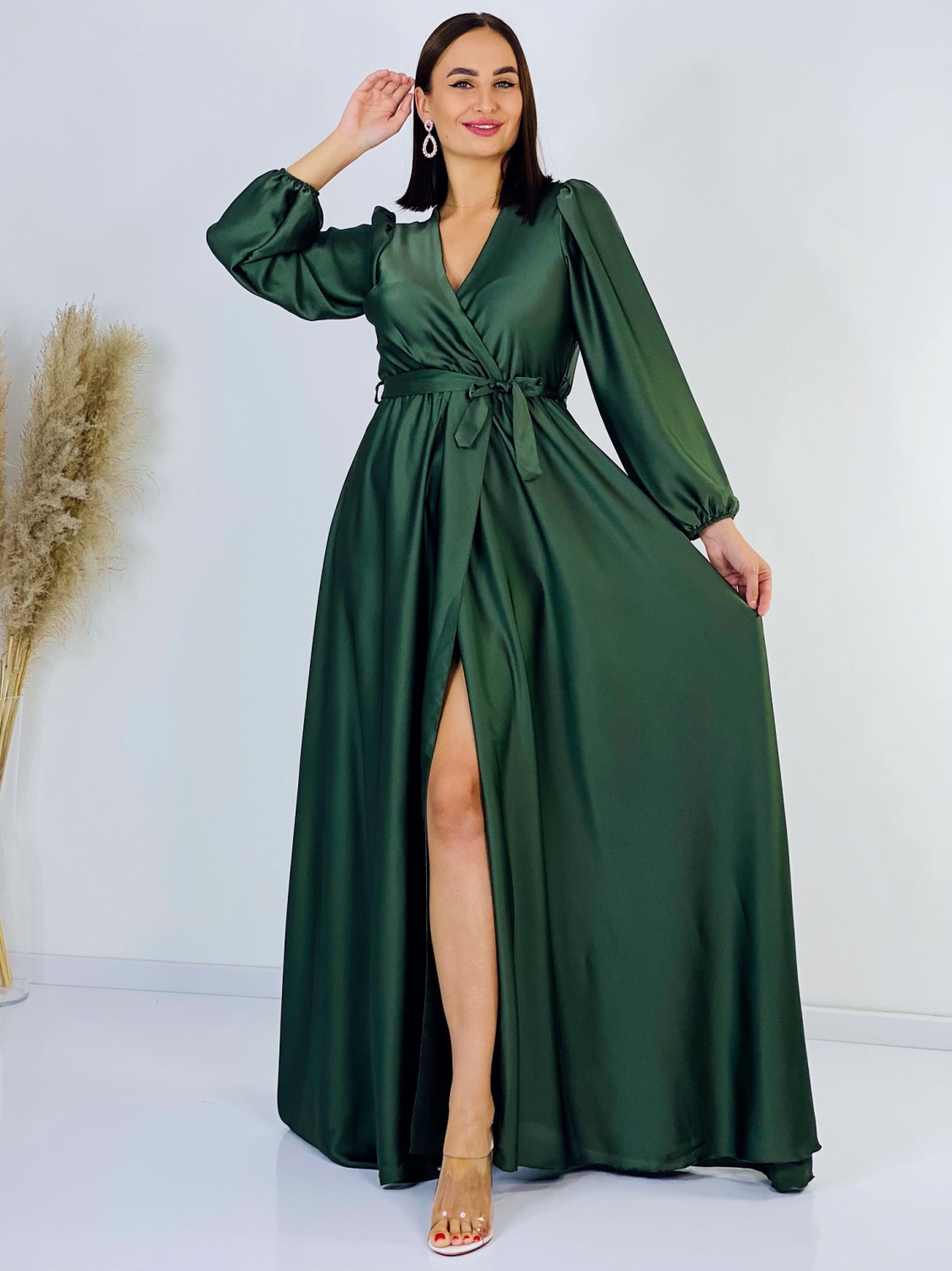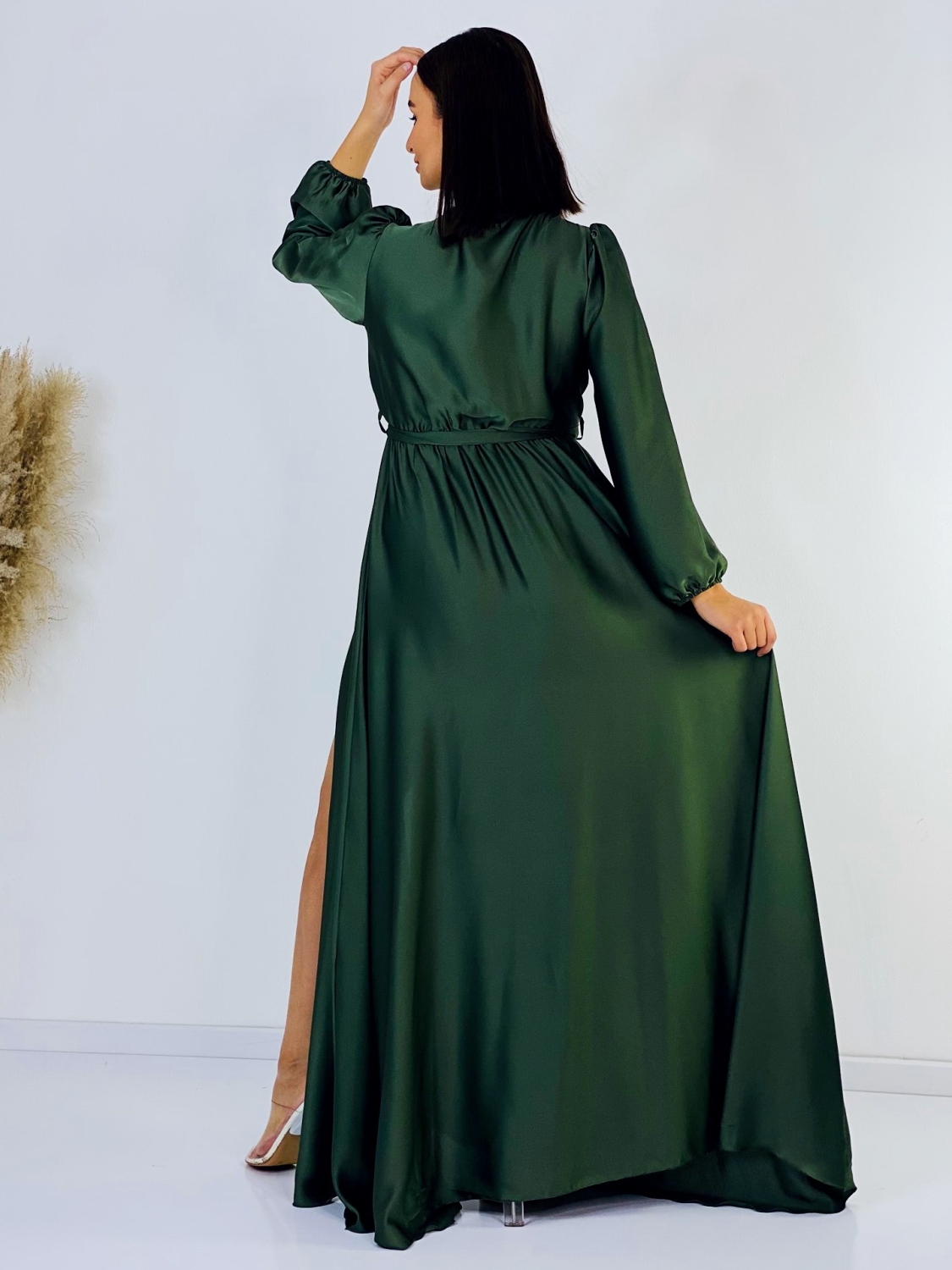 Dámske spoločenské šaty v skvelom pohodlnom saténovom prevedení. Univerzalný kúsok šiat, ktorý si môžete prispôsobiť podľa seba a šaty si uviazať podľa vlastného vkusu. Šaty sa vďaka materiálu prispôsobia ihneď Vašej postave. Veľmi luxusný kúsok z našej ponuky, ktorý očarí každú z Vás a samozrejme aj ostatných okolo Vás. Materiál, ktorý Vám dodá šmrnc. Bez zapínania s gumičkou v páse. Vhodné sú na rôzne spoločenské udalosti ako je svadba, stužková slávnosť či ples. Doplnené razporkom v prednej časti. Dlhý 62 cm rukáv. Modelka je vysoká 175 cm a má oblečenú veľkosť UNI.