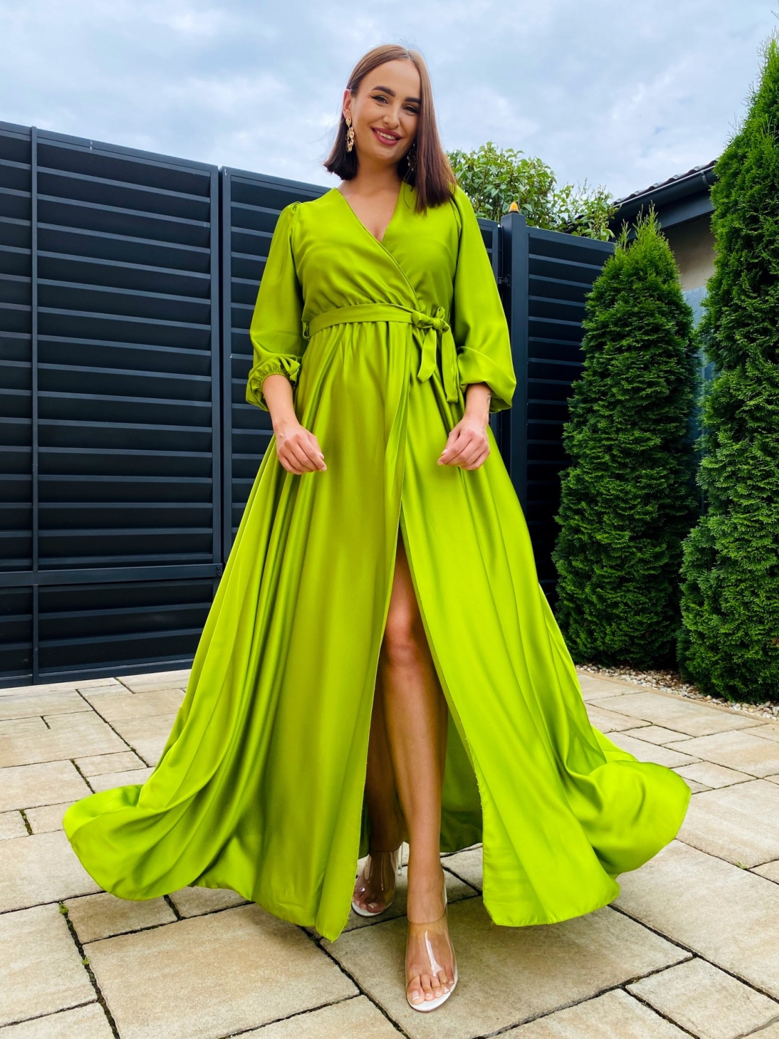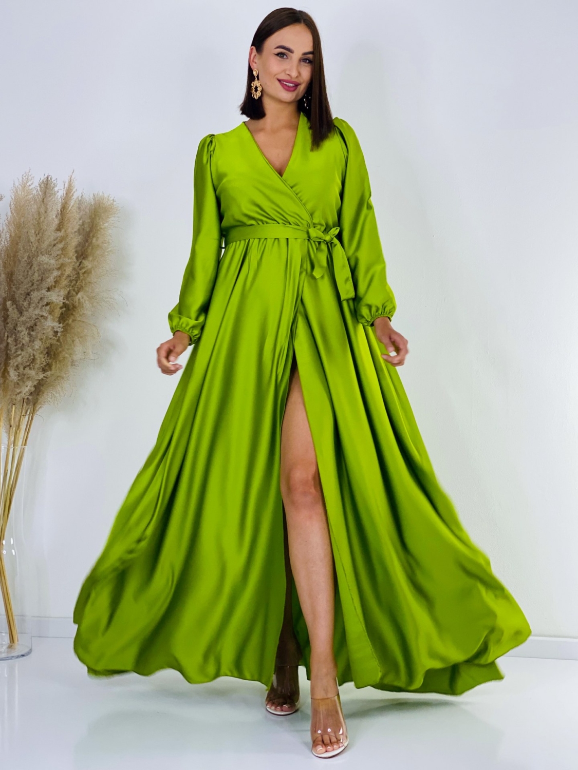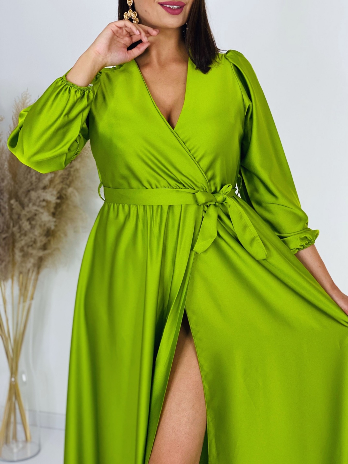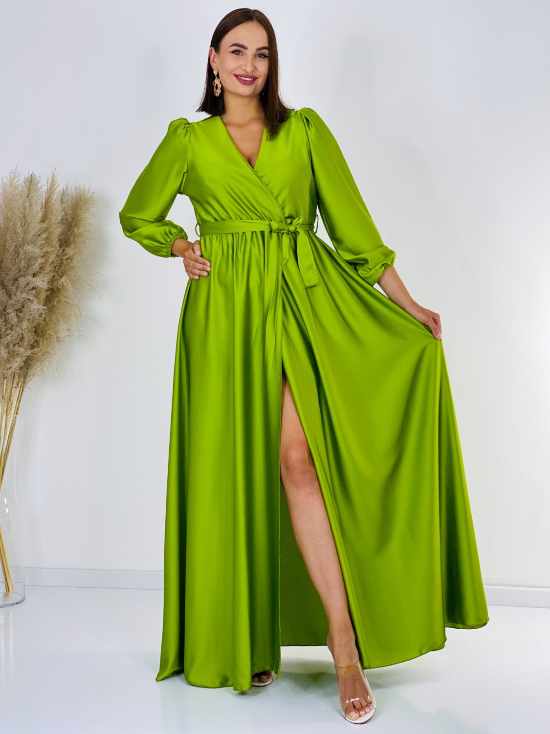 Dámske spoločenské šaty v skvelom pohodlnom saténovom prevedení. Univerzalný kúsok šiat, ktorý si môžete prispôsobiť podľa seba a šaty si uviazať podľa vlastného vkusu. Šaty sa vďaka materiálu prispôsobia ihneď Vašej postave. Veľmi luxusný kúsok z našej ponuky, ktorý očarí každú z Vás a samozrejme aj ostatných okolo Vás. Materiál, ktorý Vám dodá šmrnc. Bez zapínania s gumičkou v páse. Vhodné sú na rôzne spoločenské udalosti ako je svadba, stužková slávnosť či ples. Doplnené razporkom v prednej časti. Dlhý 62 cm rukáv. Modelka je vysoká 175 cm a má oblečenú veľkosť UNI.