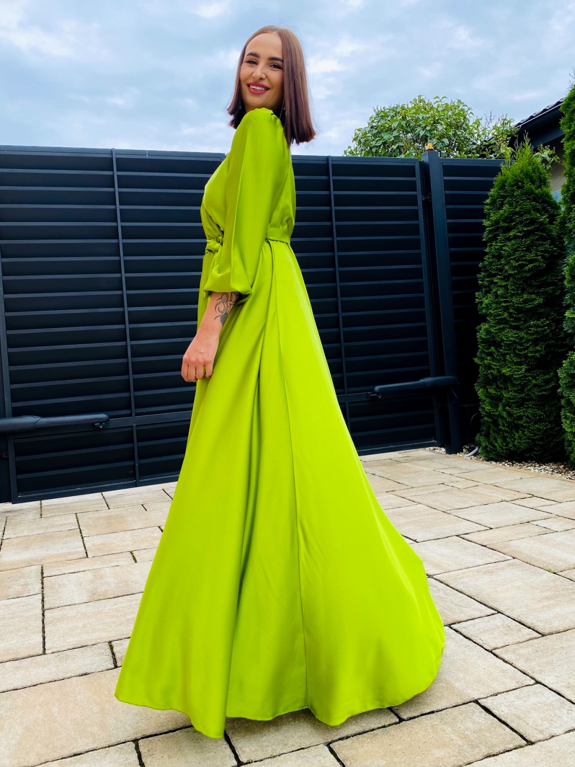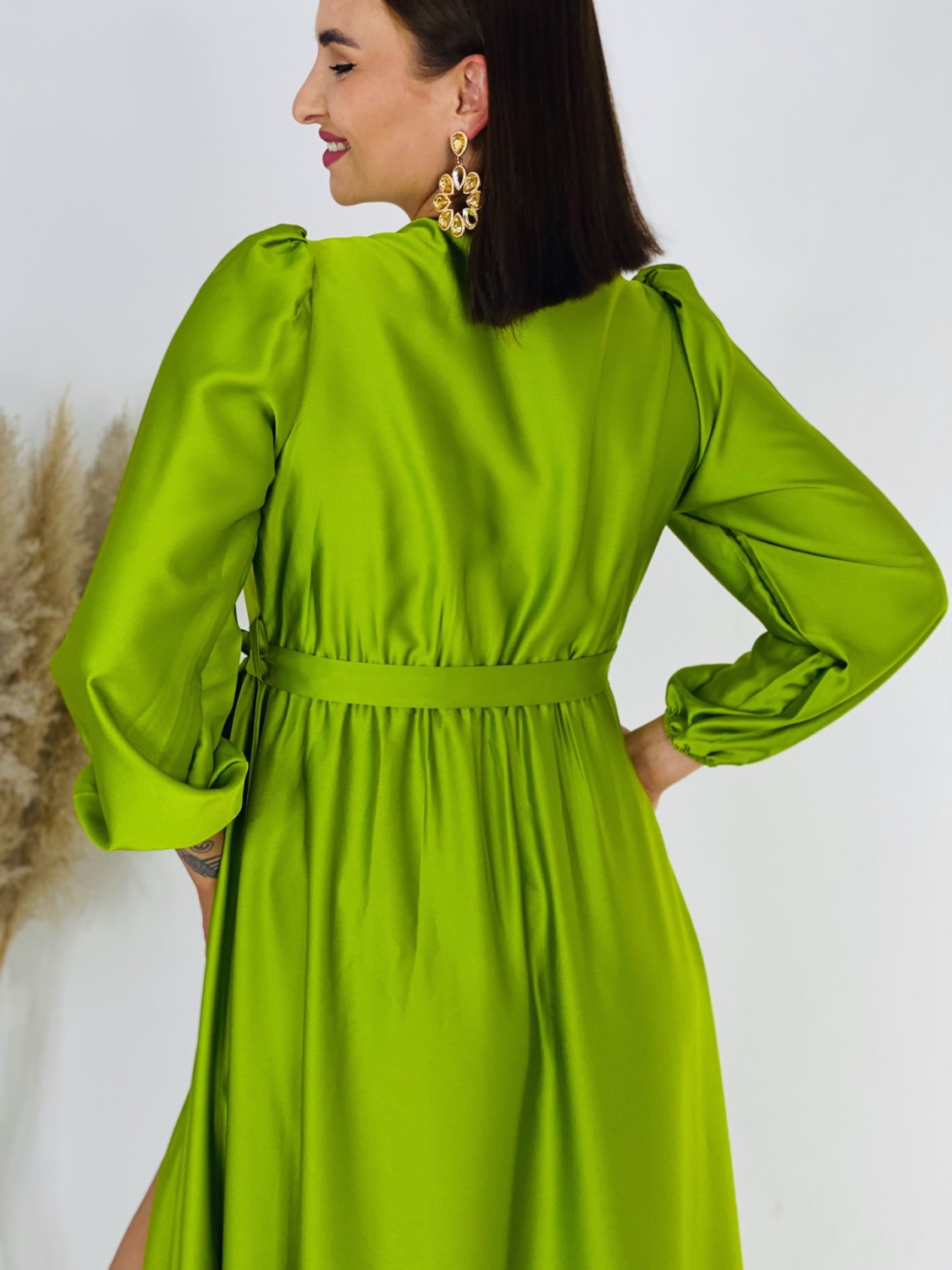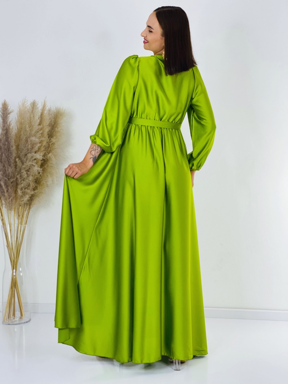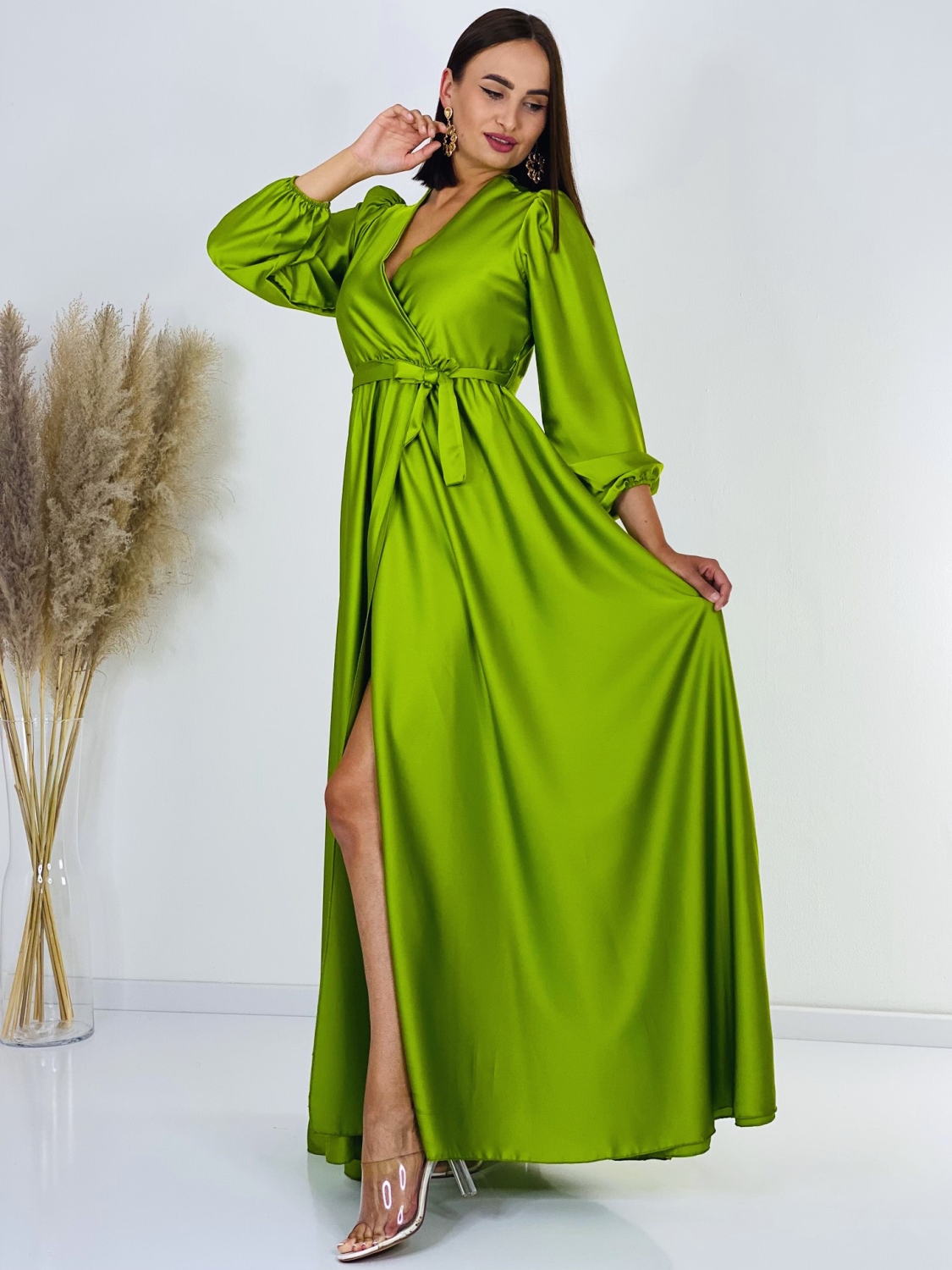Dámske spoločenské šaty v skvelom pohodlnom saténovom prevedení. Univerzalný kúsok šiat, ktorý si môžete prispôsobiť podľa seba a šaty si uviazať podľa vlastného vkusu. Šaty sa vďaka materiálu prispôsobia ihneď Vašej postave. Veľmi luxusný kúsok z našej ponuky, ktorý očarí každú z Vás a samozrejme aj ostatných okolo Vás. Materiál, ktorý Vám dodá šmrnc. Bez zapínania s gumičkou v páse. Vhodné sú na rôzne spoločenské udalosti ako je svadba, stužková slávnosť či ples. Doplnené razporkom v prednej časti. Dlhý 62 cm rukáv. Modelka je vysoká 175 cm a má oblečenú veľkosť UNI.