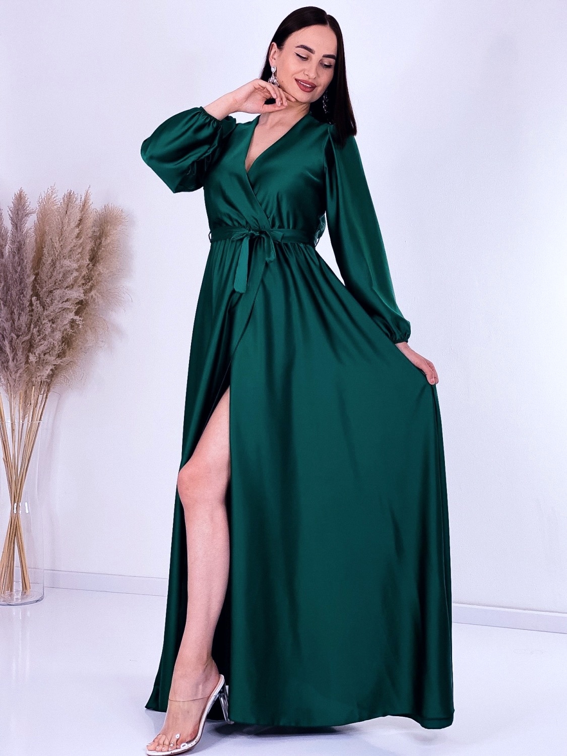 Dámske spoločenské šaty v skvelom pohodlnom saténovom prevedení. Univerzalný kúsok šiat, ktorý si môžete prispôsobiť podľa seba a šaty si uviazať podľa vlastného vkusu. Šaty sa vďaka materiálu prispôsobia ihneď Vašej postave. Veľmi luxusný kúsok z našej ponuky, ktorý očarí každú z Vás a samozrejme aj ostatných okolo Vás. Materiál, ktorý Vám dodá šmrnc. Bez zapínania s gumičkou v páse. Vhodné sú na rôzne spoločenské udalosti ako je svadba, stužková slávnosť či ples. Doplnené razporkom v prednej časti. Dlhý 62 cm rukáv. Modelka je vysoká 175 cm a má oblečenú veľkosť UNI.