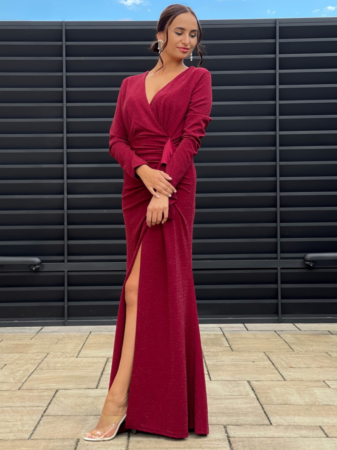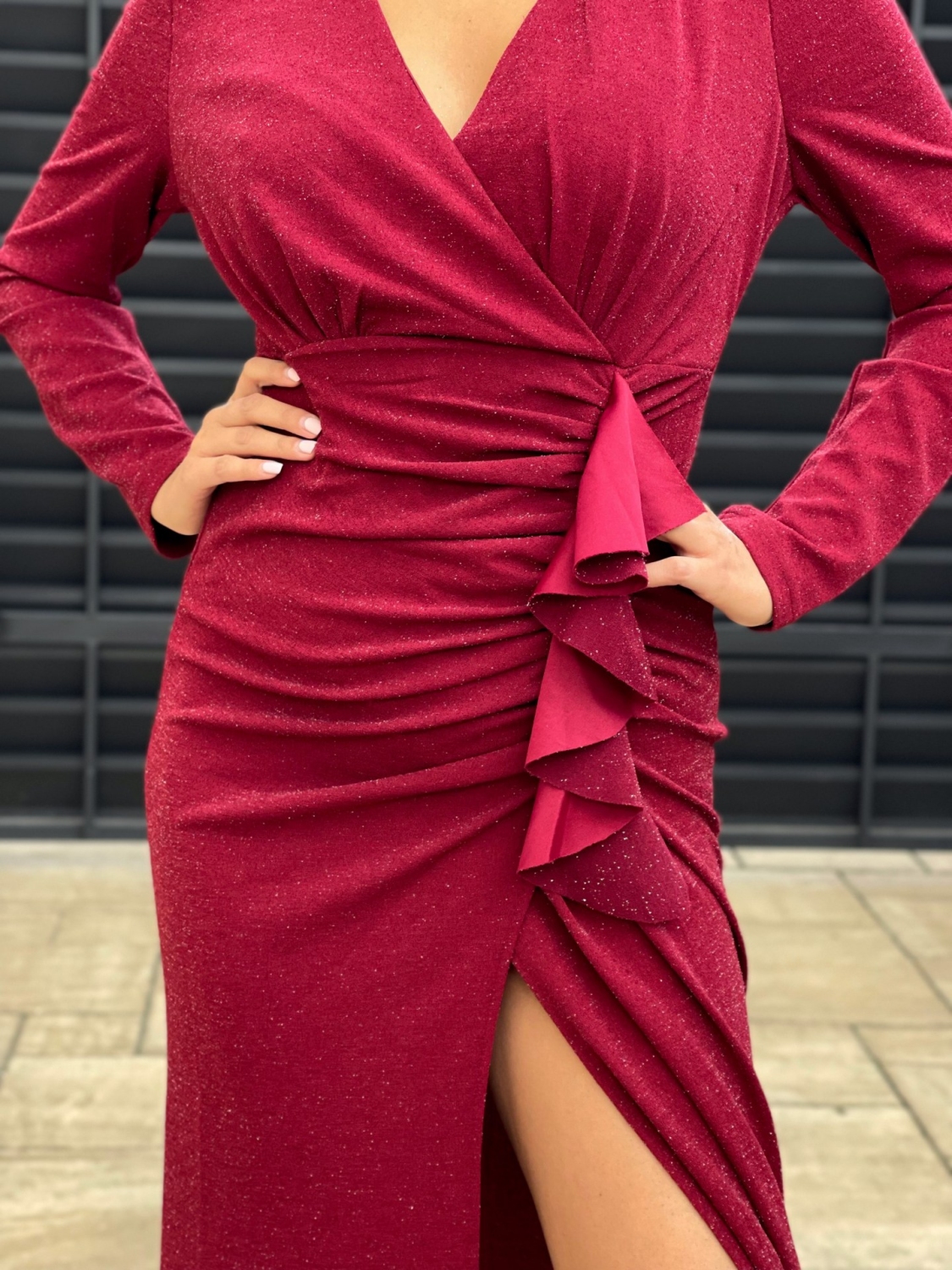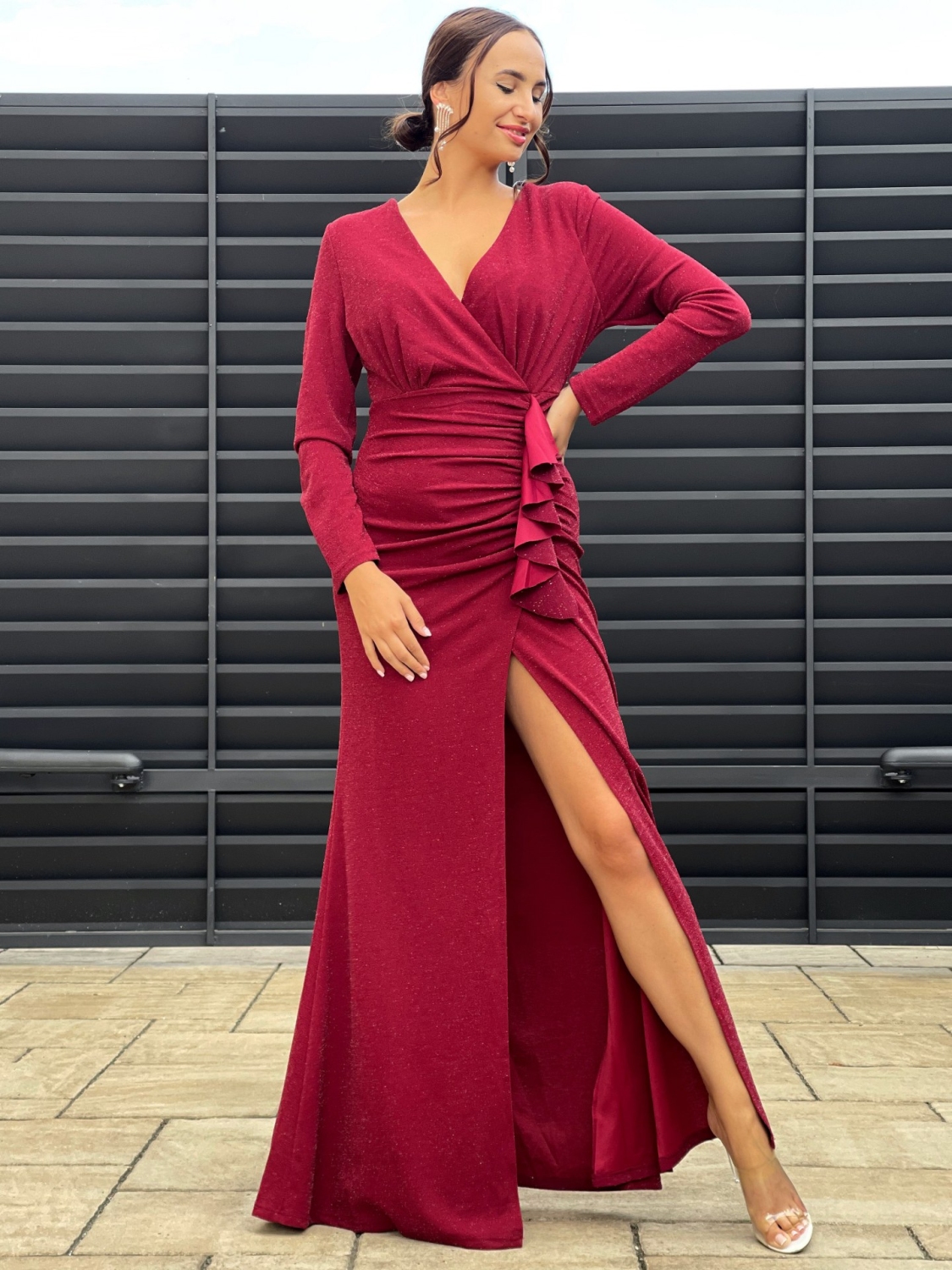 Dámska exkluzívne spoločenské šaty s volánmi a riasením pre moletky, ktoré sú v TOP prevedení. Absolútne pohodlné a veľmi luxusné na akúkoľvek spoločenskú akciu. Šaty sú vyrobené z vysoko kvalitného a pohodlného materiálu. Zapínanie vzadu na zips. Veľmi luxusný kúsok z našej ponuky, ktorý očarí každú z Vás. Vhodné sú na rôzne spoločenské udalosti ako je svadba, stužková slávnosť, či ples. Prsia nie sú vystúžené. Špeciálny a neopkovateľný model šiat pre každú dámu. Doplnené razporkom v prednej časti. Modelka je vysoká 175 cm a oblečenú má veľkosť 40.