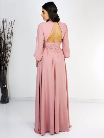 Dlhé spoločenské šaty v staroružovej farbe, v ktorých zažiari každá dáma. Veľmi luxusný kúsok z našej ponuky, ktorý očarí každú z Vás a samozrejme aj ostatných okolo Vás. Vhodné sú na rôzne spoločenské udalosti ako je svadba, stužková slávnosť, či ples. Šaty sú doplnené rukávmi a véčkovým výstrihom. Exkluzívny kúsok, ktorý by nemal chýbať žiadnej žene, ktorá má rada kvalitnú a štýlovú módu. Zapínanie šiat vzadu na zips.