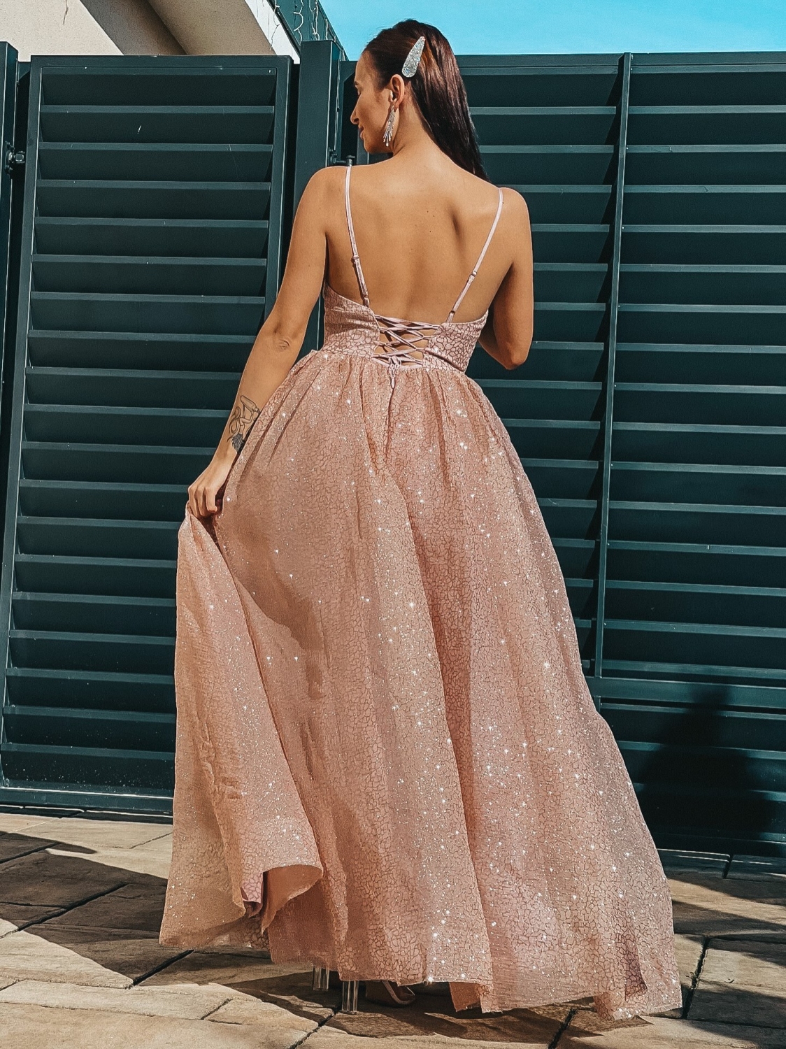 Exkluzívne dámske dlhé nádherné spoločenské šaty v trblietavom prevedení s nastavieľnými ramienkami. Do týchto šiat sa nedá nezamilovať! Veľmi luxusný kúsok z našej ponuky, ktorý očarí každú z Vás a samozrejme aj ostatných okolo Vás. Jemné trblietky zdobia celé šaty. Zapínanie vzadu na zips. Šaty majú vystúžené prsia. Nastaviteľné ramienka. Vhodné sú na rôzne spoločenské udalosti ako je svadba, stužková slávnosť či ples. Krása a luxus. limitované šaty na každú priležitosť. Vysoká kvalita. Ak stále túžite zažiariť s týmto kúsok sa Vám to ihneď podarí! Buďte okúzľujúca a zvoľte si model podľa Vaších predstáv. Kúsok šiat, ktorý budete nosiť s radosťou a nadšením.