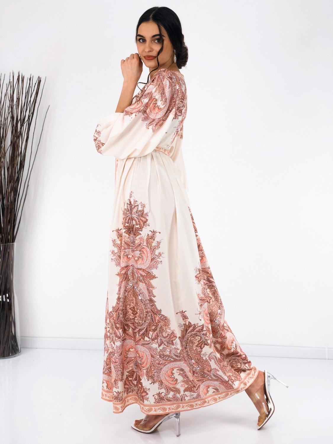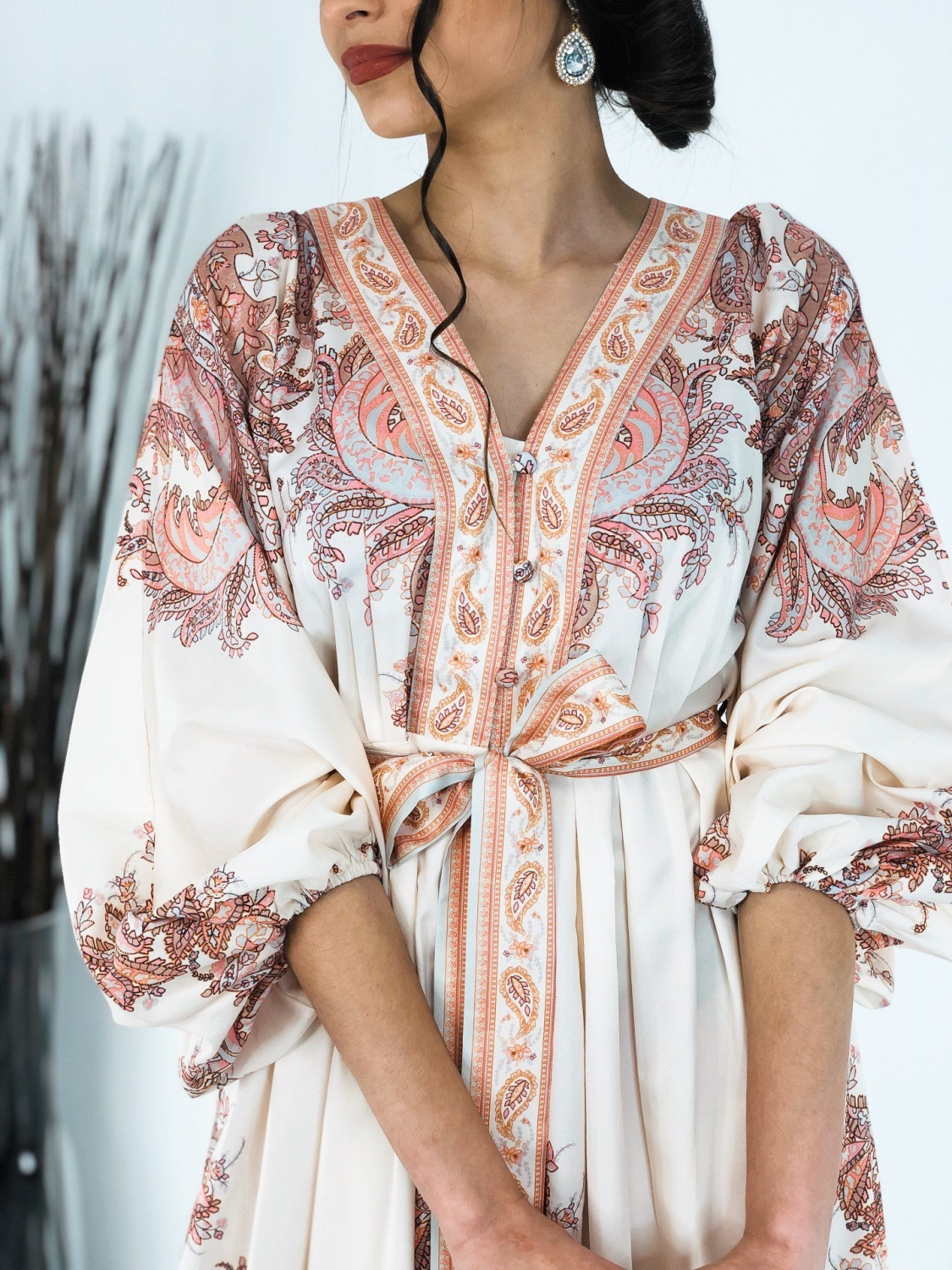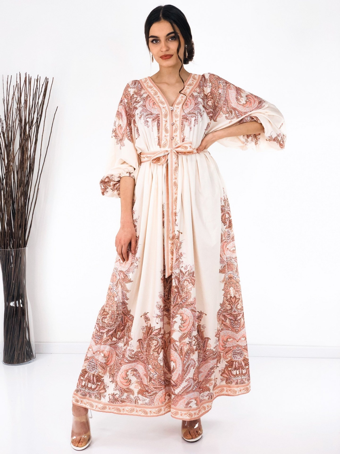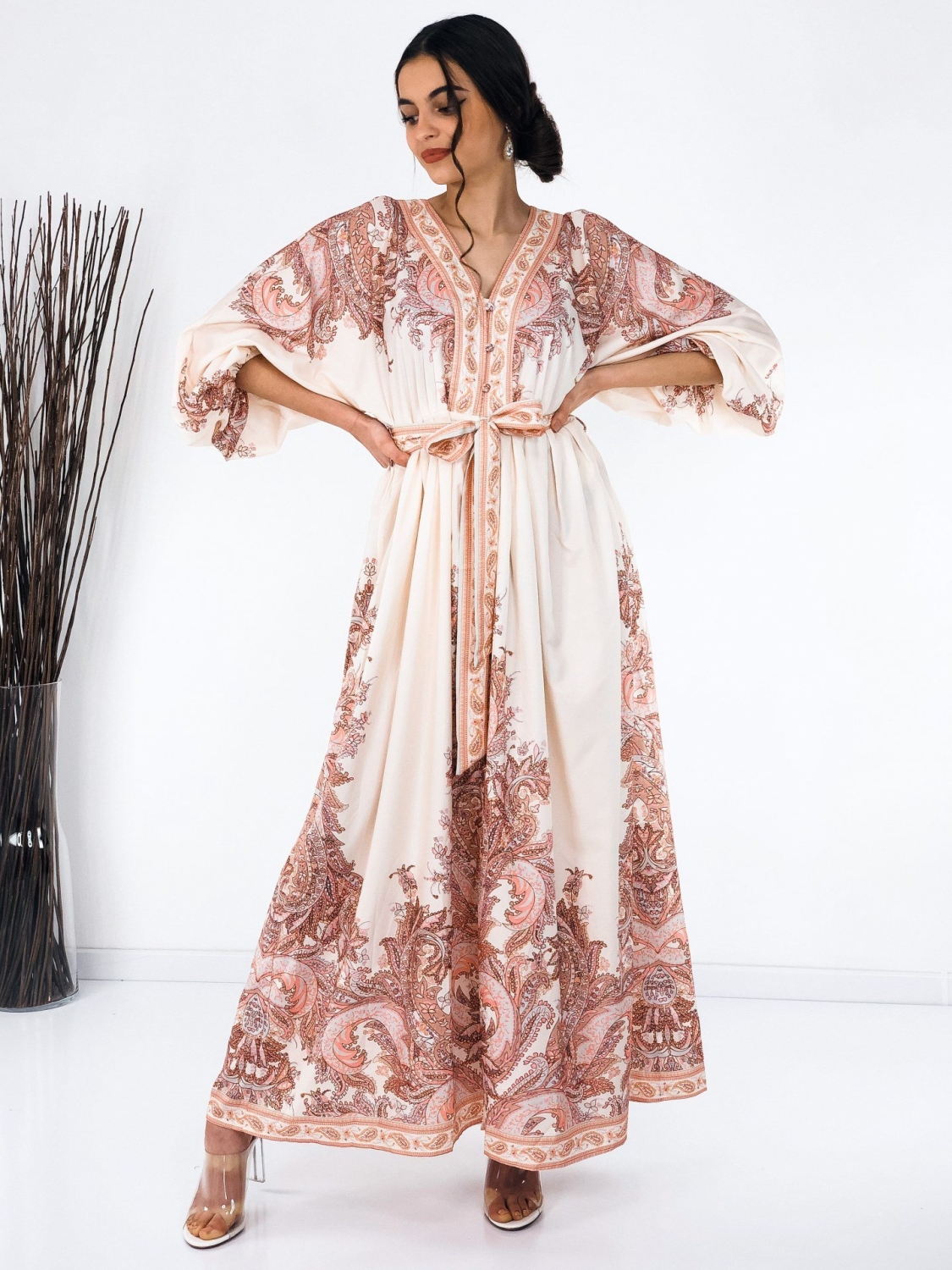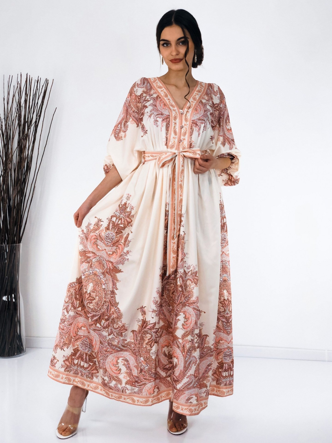 Dámske vzorované šaty, ktoré sú doplnené gombíkmi a opaskom v prednej časti šiat. Šaty sú vyrobené z veľmi kvalitného a vzdušného materiálu a pri nosení zabezpečia maximálny komfort. Sú vhodné na spločenské akcie, ale aj na bežné nosenie. Ľahko kombinovateľné. Šaty, ktoré do Vášho outfitu prinesu iskru a vykúzlia tak ihneď perfektný look. Kvalitný kúsok pre každú trendovú žienku, ktorá miluje módu a zaujímavé kúsky. V páse gumička. Ihneď sa prispôsobia Vašim krivkám a Vy budete žiariť spokojnosťou. Modelka je vysoká 175 cm a oblečenú má veľkosť S.