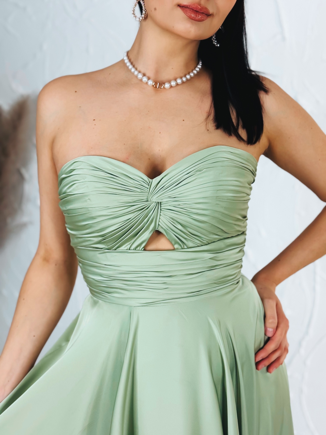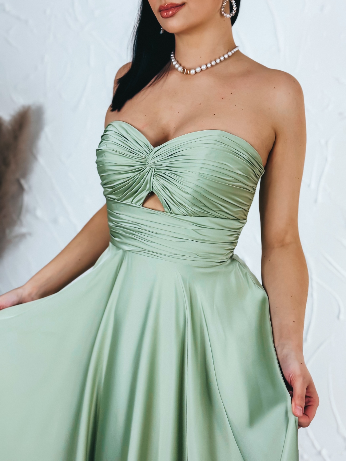 Predstavujeme elegantné dámske spoločenské dlhé šaty v nádhernej zelenej farbe, ktoré sú ideálnou voľbou na plesy, svadby, večierky či iné slávnostné príležitosti. Šaty sú vyrobené z kvalitného hrubšieho saténu, ktorý pôsobí luxusne, má krásny lesk a príjemne padne na postavu. Vďaka použitým materiálom sú šaty nielen elegantné, ale aj pohodlné na nosenie počas celého večera. Originálny dizajn šiat ponúka praktickú variabilitu – tenké ramienka je možné nosiť tradične na ramenách alebo ich úplne odopnúť a vytvoriť tak odvážnejší look bez ramienok. Dlhý strih šiat jemne splýva po postave a dodáva ženskosť a noblesu každej nositeľke. Tieto spoločenské šaty sú skvelou kombináciou pohodlia, kvality a štýlu, a určite upútajú pozornosť na každej spoločenskej udalosti. Ideálne pre ženy, ktoré chcú pôsobiť elegantne, sofistikovane a zároveň sa cítiť komfortne.