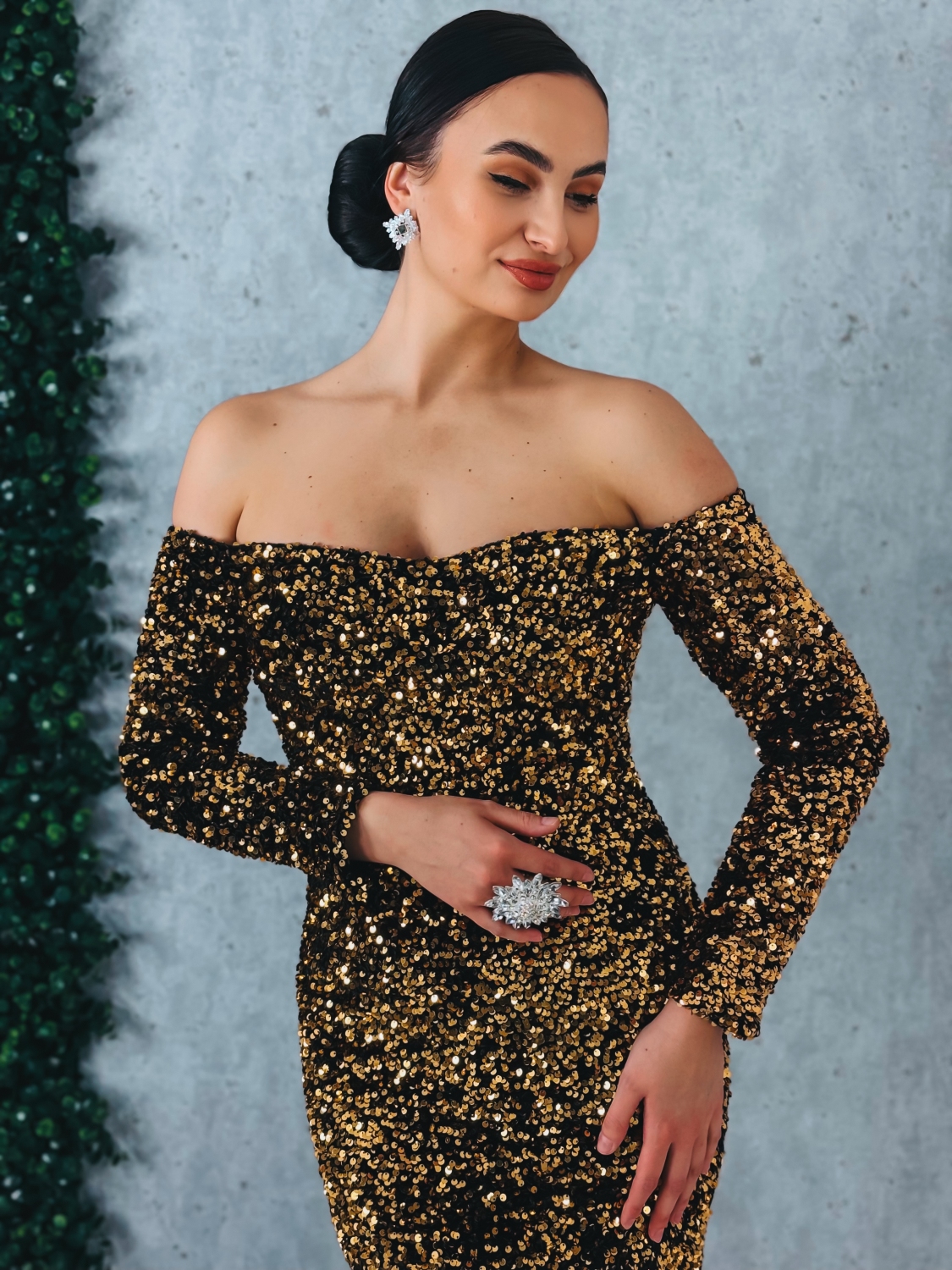 Zažiarte na každej spoločenskej udalosti v týchto luxusných dámskych dlhých spoločenských šatách s flitrami, ktoré sú ideálnou voľbou na ples, večierok, svadbu alebo galavečer. Šaty sú navrhnuté tak, aby zvýraznili ženskú siluetu a poskytli maximálny komfort počas celej noci.