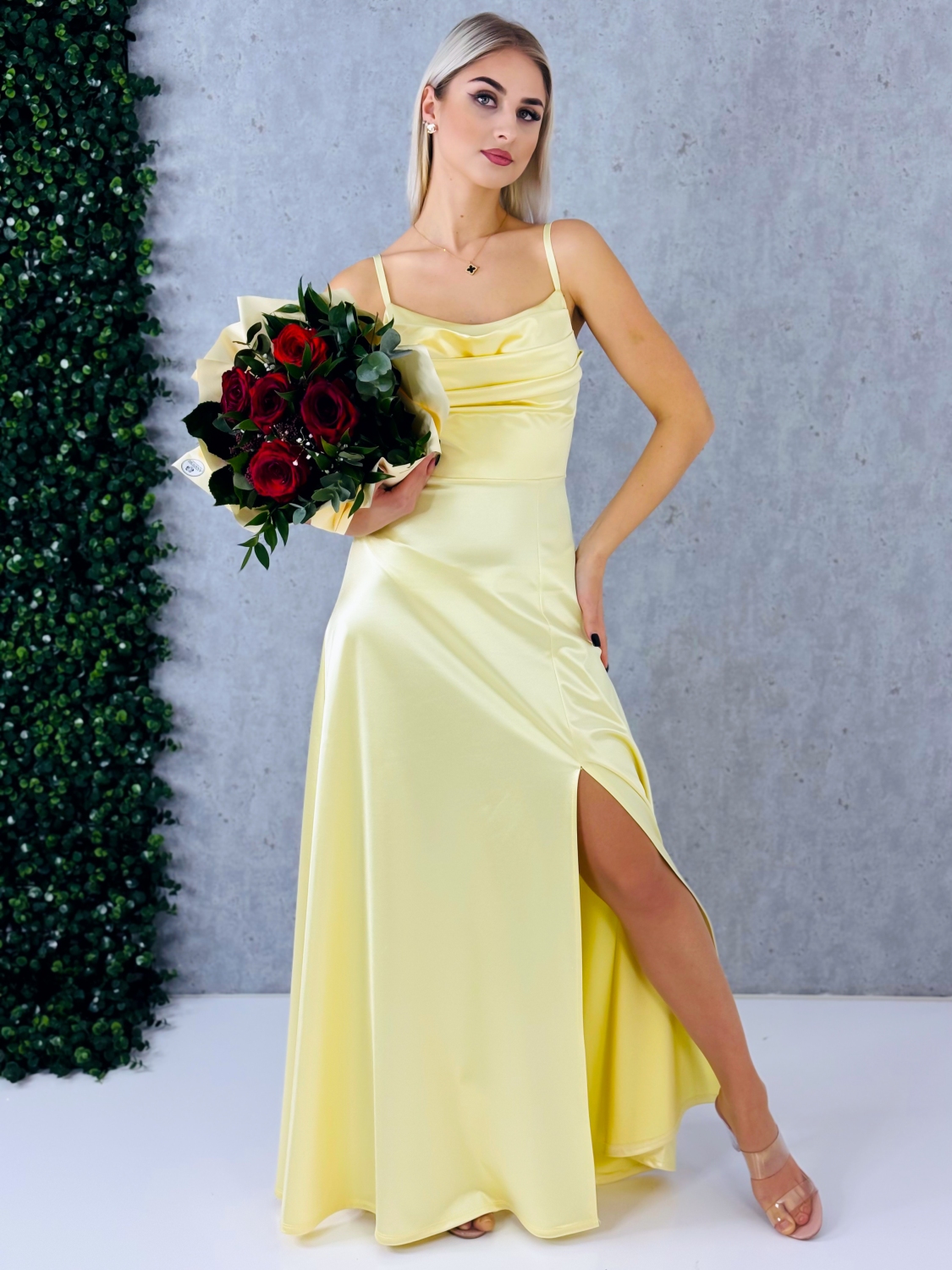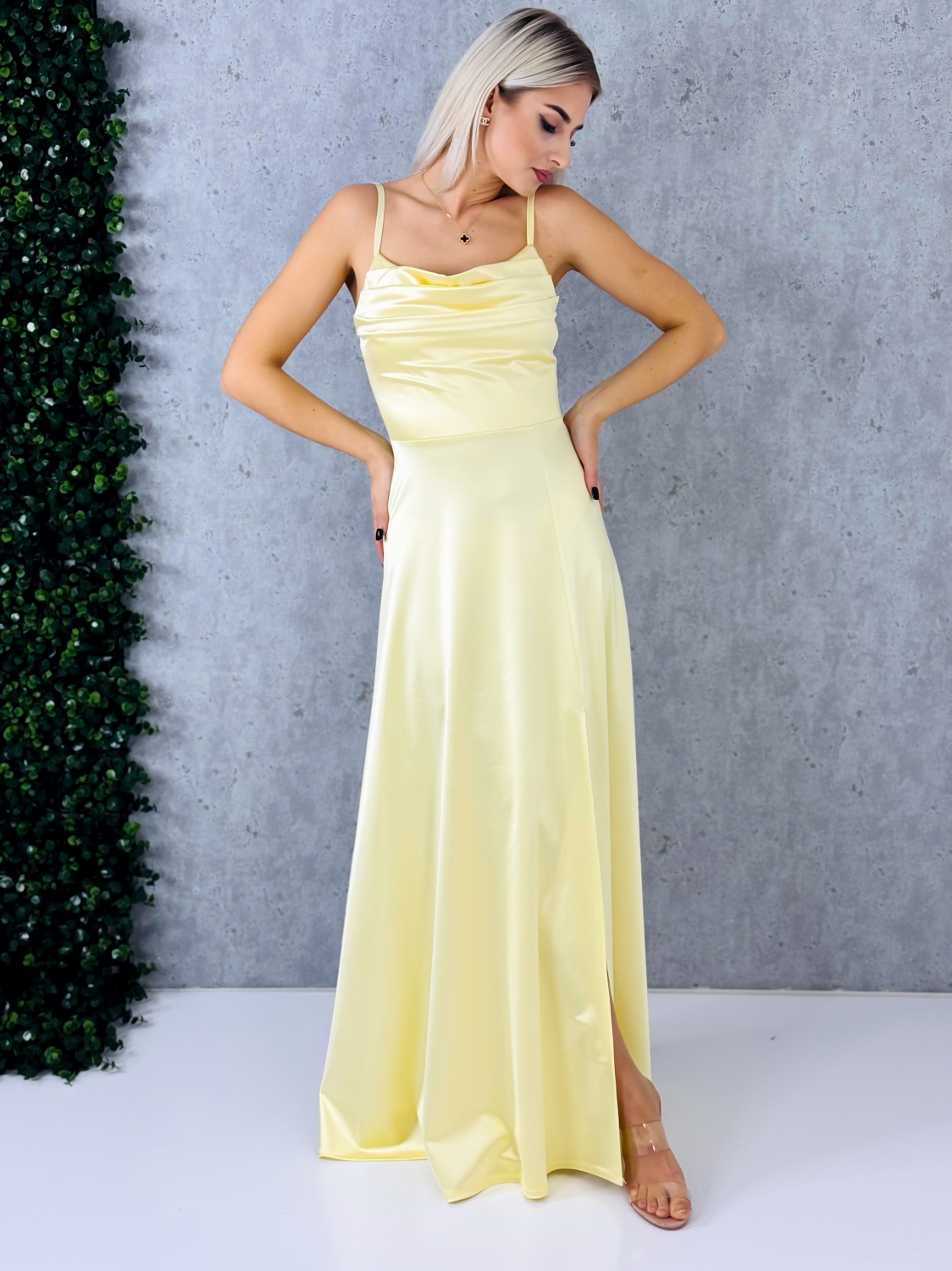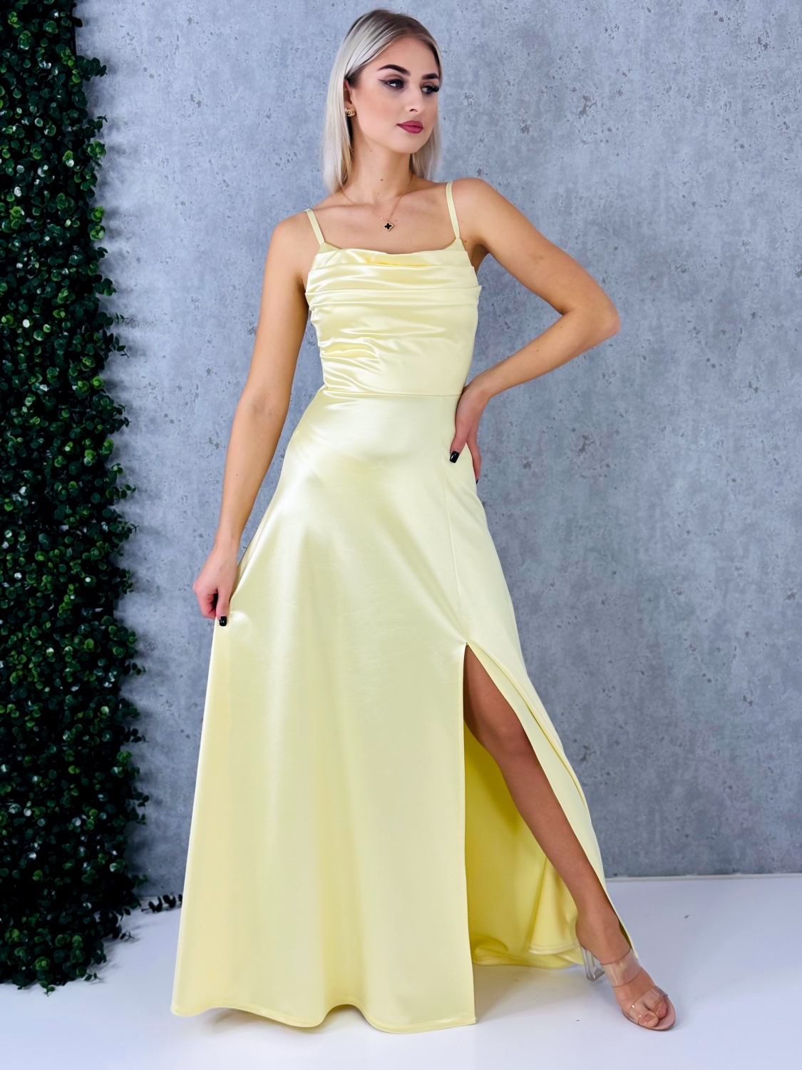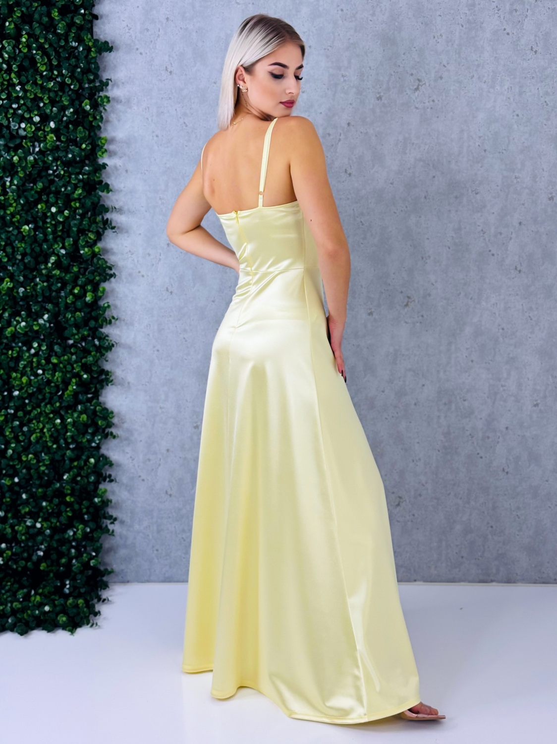 Dámske dlhé spoločenské šaty na ramienka s výrazným rázporkom predstavujú dokonalé spojenie elegancie, ženskosti a jemnej zvodnosti. Ich strih je navrhnutý tak, aby lichotil postave, zvýraznil siluetu a zároveň poskytol pohodlie počas celého večera. Úzke ramienka pôsobia jemne a sofistikovane, krásne zvýraznia líniu ramien a krku a dodávajú modelu ľahkosť. Vrchná časť šiat je priliehavá čím vytvára harmonické proporcie. Dĺžka až po zem opticky predlžuje postavu a dodáva šatám noblesný charakter vhodný na plesy, svadby, stužkové, galavečery či iné výnimočné spoločenské udalosti. Dominantným prvkom je elegantný rázporok, ktorý decentne odhaľuje nohu pri chôdzi a dodáva celkovému vzhľadu dynamiku a sebavedomie. Rázporok zároveň zabezpečuje komfort pri pohybe a tanci. Tento model je ideálnou voľbou pre ženu, ktorá chce pôsobiť elegantne, sebavedomo a zároveň žensky. Správne zvolené doplnky ako lodičky na vysokom podpätku, jemné šperky a malá spoločenská kabelka podčiarknu celkový dojem a vytvoria nezabudnuteľný outfit vhodný na výnimočnú príležitosť.
