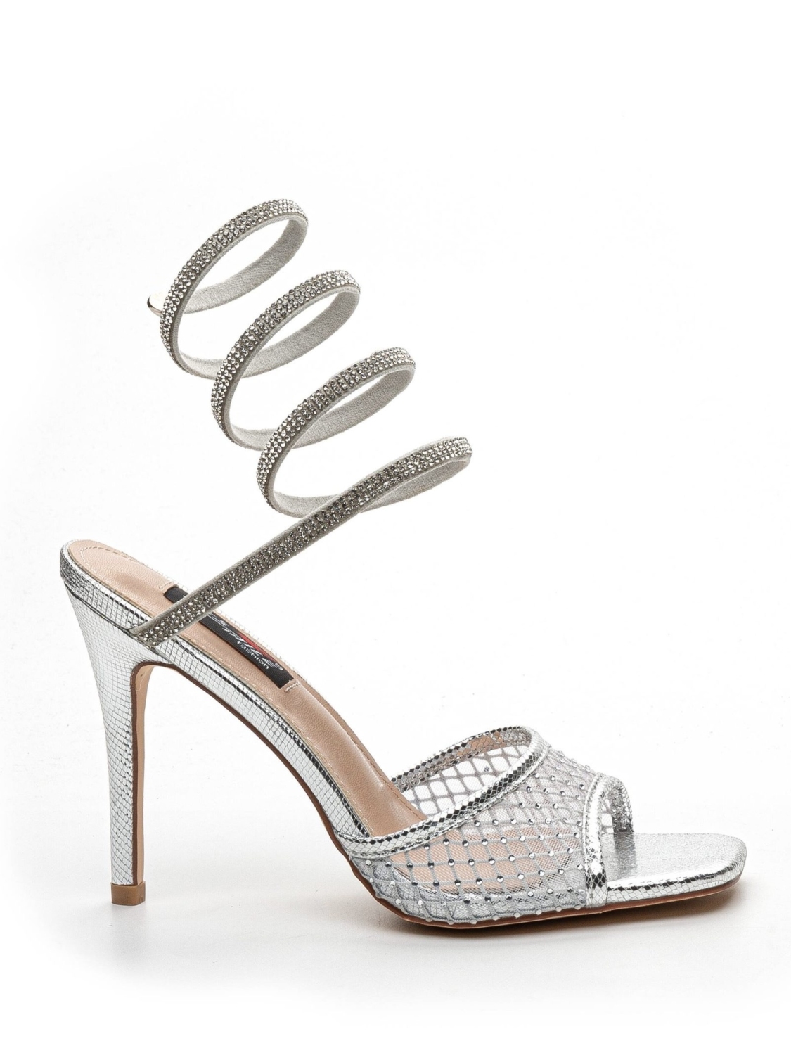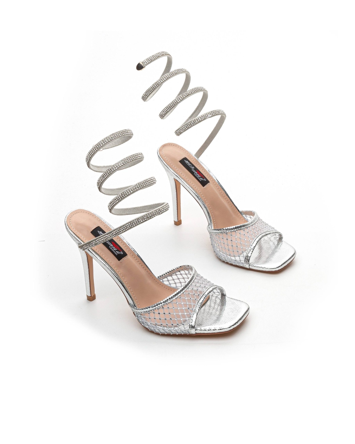 Dámske exkluzívne strieborné sandále na tenkom opätku s pevnou špirálou okolo členku predstavujú spojenie luxusu, elegancie a výrazného módneho detailu, ktorý okamžite upúta pozornosť. Tento model je navrhnutý pre ženy, ktoré milujú výnimočnosť a chcú vyniknúť pri každej príležitosti. Strieborné prevedenie dodáva sandálom prémiový vzhľad, ktorý zvýrazní opálenú pokožku aj večerný outfit. Tenký, no stabilný opätok opticky predĺži nohy a dodá postave ladnosť.
