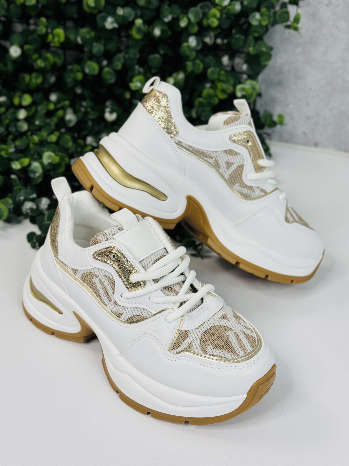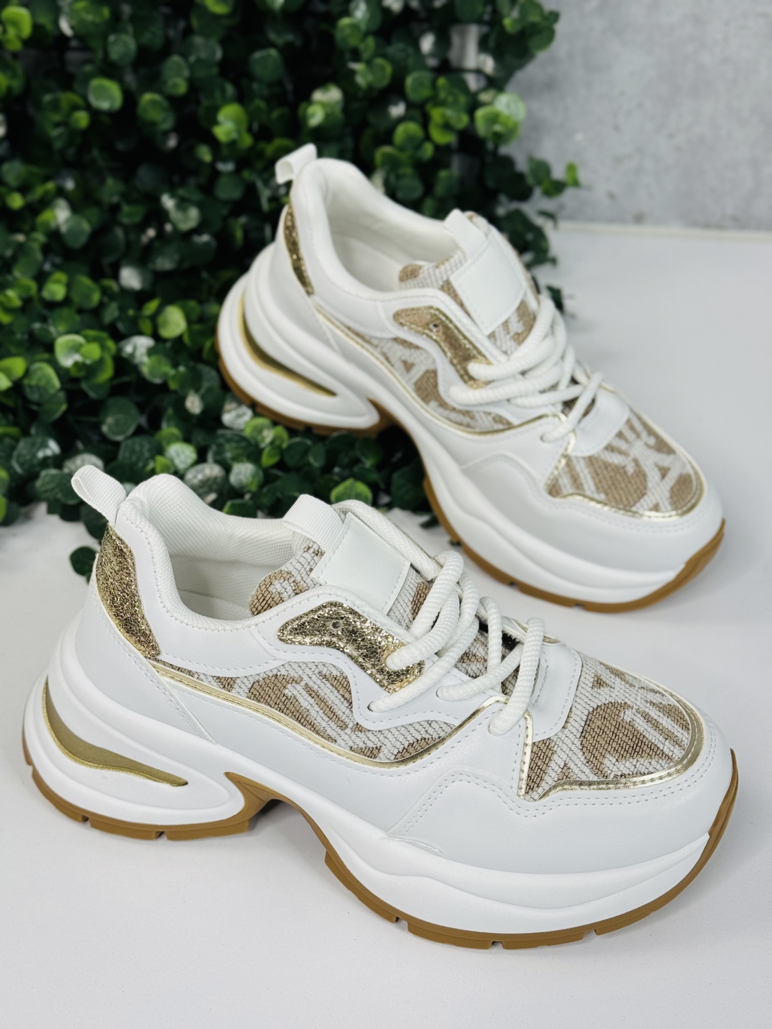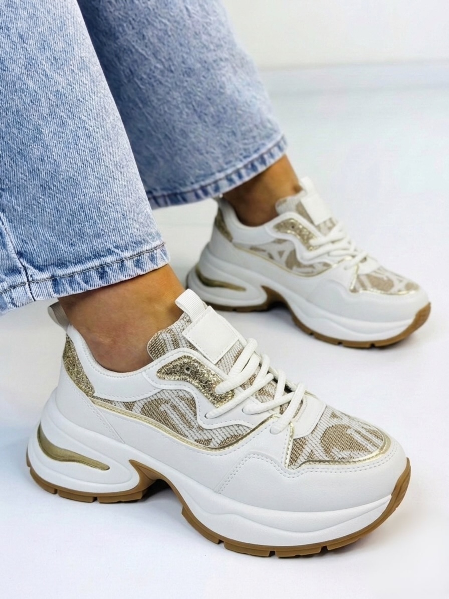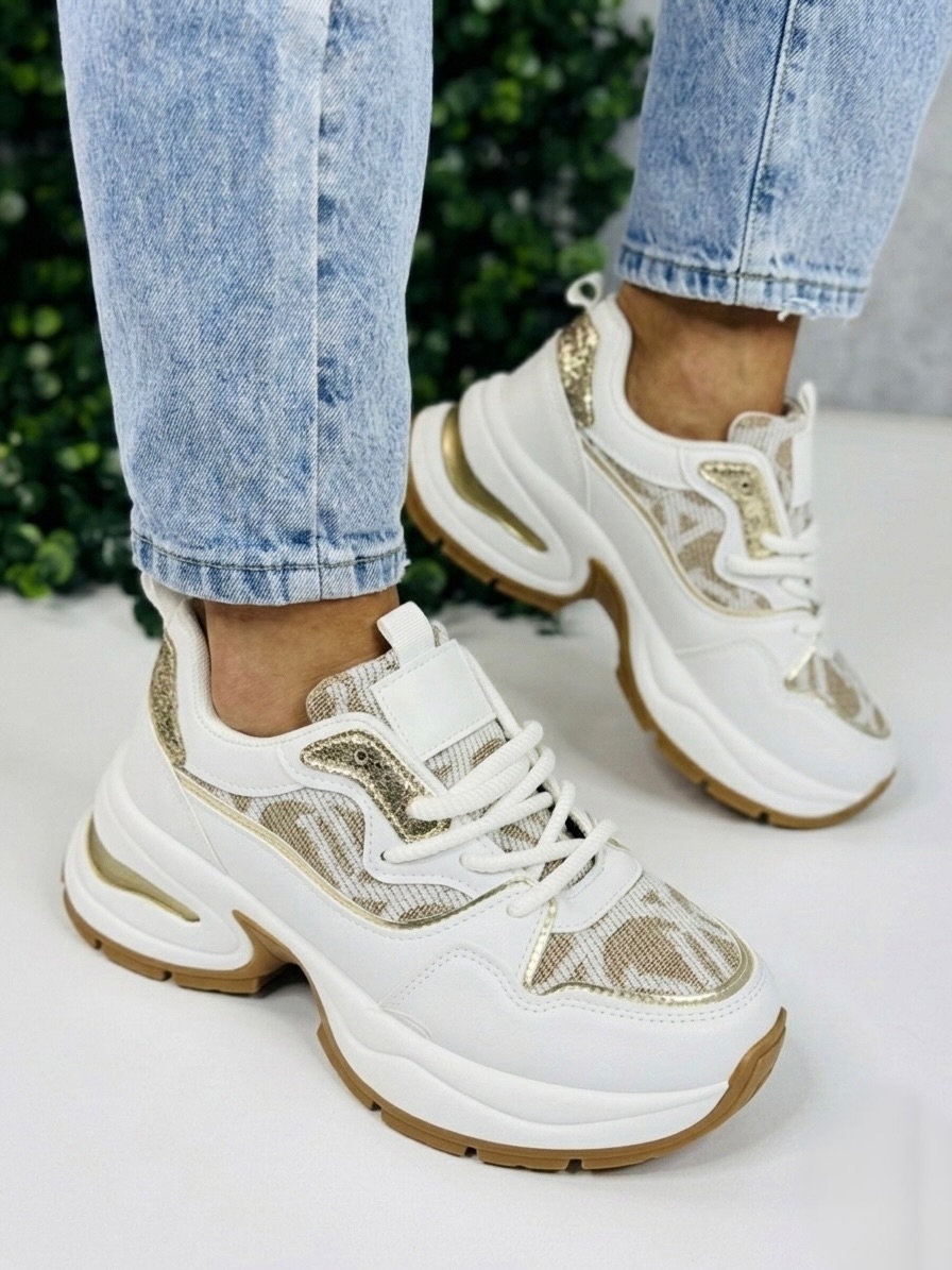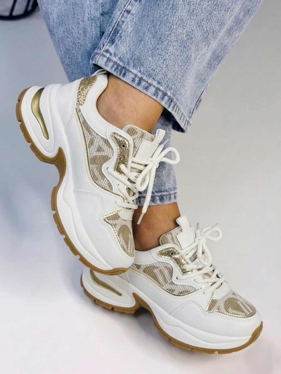 Dámske exkluzívne tenisky na vysokej platforme so zlatým lemem kombinujú luxusný dizajn s maximálnym komfortom, vďaka čomu sú ideálnym doplnkom do moderného šatníka. Zlatý lem dodáva topánkam elegantný a prémiový vzhľad, ktorý okamžite upúta pozornosť a dodá outfitu šmrnc.