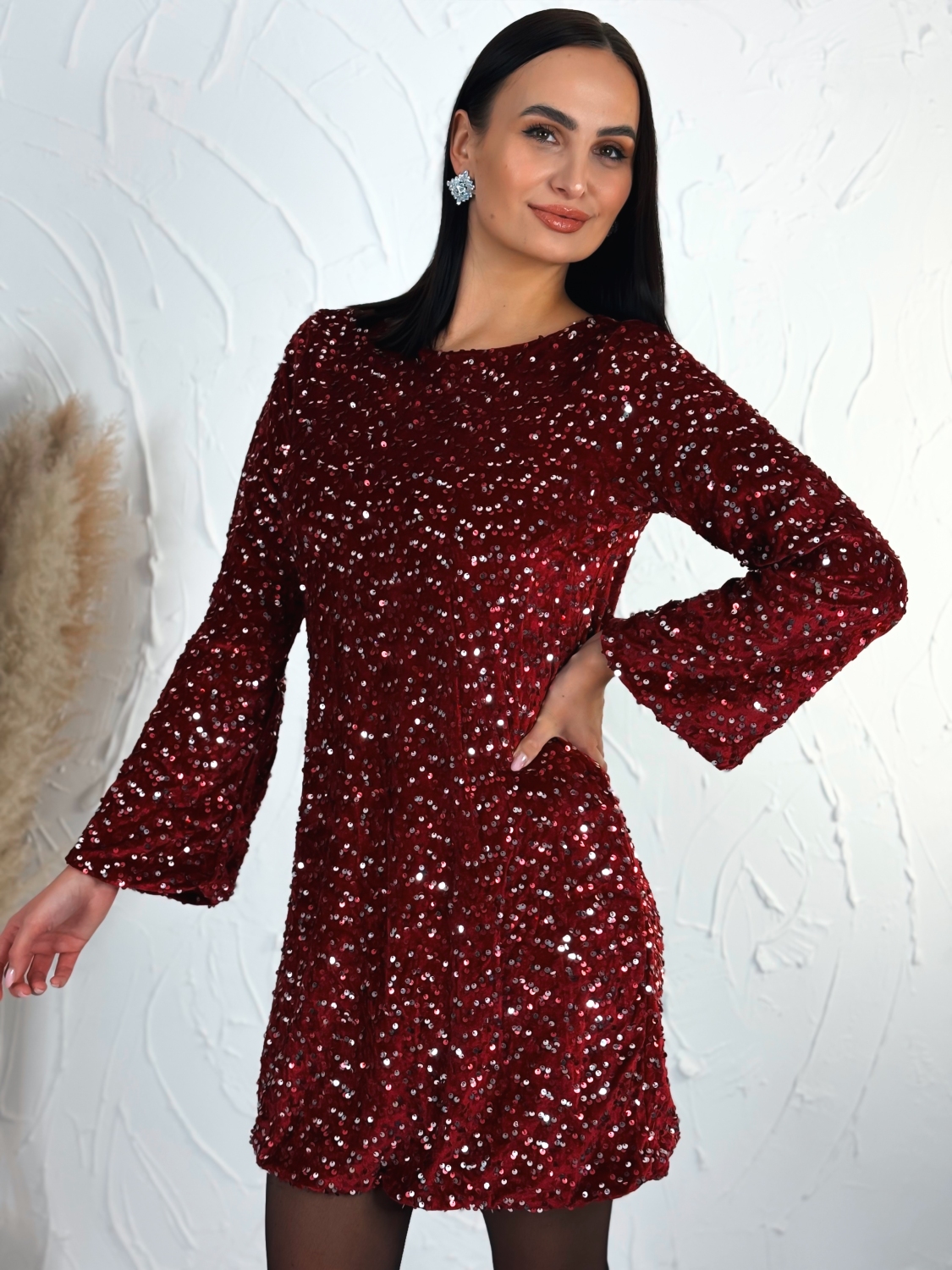 Zažiarte v štýlových dámskych flitrovaných bordových šatách, ktoré sú dokonalým spojením elegancie a pohodlia. Tieto šaty v univerzálnej veľkosti sú navrhnuté tak, aby vyhovovali rôznym typom postavy, pričom zabezpečujú dokonalý komfort pri nosení. Šaty sú ozdobené luxusnými flitrami, ktoré vytvárajú očarujúci lesk a zaručene upútajú pozornosť na každej spoločenskej udalosti, večierku či oslave. Ich nadčasový dizajn je vhodný na rôzne príležitosti. Vďaka svojmu lichotivému strihu zvýraznia Vaše krivky a dodajú Vám sebavedomie. Sú vyrobené z jemného materiálu, ktorý je príjemný na pokožke. Flitry sú pevne prichytené, takže sa nemusíte obávať ich opadávania. Dámske šaty sú univerzálnej veľkosti, ideálne pre ženy s konfekčným číslom od S po L (presné rozmery nižšie). Elastická tkanina sa prispôsobí postave a zaisťuje pohodlné nosenie počas celého večera. Šaty sú ideálne na oslavy, romantické večery alebo iné špeciálne príležitosti. Stačí ich doplniť obľúbenými lodičkami a decentnými šperkami pre dokonalý vzhľad. Modelka je vysoká 175 cm a oblečenú má veľkosť UNI.