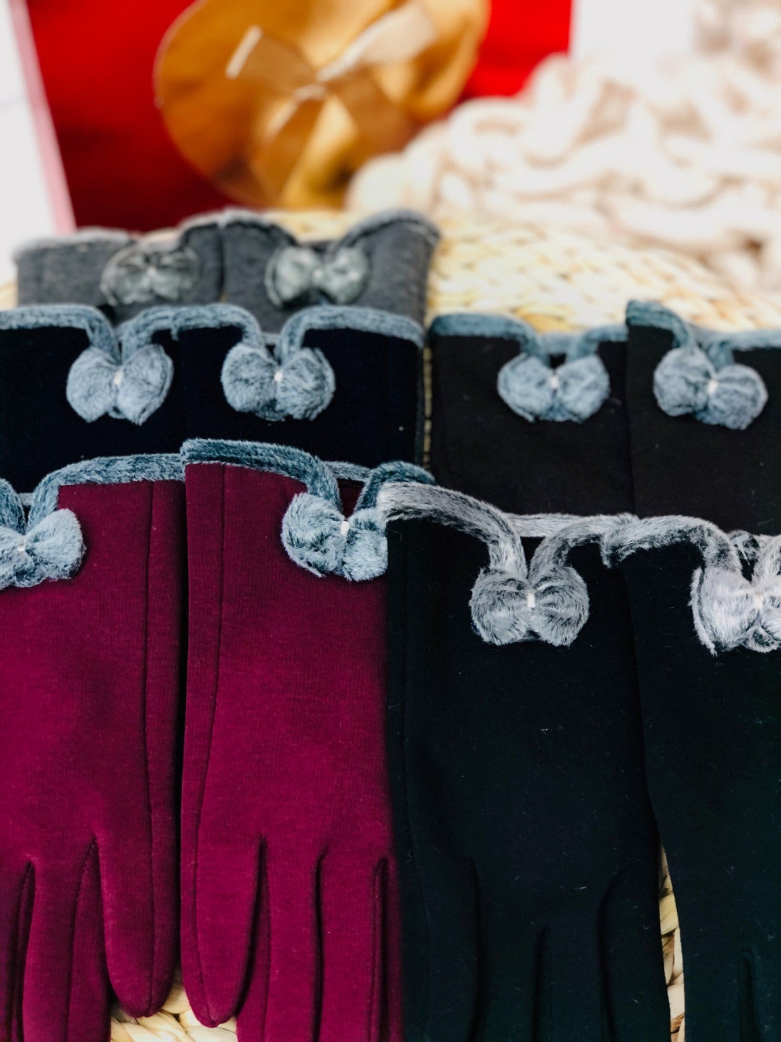 Dámske rukavice s mašľou v hnedej farbe, ktoré sú zateplené z vnútra. Rukavice majú na ukazováku špeciálny materiál, ktorý umožňuje ovládanie dotykového displeja. Jemný a kvalitný materiál.