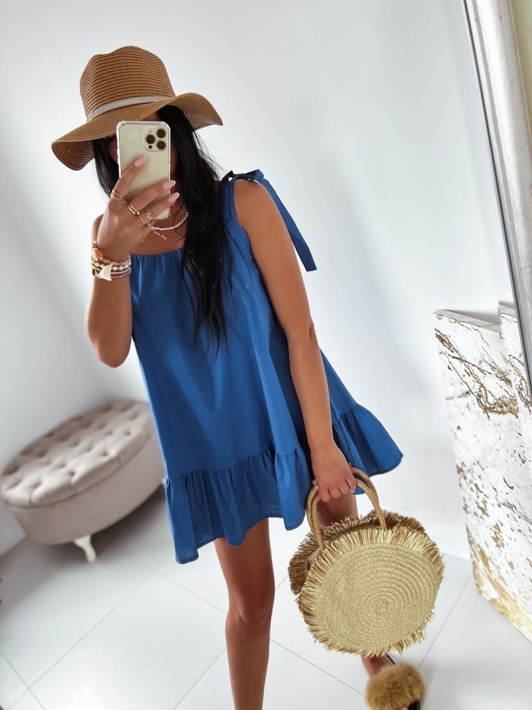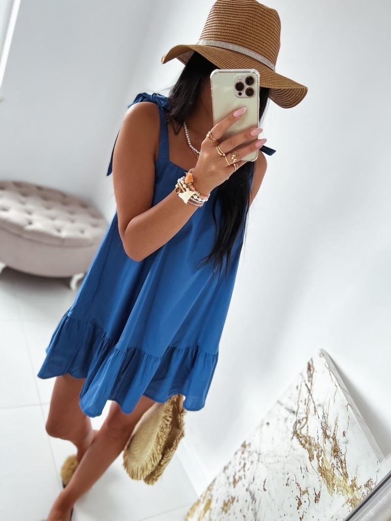 Dámske krátke letné šaty s viazním na ramenách, ktoré sú v TOP prevedení. Šaty, ktoré sú vyrobené z kvalitného pevného materiálu. Strih šiat Vám dodá šmrnc. Šaty skvelo padnú každej z Vás. Kombinujte ich s teniskami a rifľovou bundou. Šaty, ktoré sa postarajú o Váš komfort. Jednoduché, ale oto viac štýlové. Modelka je vysoká 175 cm a oblečenú má veľkosť UNI.