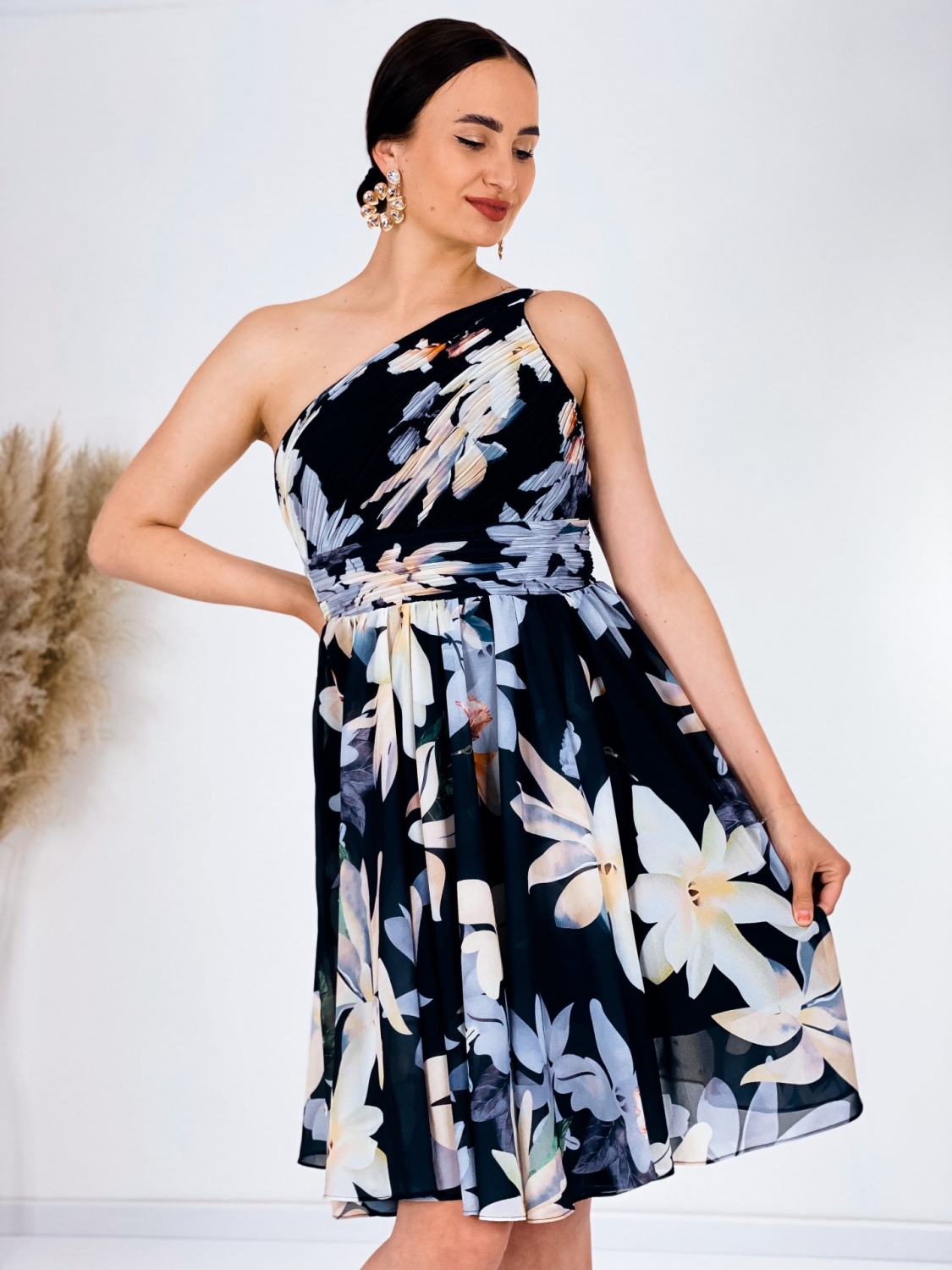 Dámska exkluzívne áčkové spoločenské šaty s kvetovanou potlačou, ktoré sú v TOP prevedení. Absolútne pohodlné a veľmi luxusné na akúkoľvek spoločenskú akciu. Šaty sú vyrobené z vysoko kvalitného a pohodlného materiálu. Bez zapínania a vzadu s gumičkou. Veľmi luxusný kúsok z našej ponuky, ktorý očarí každú z Vás. Vhodné sú na rôzne spoločenské udalosti ako je svadba, stužková slávnosť, či ples. Prsia sú vystúžené. Špeciálny a neopkovateľný model šiat pre každú dámu. Dĺžka nad kolená. Modelka je vysoká 175 cm a oblečenú má veľkosť M.