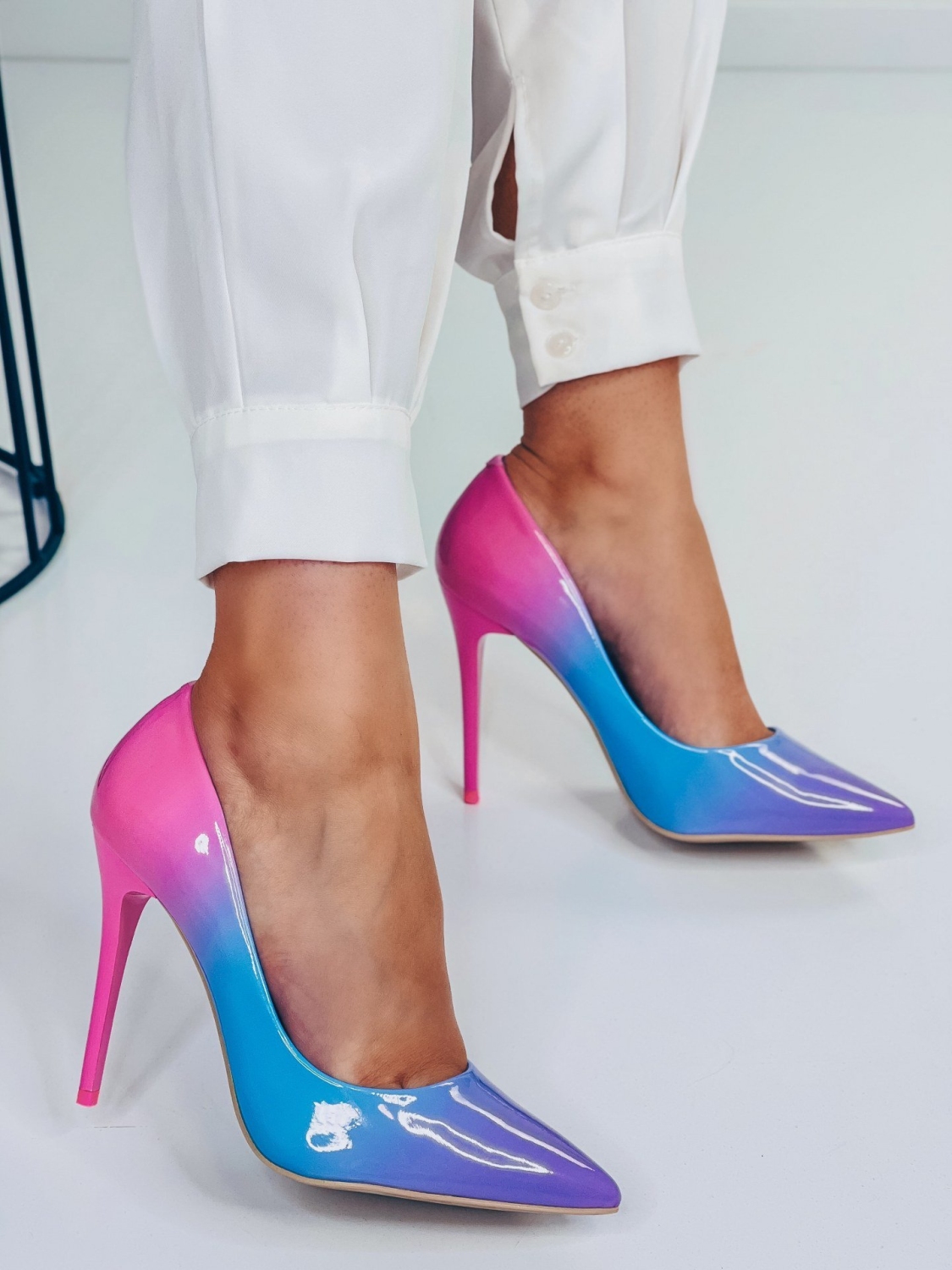 Dámske exkluzívne lakované ombre modré lodičky s 10 cm opätkom, ktoré sú v lesklom prevedení po celej svojej dĺžke. Kvalitný a neopakovateľný kúsok. Môžete si ich oliecť na akúkoľvek spoločenskú udalosť. Svadba, ples, večierok či iné významné udalosti vo Vašom živote. Elegatný model s perfektným nádychom rozžiaria každý Váš krok ! Lodičky majú elegantný ihlový podpätok. Tieto spoločenské topánky sa vám budú hodiť.