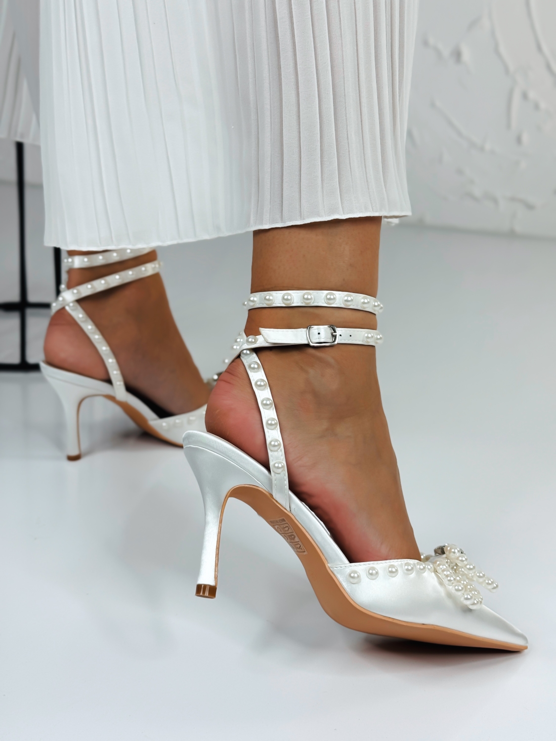 Tieto dámske luxusné sandále s perlami a výraznou mašľou vpredu sú zosobnením jemnosti, štýlu a výnimočného vkusu. Každý detail bol vytvorený s dôrazom na dokonalosť – od precízne usadených perál až po rafinovaný dizajn, ktorý pôsobí noblesne a žensky. Mašľa v prednej časti dodáva modelu romantický charakter a vytvára z týchto sandálov neprehliadnuteľný doplnok, ktorý zaujme na prvý pohľad. Ich elegantná silueta a kvalitné spracovanie zaručujú pohodlie aj počas dlhších chvíľ – ideálne na svadbu, oslavu či výnimočný večer. Sú to sandále, ktoré podčiarknu krásu šiat, zvýraznia ženskosť a dodajú každému kroku jemný dotyk luxusu. Vhodné pre nevesty, družičky, ale aj pre ženy, ktoré chcú vyniknúť pri akejkoľvek spoločenskej príležitosti.