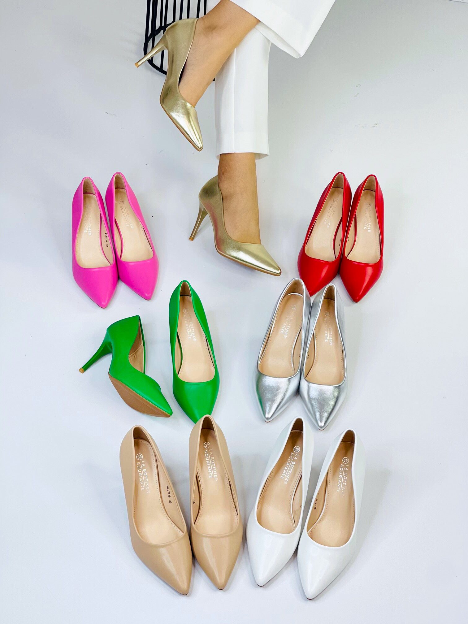 Dámske lodičky v TOP farbe na nízkom 9 cm tenkom opätku. Sklon je perfektný, takže sú veľmi pohodlné. Tieto lodičky predstavujú eleganciu a pohodlie, jednoducho všetko v jednom. Kvalitný kúsok, ktorým oživíte a rozžiarite úplne všetko. Môžete si ich obuť do mesta na kávu, práce alebo kľudne aj na spoločenskú udalosť. Jednoducho žiarivý, štýlový a nikdy nestarnúci kúsok, ktorý musíte mať. Veľkosti sedia presne.