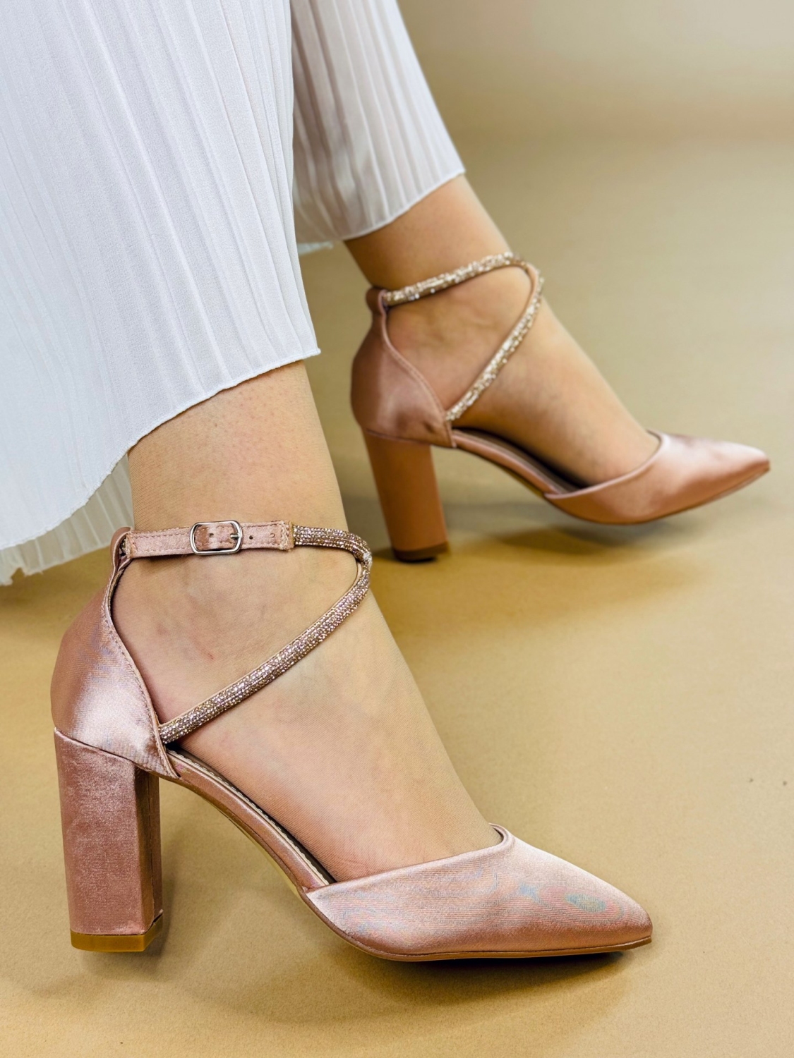 Dámske medené pohodlné sandále na hrubom 8,5 cm hrubom opätku, ktoré sa zapínajú okolo členku. Trblietavé prevedenie remienka vyzerá veľmi exkluzívne. Vďaka hrubému opätku sa Vám bude perfektne chodiť kamkoľvek pôjdete. Sú pohodlné a vkusné. Zladíte k šatám na spoločenskú udalosť ako je svadba, stužková slávnosť, či oslava. Sandále, ktoré predstavujú štýl. Veľkosti sedia presne.
