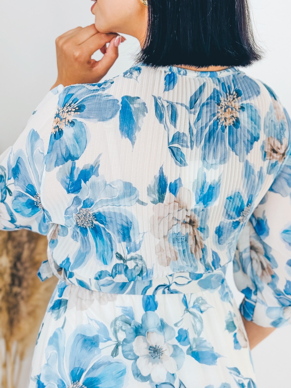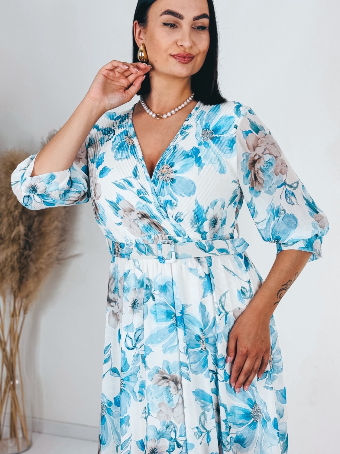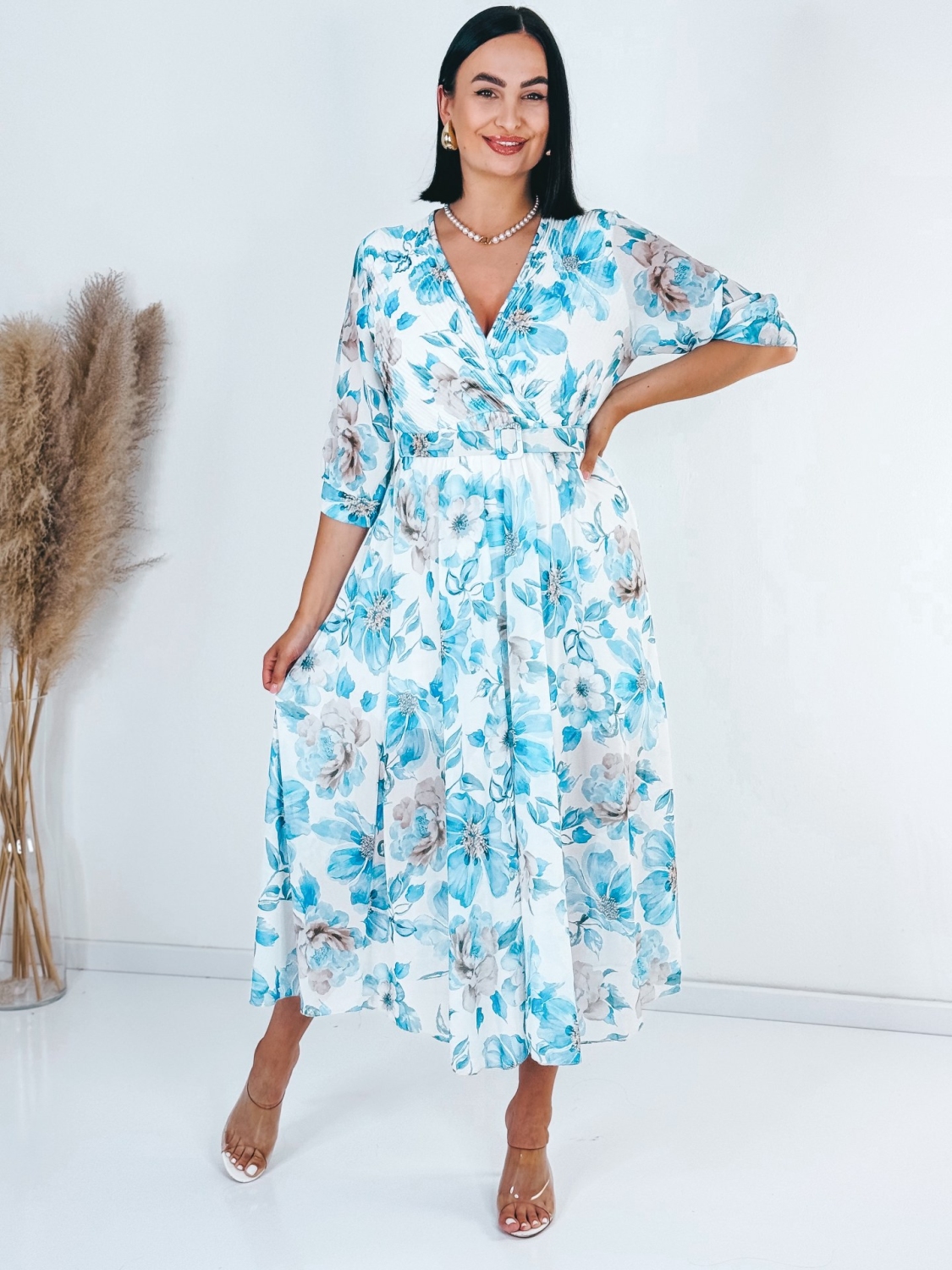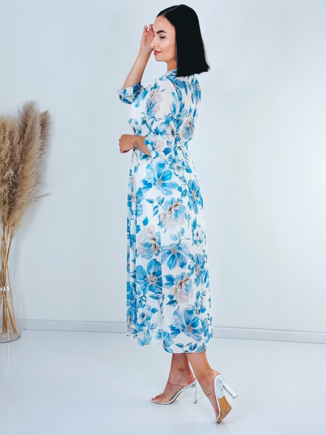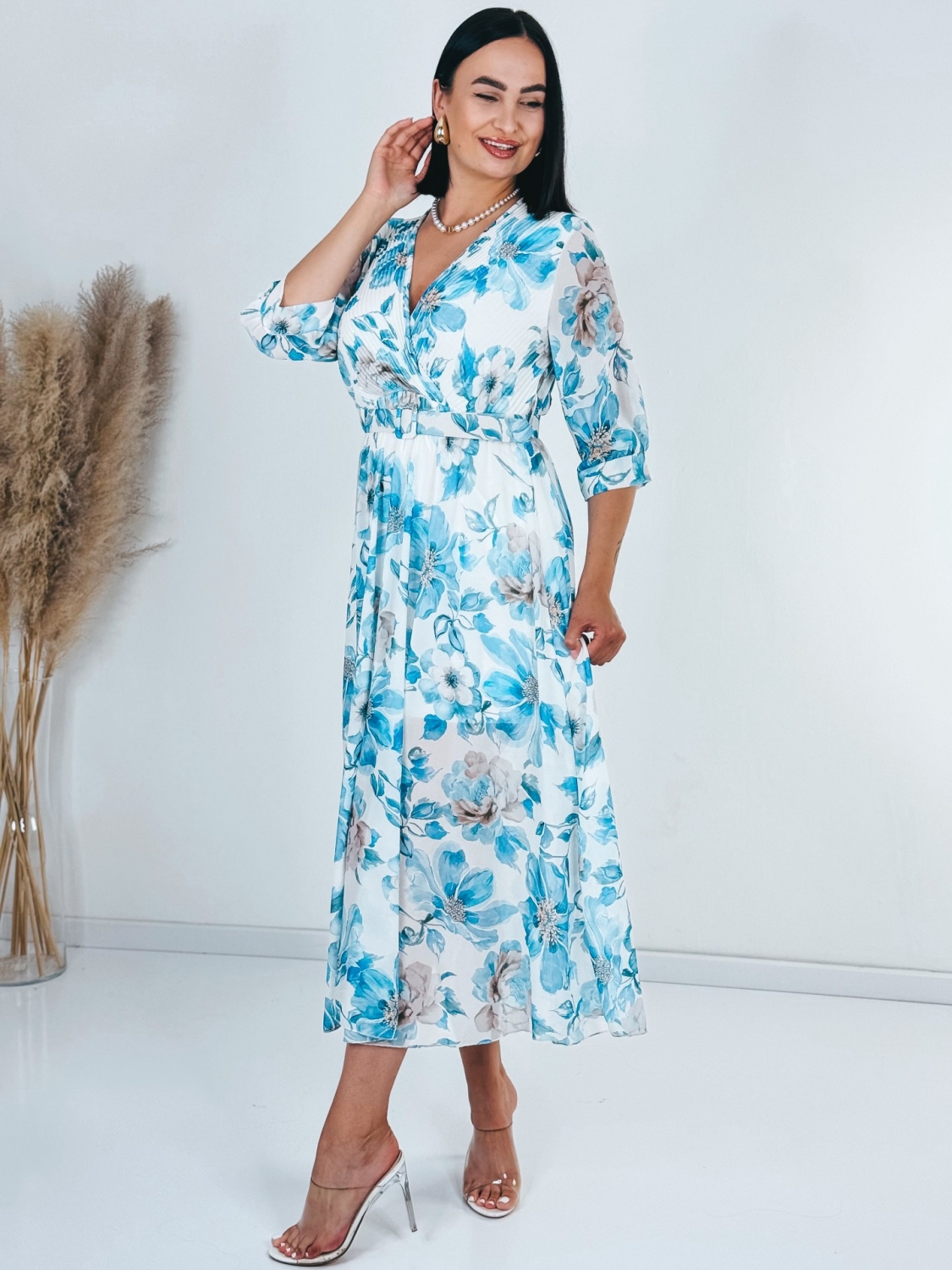 Dámske midi šaty s kvetovanou potlačou a gumičkou v páse, ktoré sú doplnené aj opaskom. Šaty sú vyrobené z príjemného a padavého materiálu. Tento model využijete napríklad aj na oslavy, ale aj na dlhé, letné, večerné prechádzky. Využijete ich na akúkoľvek príležitosť. Šaty sú bez zapínania a sú doplnené opaskom vo farbe šiat. Vďaka opasku si šaty rýchlo prispôsobite podľa seba. Prispôsobia sa viacerým typom postáv a veľkostiam od XS po L. Pôsobia pôvabne a sviežo. Modelka je vysoká 175 cm a má oblečenú veľkosť UNI.