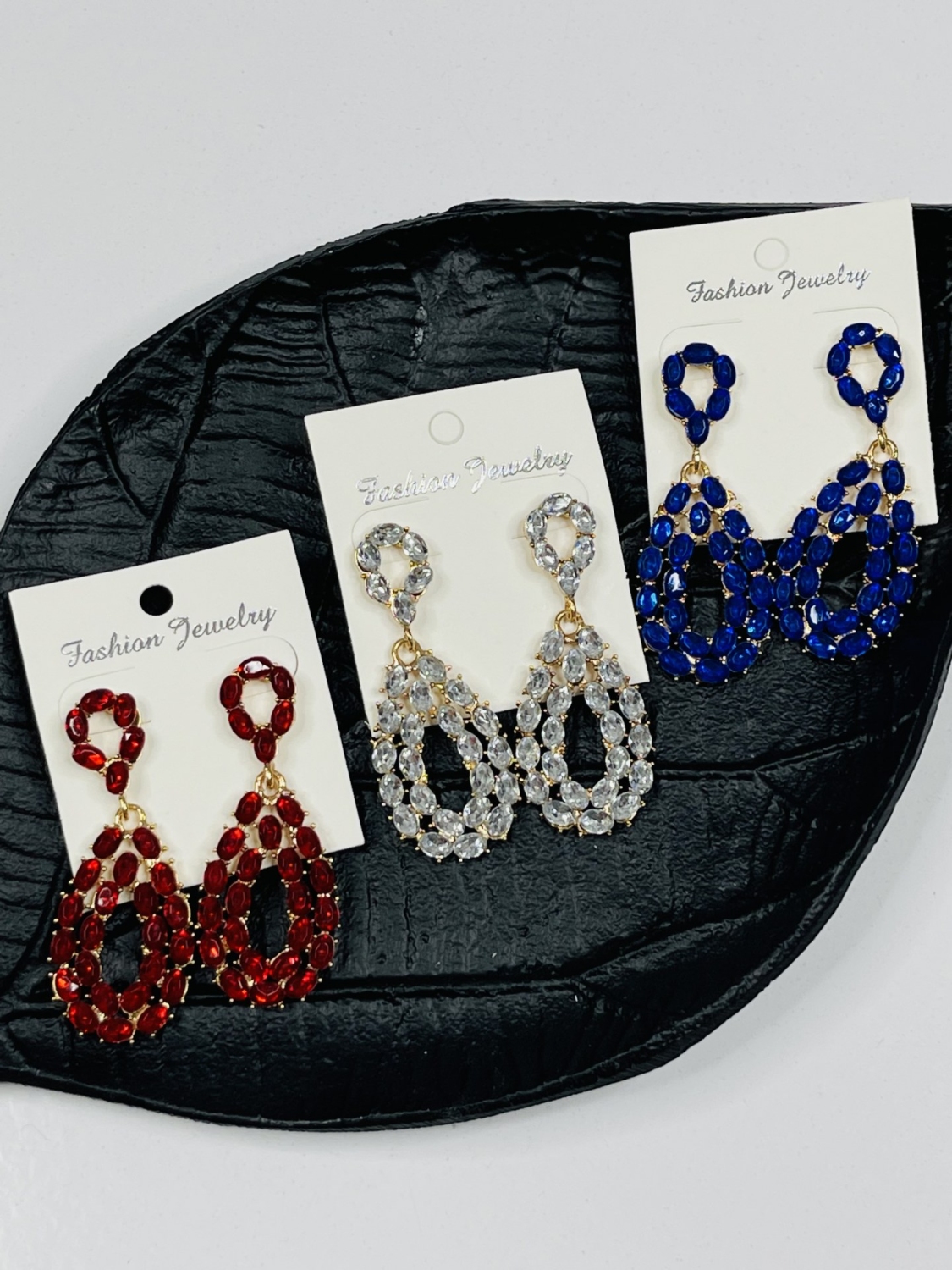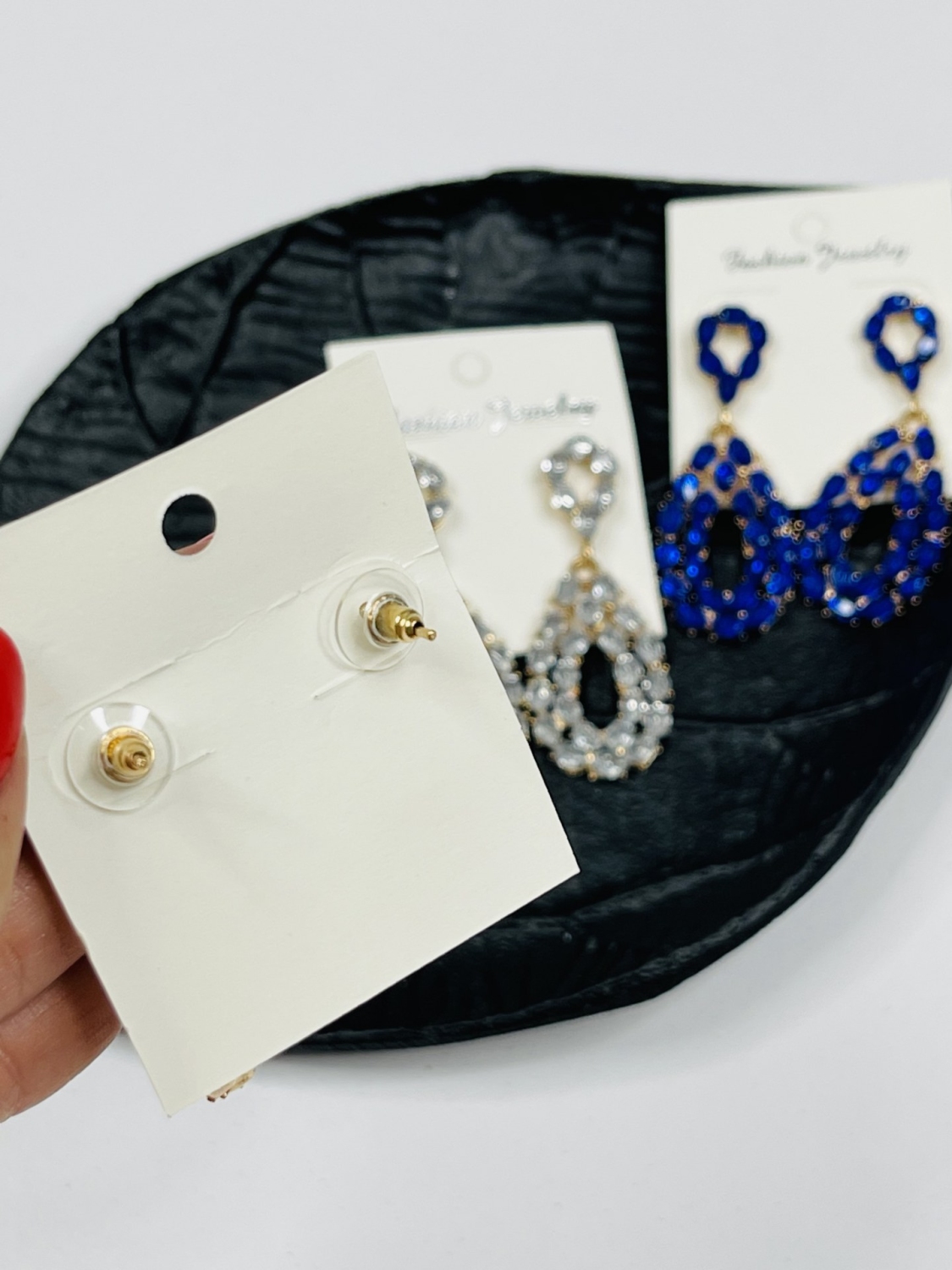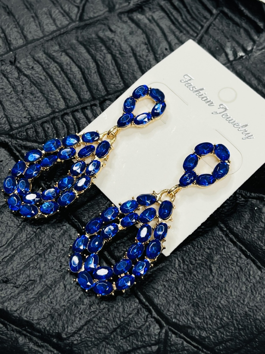 Dámske náušnice s ozdobnými kameňmi. Majú zlatý podklad. Vkusný dizajn. Veľmi elegantný kúsok z našej kolekcie.