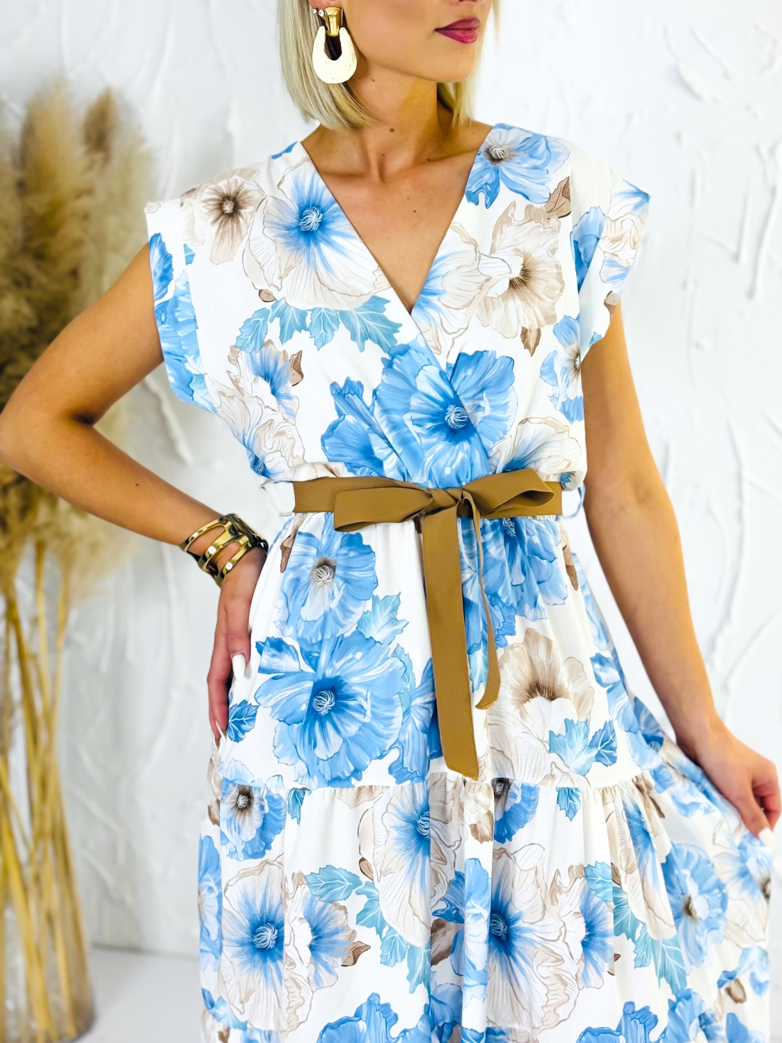 Dámske kvetované šaty áčkového strihu s hnedým opaskom a véčkovým výstrihom sú ideálnou voľbou na letné dni, dovolenky aj chvíle oddychu, keď sa chceš cítiť pohodlne a zároveň vyzerať štýlovo. Ich ženský dizajn spája ľahkosť, sviežosť a praktickosť v jednom kúsku, ktorý si rýchlo obľúbiš. Áčkový strih je obľúbený pre svoju schopnosť krásne lichotiť rôznym typom postavy. Jemne zvýrazní hornú časť siluety a voľne splýva smerom nadol, čím poskytuje pohodlie pri pohybe a príjemný pocit počas celého dňa. Hnedý opasok zvýrazní pás a dodáva šatám upravený a harmonický vzhľad. Véčkový výstrih pôsobí elegantne a žensky, opticky predlžuje krk a dodáva celému modelu jemnosť. Kvetovaný vzor prináša romantický a letný nádych, vďaka čomu sú šaty perfektné na prechádzky pri mori, večerné posedenia, výlety, záhradné oslavy alebo bežné nosenie počas teplých dní.