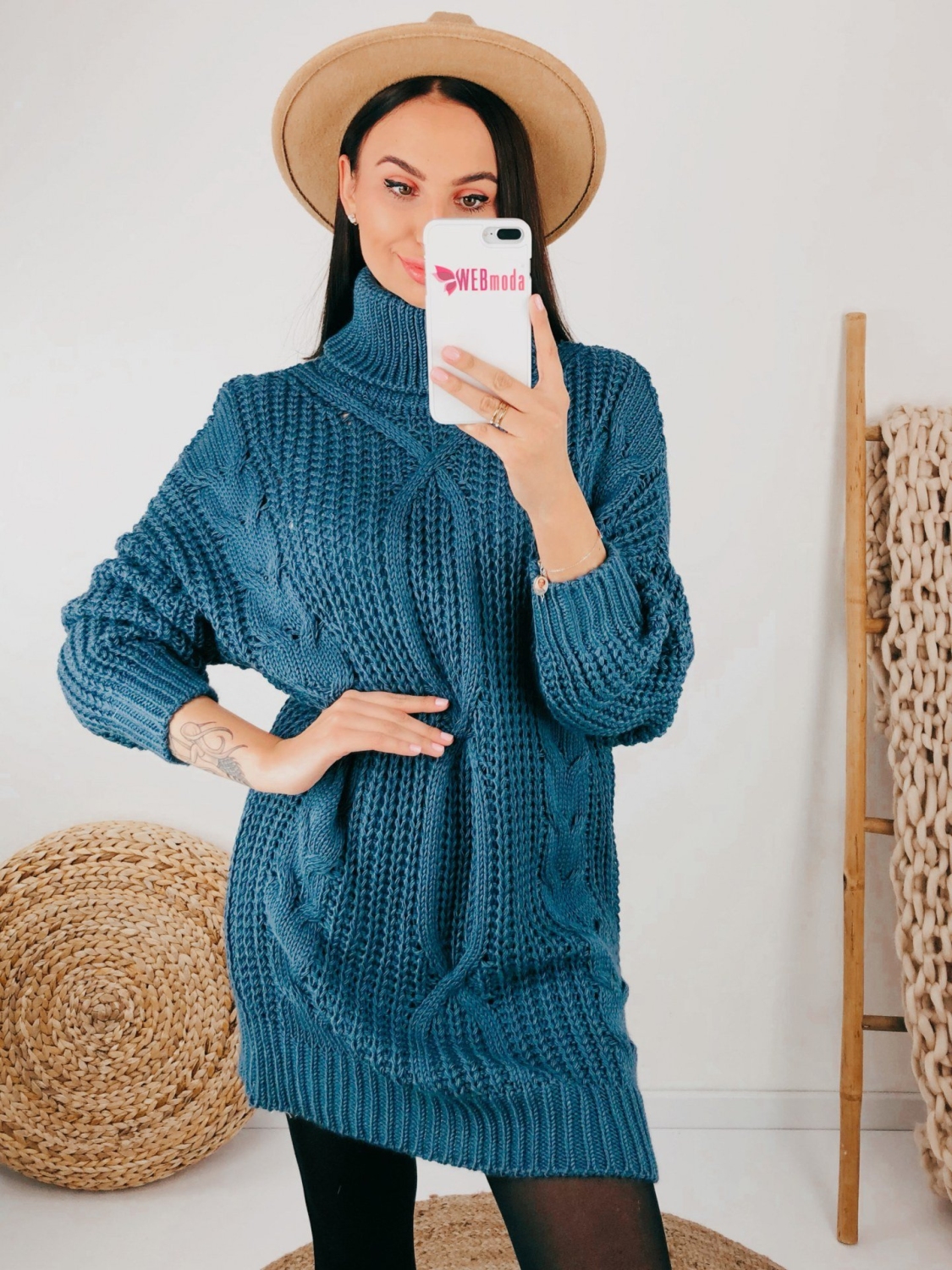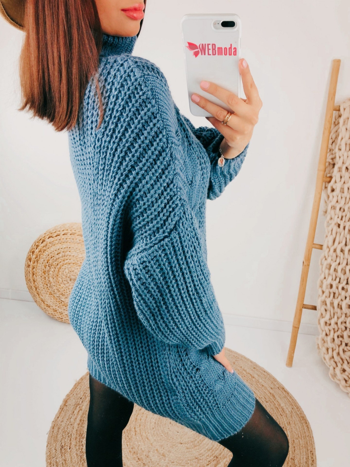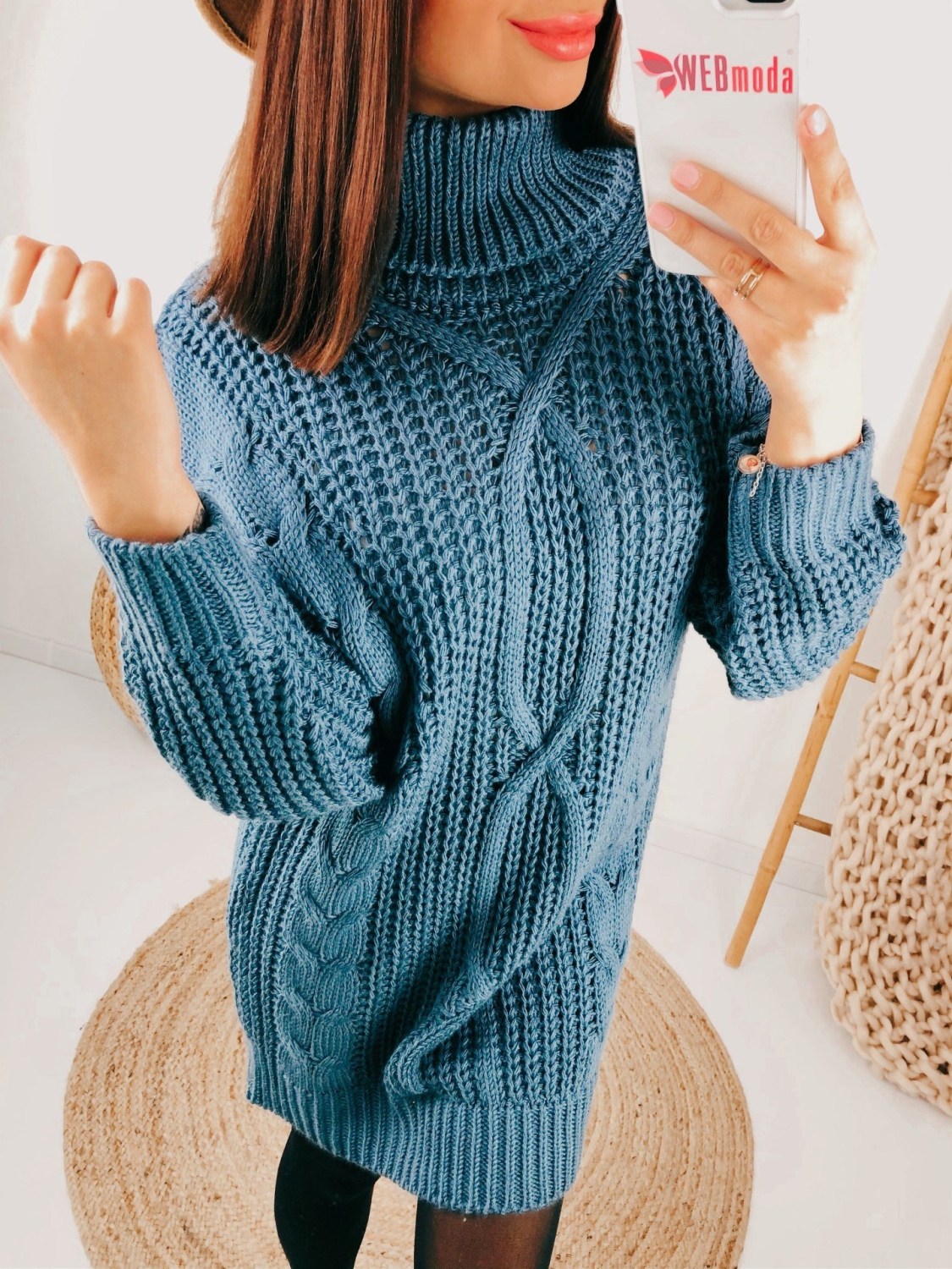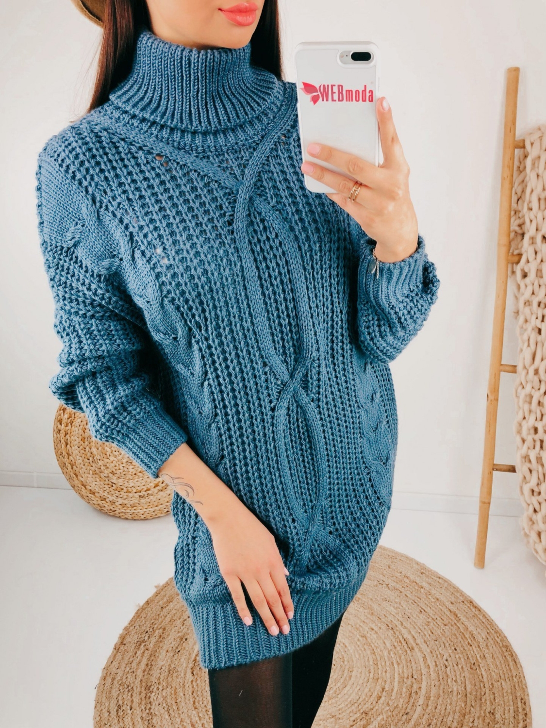 Dámske jednoduché svetrové šaty, ktoré Vás v zime zahrejú viac než obyčajný sveter. Rolákové šaty sú v modrej farbe. Šaty sú s dlhým rukávom a siahajú nad kolená. Pohodlný a kvalitný materiál. Kúsok, ktorý okamžite zaujme a zahreje v chladnejších dňoch. Vhodné aj pre budúce mamičky, sú super kúsok hodiaci sa každej postave. Modelka je vysoká 175 cm a oblečenú má veľkosť UNI.