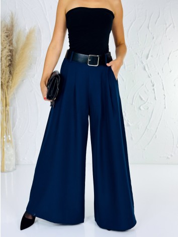 Dámske modré široké nohavice s opaskom Dubaj