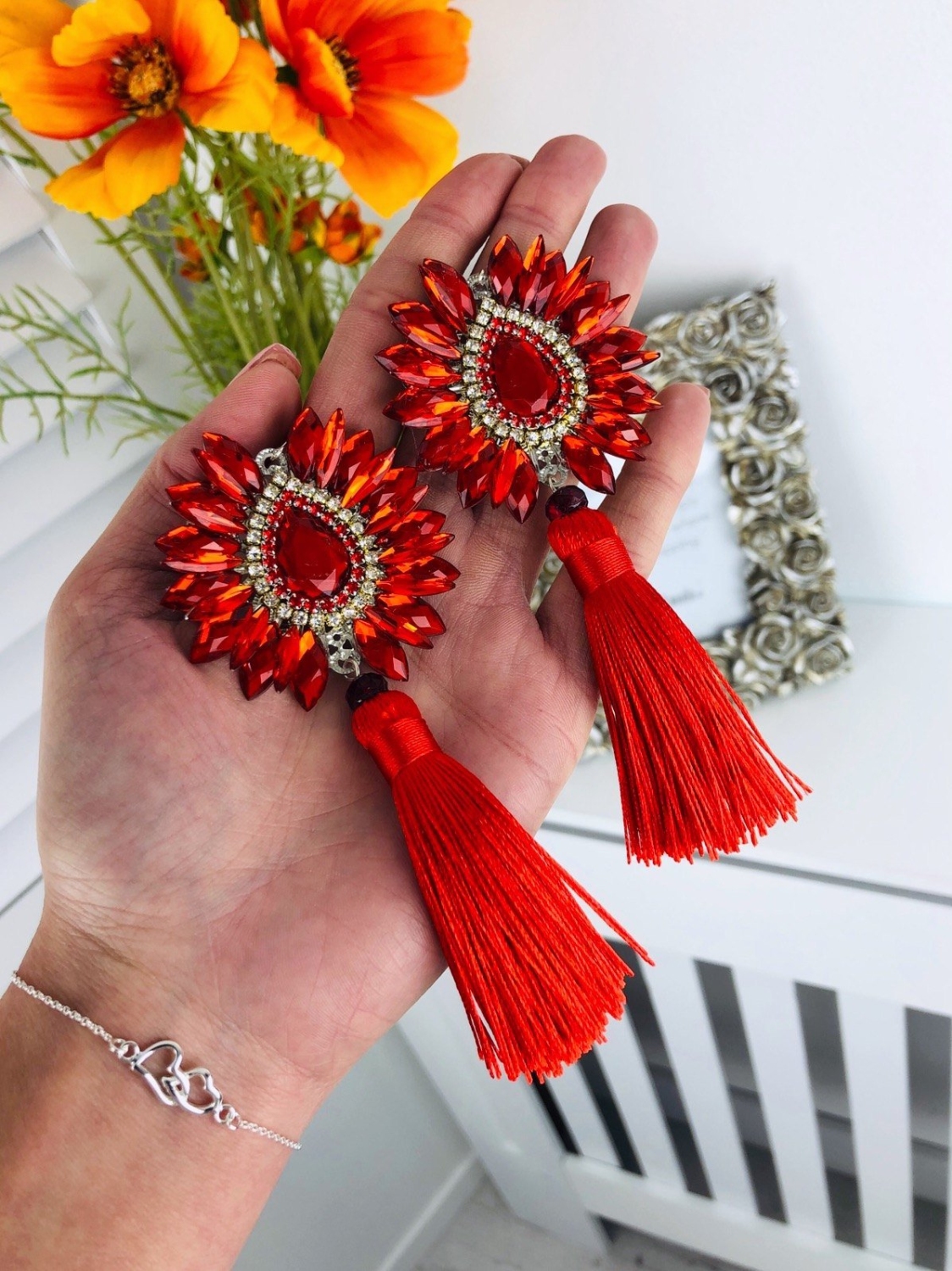 Krásne strapcové handmade náušnice vyrobené na SR. Pôsobia elegantne a nadčasovo. Tieto handmade náušnice Vás skrášlia na každej spoločenskej udalosti a stanú sa dominantným prvkom Vášho outfitu, s ktorým budete naozaj nezabudnuteľná a oslnivo krásna.