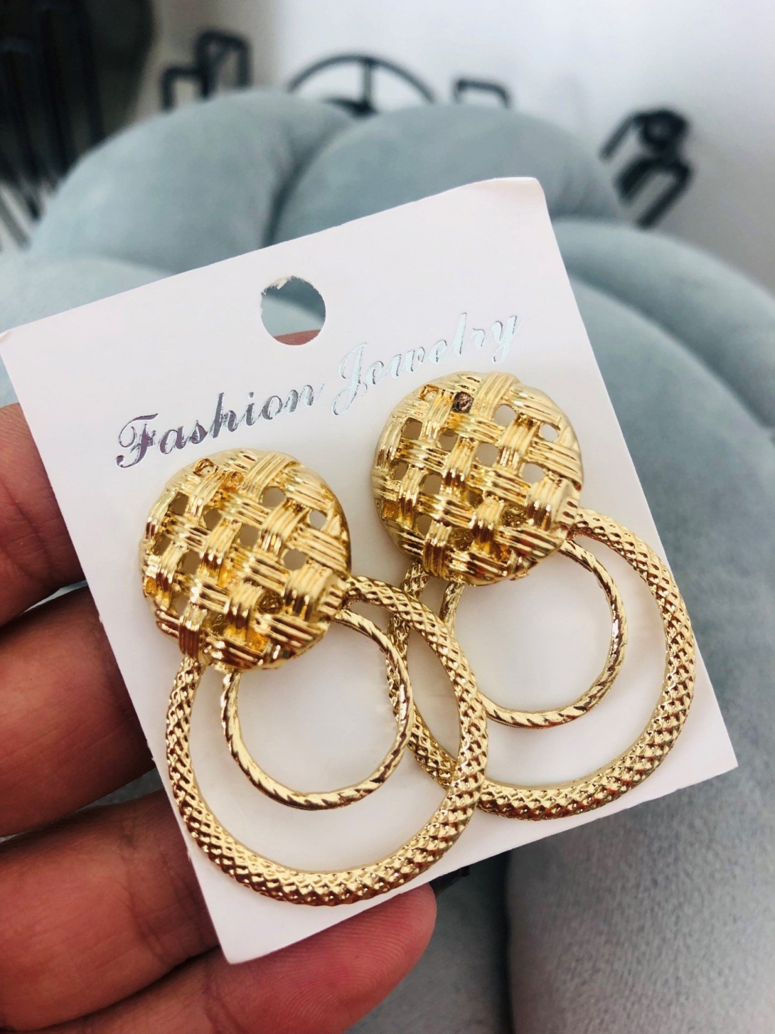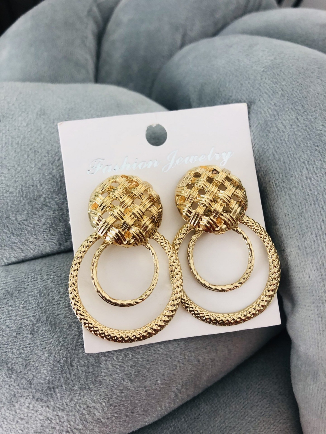 Krásne náušnice v zlatej farbe. Pôsobia elegantne a nadčasovo. Tieto náušnice Vás skrášlia na každej spoločenskej udalosti a stanú sa dominantným prvkom Vášho outfitu, s ktorým budete naozaj nezabudnuteľná a oslnivo krásna.