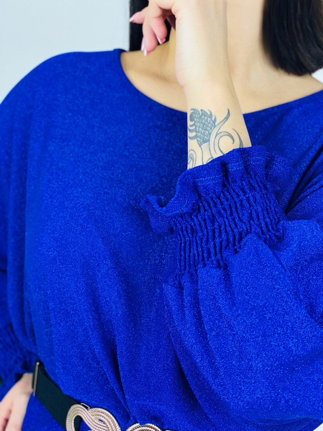 Dámska exkluzívne trblietavé oversize šaty s dlhými rukávmi. Šaty, ktoré sú v TOP prevedení. Absolútne pohodlné a veľmi luxusné na akúkoľvek spoločenskú akciu či silvestrovskú párty. Šaty sú vyrobené z vysoko kvalitného a pohodlného materiálu. Bez zapínania. Veľmi luxusný kúsok z našej ponuky, ktorý očarí každú z Vás. Špeciálny a neopkovateľný model šiat pre každú dámu. Najkrajšie šaty na párty, ktoré nesmú chýbať žiadnej žene. Ideálne na vačierok. Modelka je vysoká 175 cm a oblečenú má veľkosť UNI.