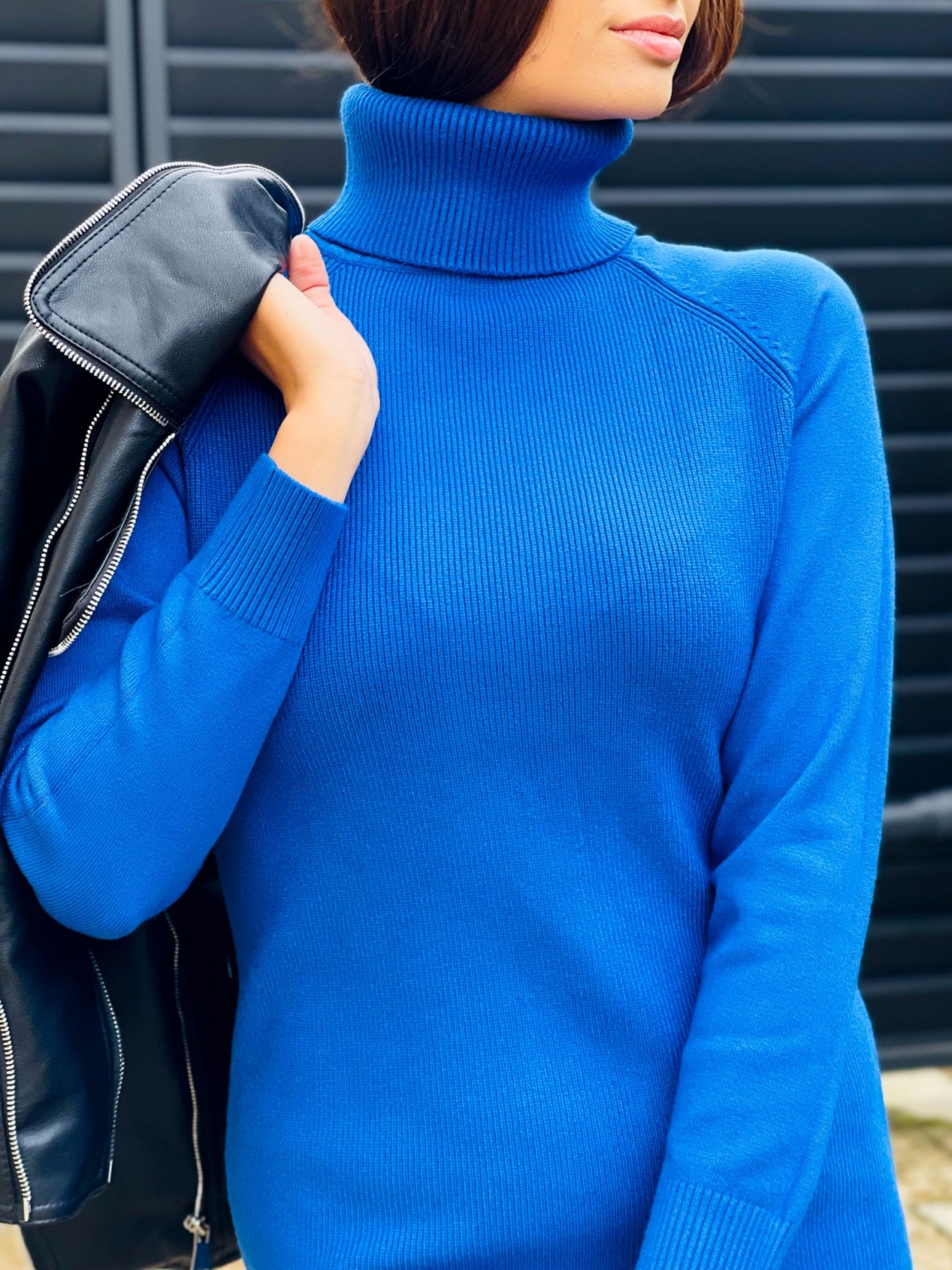 Dámske exkluzívne pletené rolákové šaty, ktoré sú vyrobené z kvalitného hrubšieho materiálu. Dĺžka šiat siaha nad kolená. Dlhý rukáv a veľmi príjemný material na dotyk. Kvalitný kúsok pre každú trendovú žienku, ktorá miluje módu a zaujímavé kúsky. Kombinujte ich s čižmami a koženou alebo zimnou bundou. Šaty, ktoré sa postarajú o Váš komfort a prispôsobia sa Vaším krivkám. Zabránia pocitu zimy. Mäkké, príjemné, hrejivé. Modelka je vysoká 175 cm a oblečenú má veľkosť S/M.