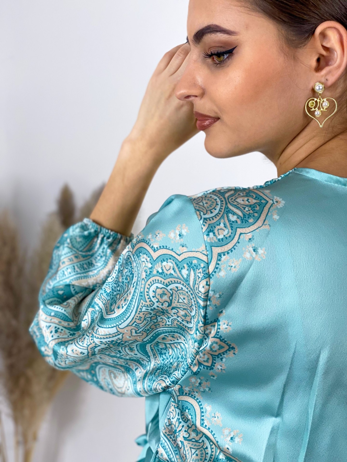 Dámske vzorované spoločenské šaty s opaskom a plisovanou sukňou, v ktorých rozhodne zažiari každá dáma. Vitajte v svete dámskych spoločenských šiat, kde elegancia a štýl sa stretávajú. Ak hľadáte dokonalé oblečenie pre ples, svadbu alebo inú spoločenskú udalosť, ste na správnom mieste. Naša kolekcia dámskych spoločenských šiat prináša najnovšie trendy a novinky vo svete módy. Bez ohľadu na to, či preferujete tradičný štýl alebo odvážne moderné dizajny, u nás nájdete niečo pre každú osobnosť a príležitosť. Naše dámske spoločenské šaty sú vyrobené z kvalitných materiálov a s dôrazom na detaily. Každý kúsok je starostlivo navrhnutý tak, aby vám poskytol pohodlie a sebavedomie po celú noc. Prejdite si našu kolekciu dnes a nenechajte si ujsť žiadnu príležitosť byť krásna a štýlová. S našimi dámskymi spoločenskými šatami budete vždy stredobodom pozornosti. Exkluzívny kúsok šiat, ktorý má romantický strih a nadčasový pohodlný materiál. Tento model očarí každú z Vás a samozrejme aj ostatných okolo Vás. Šaty sú vyrobené z kvalitného saténového materiálu, majú jemný výstrih. Bez zapínania s gumičkou v páse. Vhodné sú na rôzne spoločenské udalosti ako je svadba, stužková slávnosť, či ples. Modelka je vysoká 175 cm a má oblečenú veľkosť UNI.