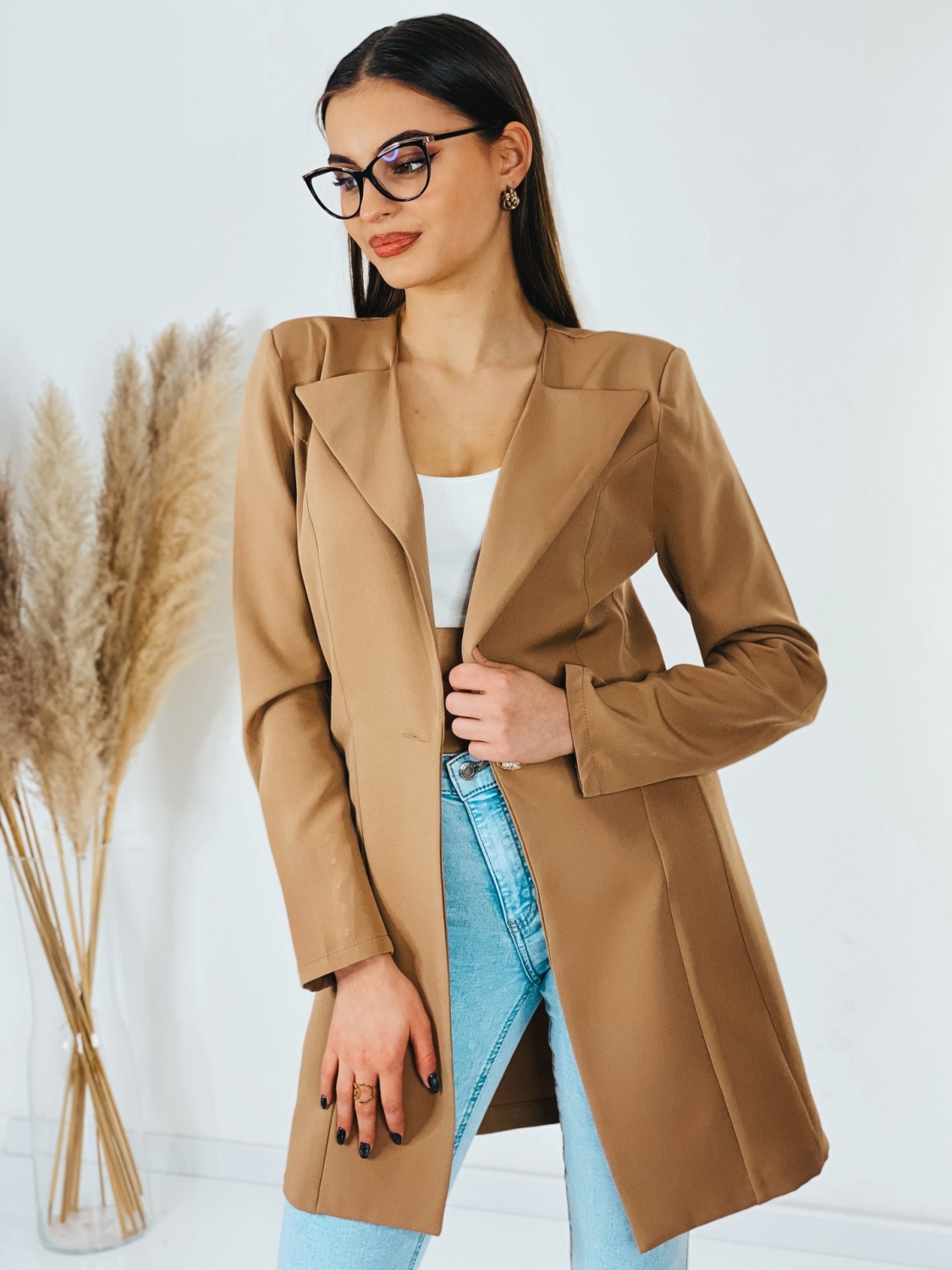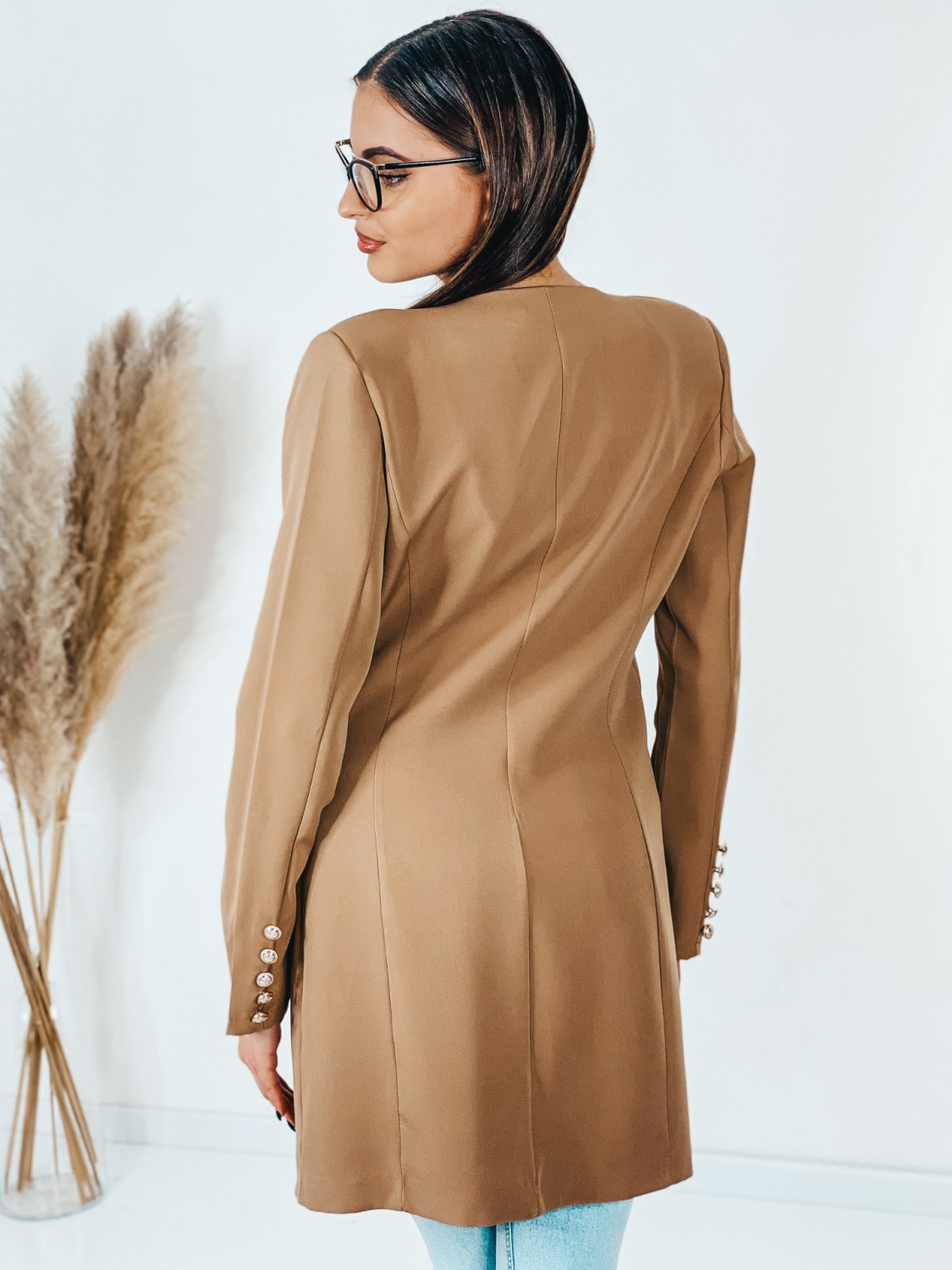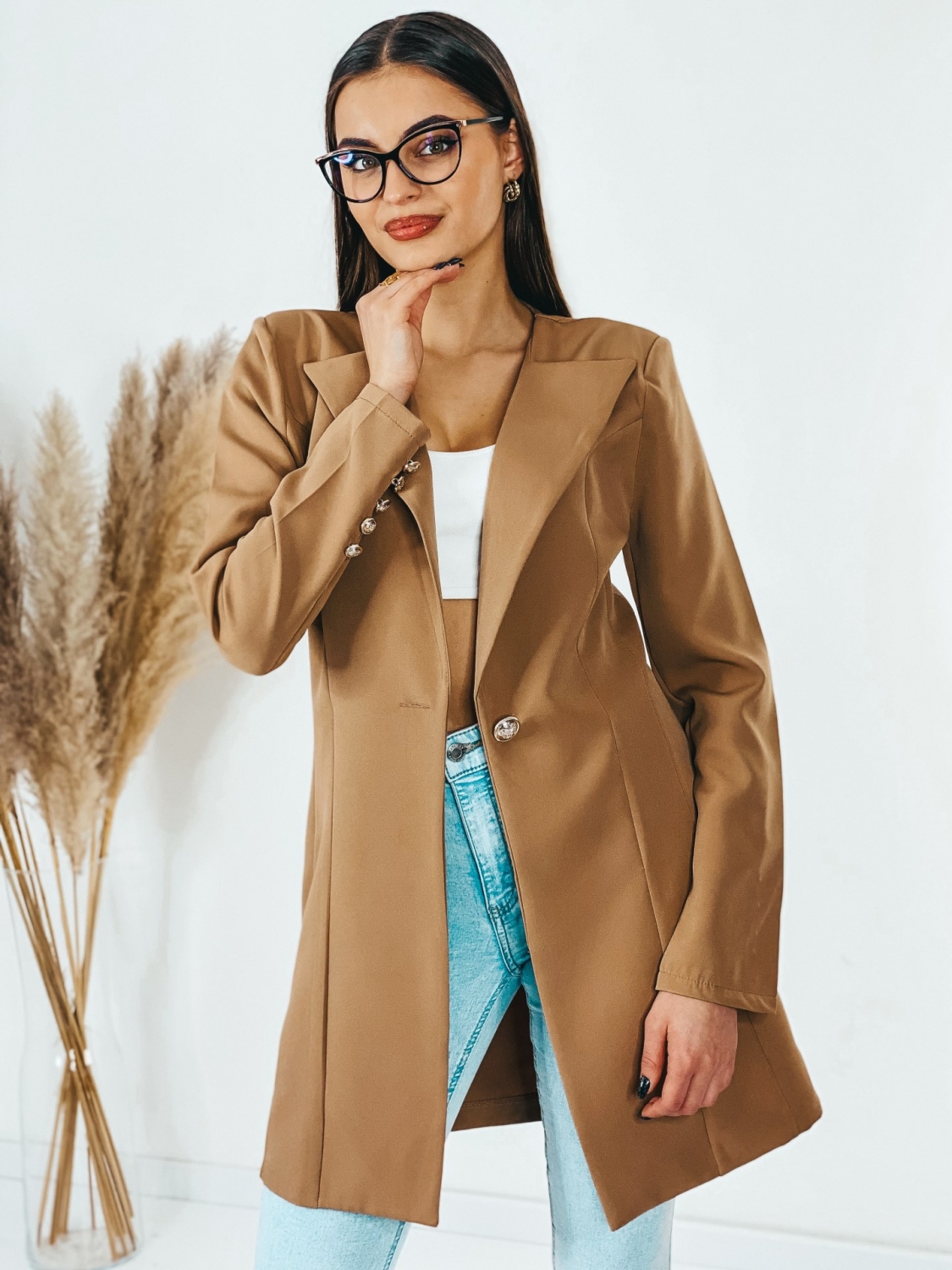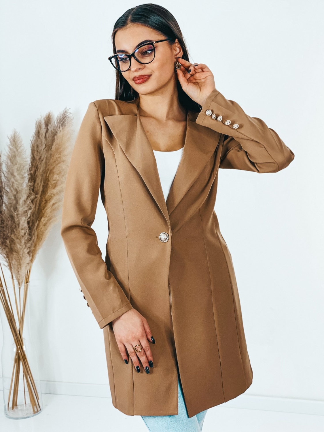 Dámske exkluzívné predĺžené oversize sako, ktoré je v jednoduchom prevedení a zapína sa vpredu na gombík. Sako vhodné do práce i na rande do mesta. Doplnené gombíkmi aj na rukávoch. Zaujímavá je aj štruktúra saka, ktorá Vás dostane. Nadčasové a mimoriadne praktické. Vyrobené z kvalitného a pohodlného materiálu. Dámske sako nemusíte nosiť výlučne k sukni, či elegantným nohaviciam. Môžete k nemu doladiť aj ležérny outfit s teniskami. Modelka je vysoká 175 cm a oblečenú má veľkosť S.