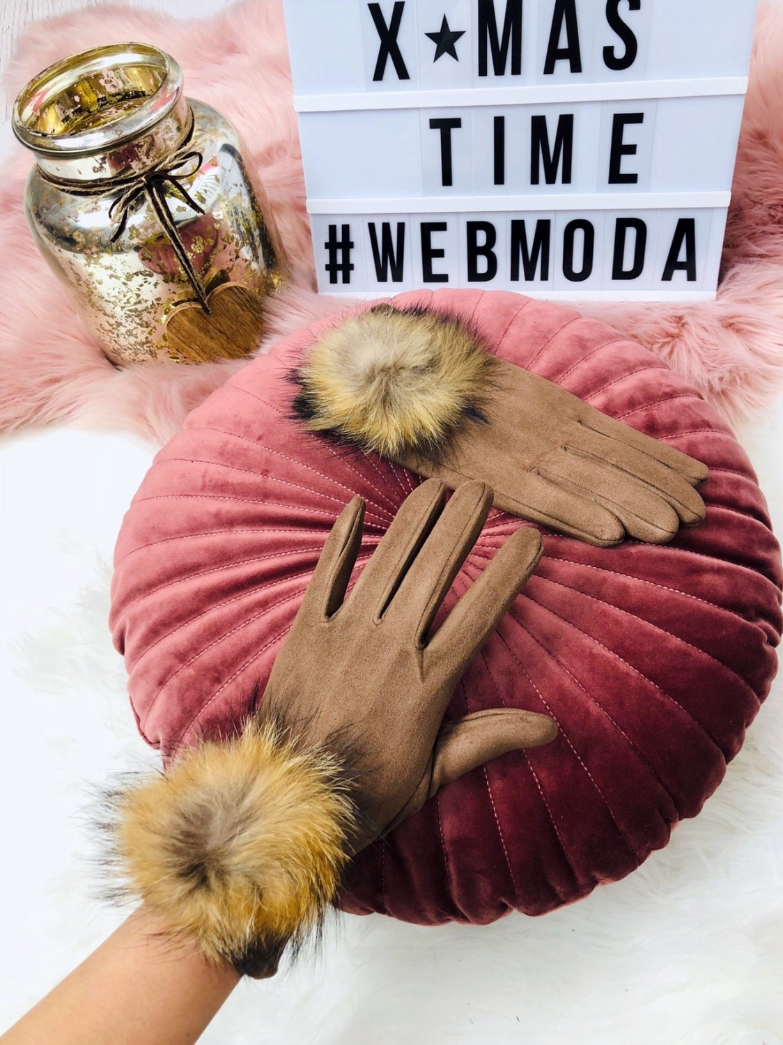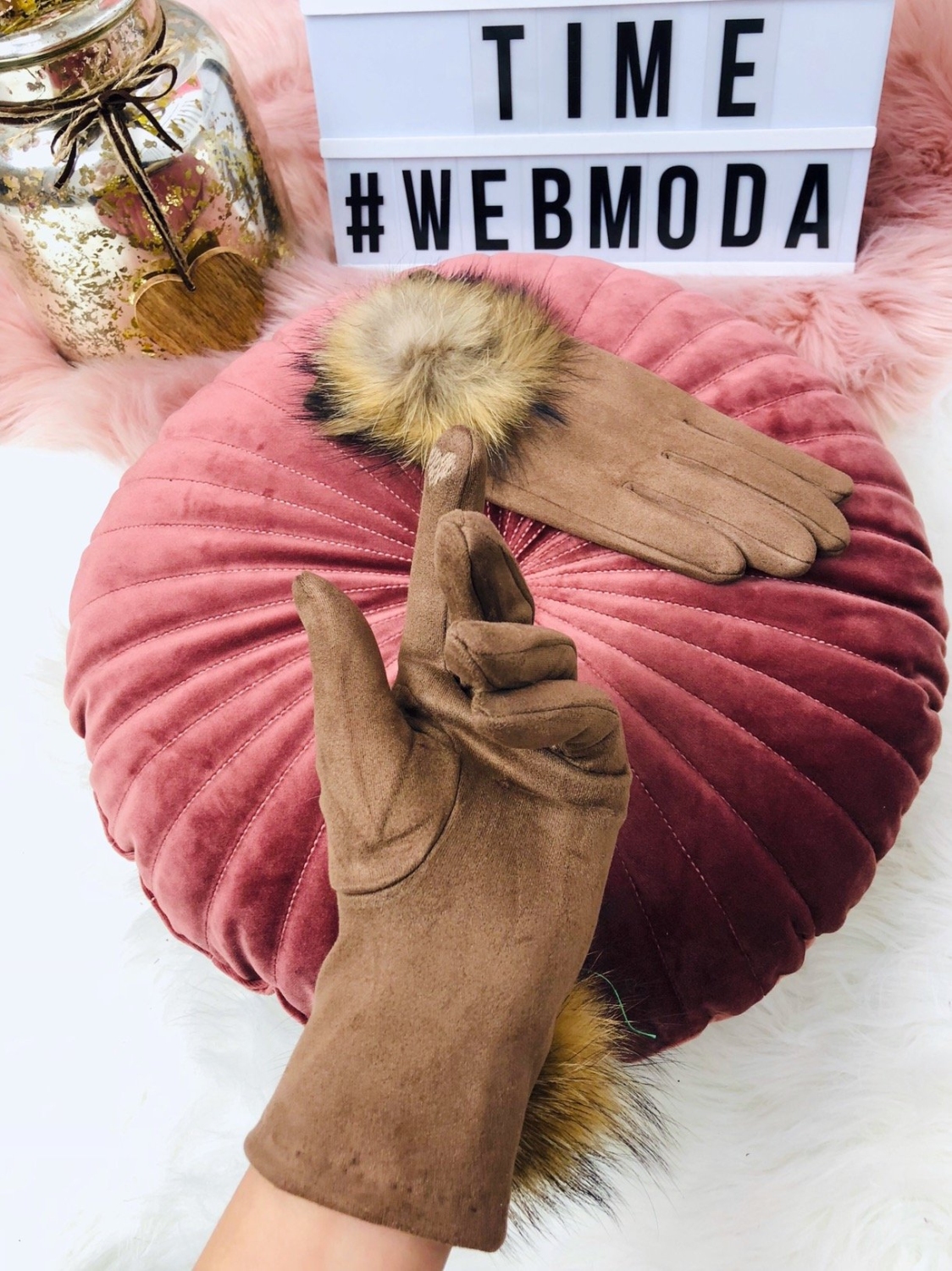 Dámske rukavice, ktoré sú vyrobené z pravej kožušiny a vynikajú precíznym spracovaním. Sú mäkké a veľmi príjemné na dotyk. Aplikácia na ukazováku slúži na lepší dotyk pri používaní smartfónu.