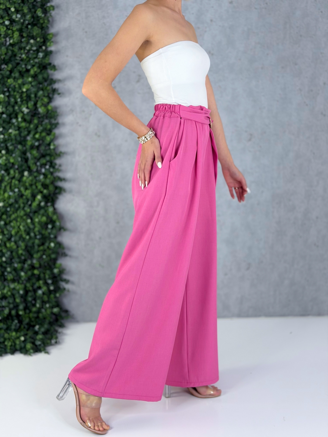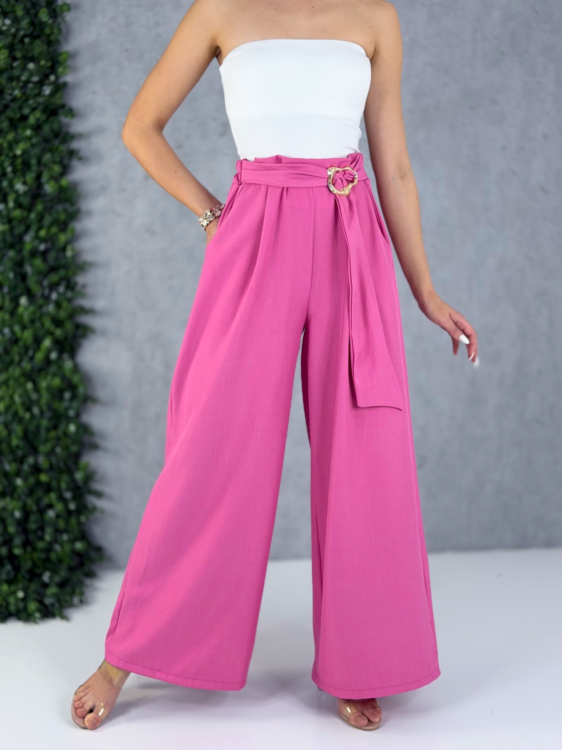 Dámske široké nohavice elegantné so sťahovaním v páse sú univerzálny kúsok, ktorý dokonale sadne postave od XS po XL a stane sa neoddeliteľnou súčasťou každého moderného šatníka. Ich premyslený strih vyniká voľnými, splývavými nohavicami, ktoré pôsobia žensky, vzdušne a zároveň veľmi sofistikovane. Vďaka pružnému pásu so sťahovaním sa nohavice prispôsobia rôznym typom postavy, zvýraznia pás a zabezpečia maximálne pohodlie počas celého dňa, či už ich nosíš do práce, na stretnutie alebo na večernú príležitosť. Materiál je príjemný na dotyk, ľahký a dobre drží tvar, čo zaručuje elegantný vzhľad bez zbytočného krčenia. Široké nohavice opticky predlžujú nohy a vytvárajú štíhlu siluetu, pričom poskytujú voľnosť pohybu, ktorú oceníš najmä počas dlhého nosenia. Tento model je ideálny na kombinovanie s jednoduchým topom, košeľou alebo sakom, vďaka čomu si vieš vytvoriť outfit presne podľa príležitosti – od ležérnej elegancie až po formálnejší look. Vďaka svojej univerzálnosti a nadčasovému dizajnu sú tieto nohavice skvelou voľbou pre ženy, ktoré hľadajú spojenie štýlu, komfortu a variability. Stačí zmeniť doplnky a obuv a z jedného kúsku vytvoríš množstvo rôznych outfitov, ktoré budú vždy pôsobiť upravene, žensky a moderne.