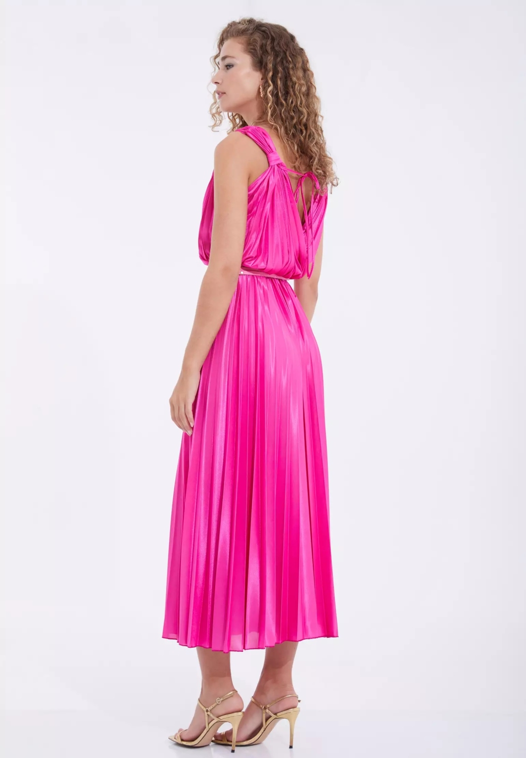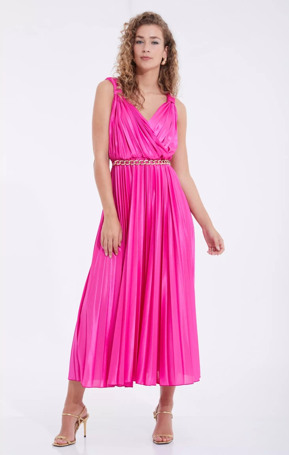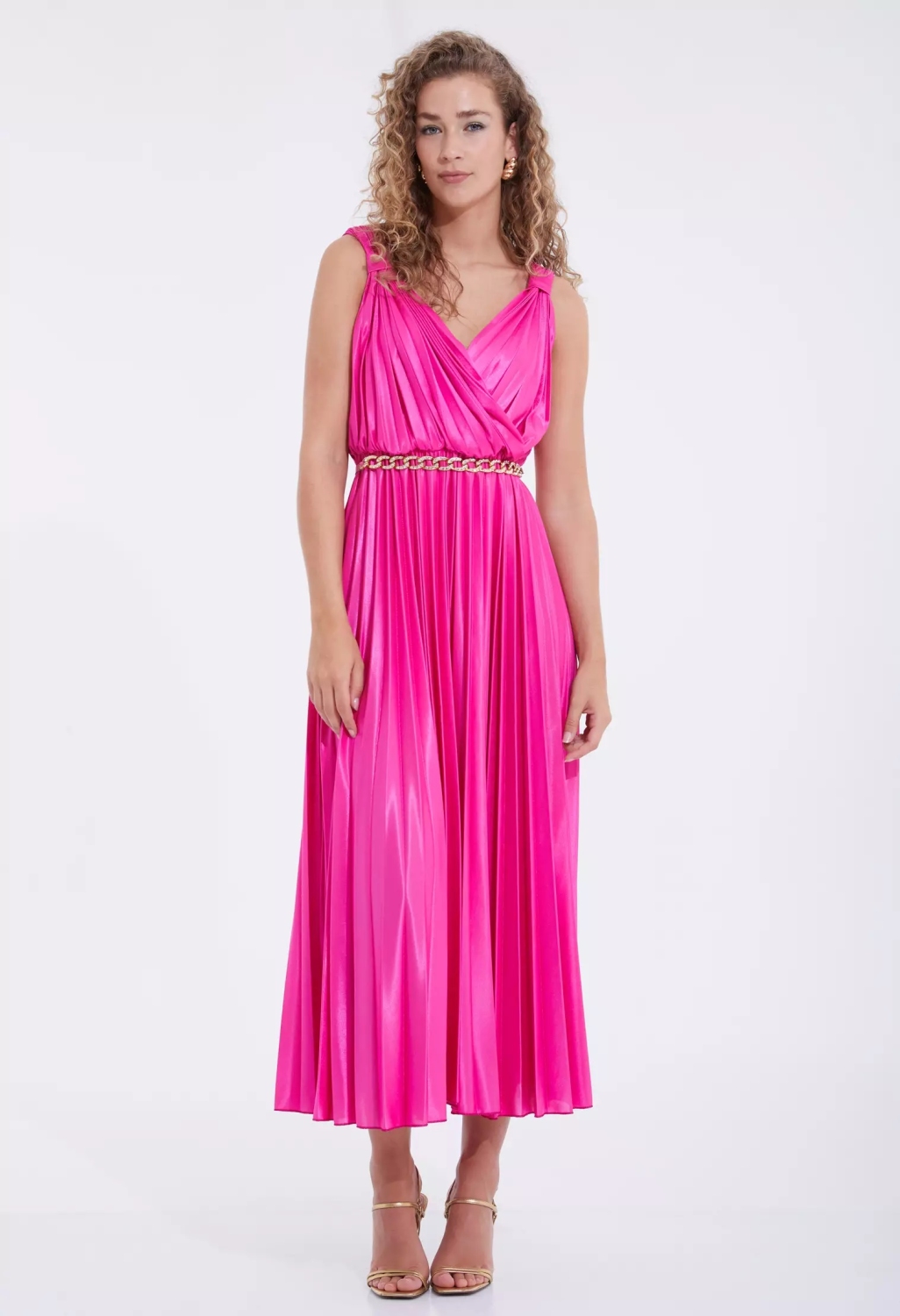 Dámske plisované dlhé šaty v ružovej farbe, ktoré sú spolu aj s opaskom. Skvelá voľba pre štýlovú a elegantnú ženu. Plisované šaty sú jedným z najobľúbenejších módnych trendov v súčasnosti. Ich elegantný a ženský dizajn prináša do každej príležitosti štýlový a sofistikovaný vzhľad. Tieto šaty sú vhodné nielen pre formálne udalosti, ale aj pre neformálne stretnutia a dokonca aj na bežné nosenie. Vďaka svojej plisovanej konštrukcii majú ružové plisované šaty unikátny pohyb a textúru, ktorá pridáva hrejivý a romantický nádych. Ich jemná farba dodáva do oblečenia žiarivosť a osviežujúci efekt. Tieto šaty sa dajú skvele kombinovať s rôznymi doplnkami a topánkami, čo umožňuje ich nositeľkám vyjadriť svoju osobnosť a štýl. S správnym spôsobom doplnené a kombinované, môžu byť skutočným módnym výkrikom. Takže neváhaj a vyskúšaj tento trendy kúsok do svojej šatníkovej kolekcie! Modelka meria 175 cm a má oblečenú veľkosť 36.