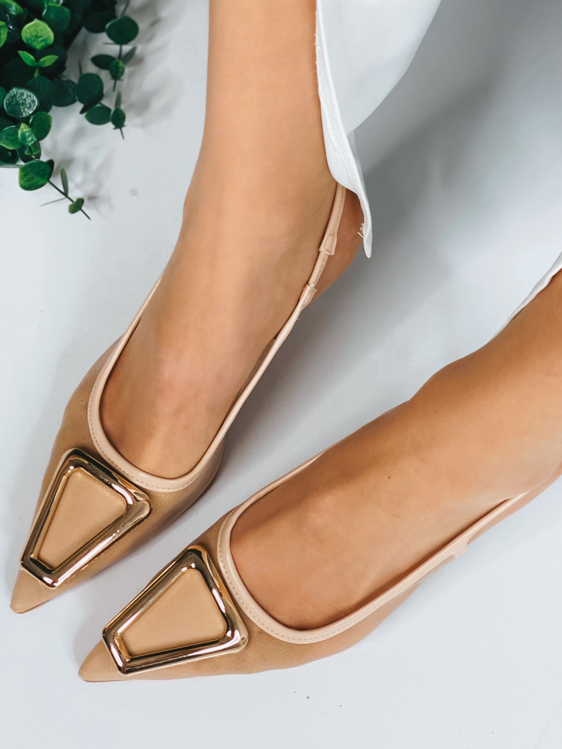 Tieto elegantné dámske sandále sú dokonalým spojením nadčasovej elegancie a každodenného komfortu. Prevedenie pôsobí univerzálne, vďaka čomu ich ľahko skombinujete s akýmkoľvek outfitom – od jednoduchých nohavíc až po šaty na špeciálnu príležitosť. Dominantným prvkom je výrazná zlatá spona v geometrickom tvare, ktorá dodáva topánkam luxusný a moderný nádych. Práve tento detail z nich robí neprehliadnuteľný módny kúsok. Sandále sú navrhnuté tak, aby sa jednoducho natiahli na nohu bez zapínania či zložitého nastavovania. Stačí obuť a môžete vyraziť. Praktický strih šetrí čas a zároveň zabezpečuje pohodlné nosenie počas celého dňa. Nízky opätok poskytuje jemné zvýšenie postavy, no zároveň zachováva stabilitu a komfort pri chôdzi. Sú ideálnou voľbou pre ženy, ktoré chcú vyzerať upravene a štýlovo bez toho, aby museli robiť kompromisy medzi eleganciou a pohodlím. Špicatá špička opticky predlžuje nohu a dodáva siluete ženskosť a noblesu.
